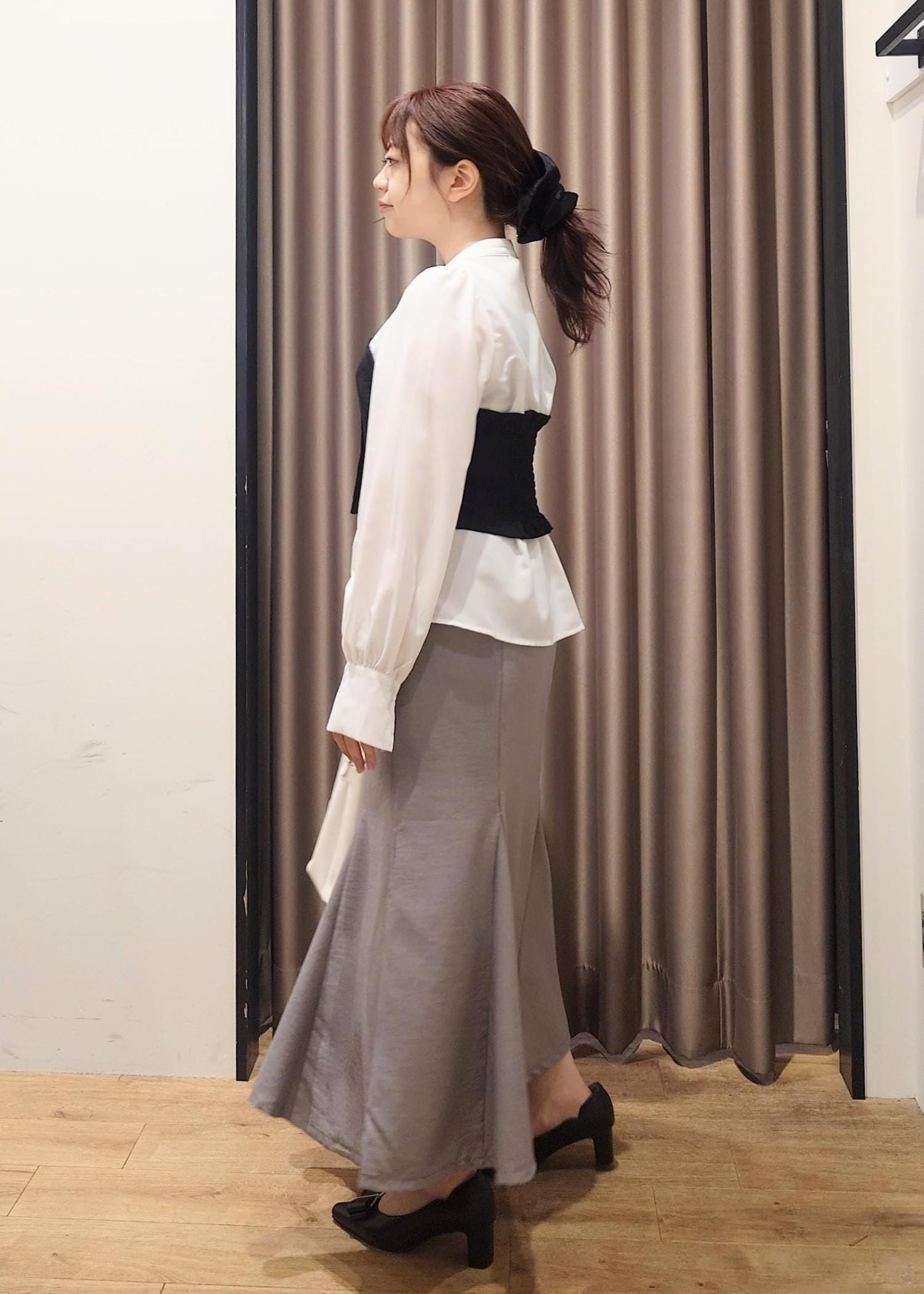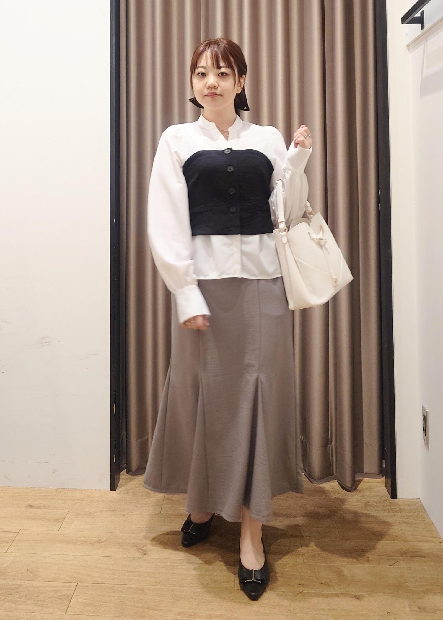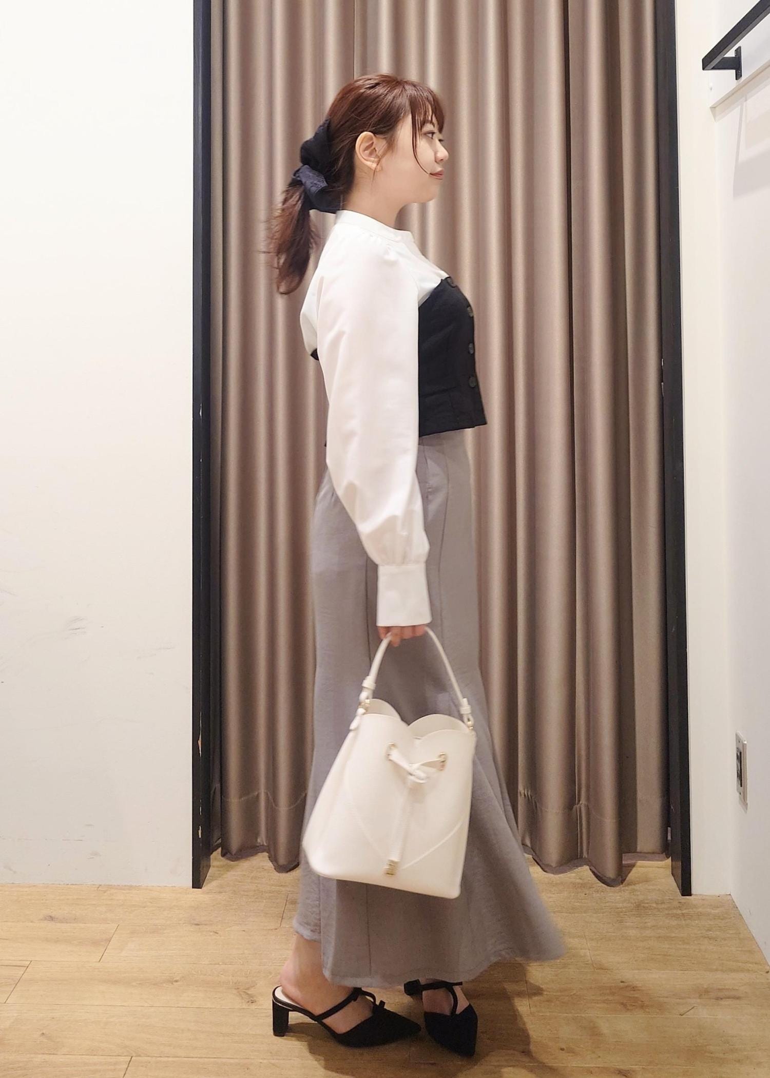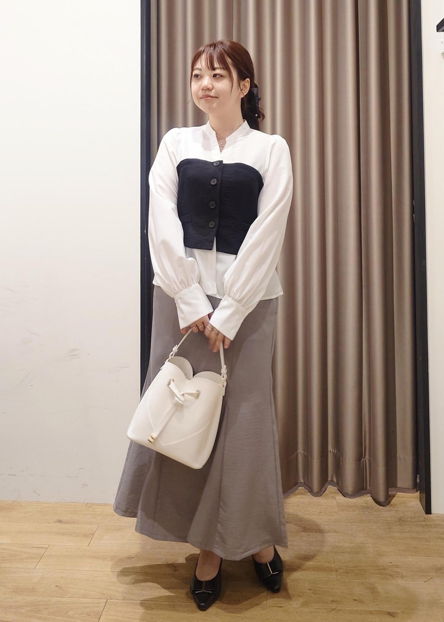 セットアップは同色だとややフォーマル感がありますが、カラー違いにすると少しくだけた雰囲気でこちらも可愛く決まります◎
