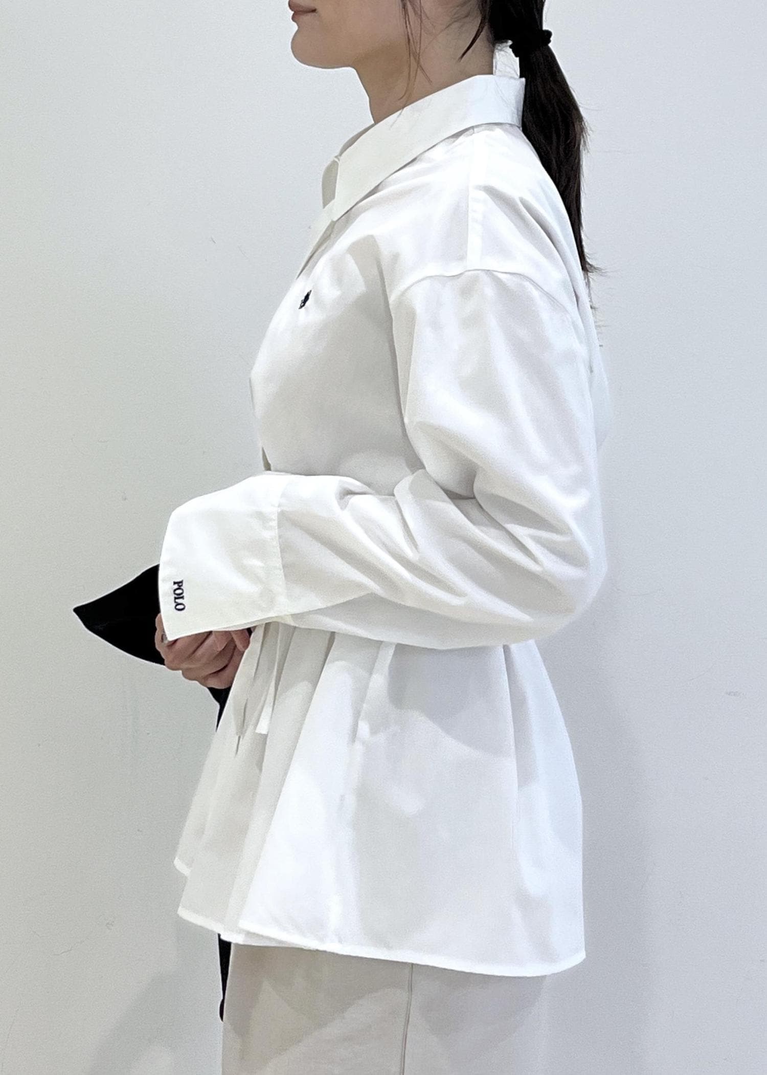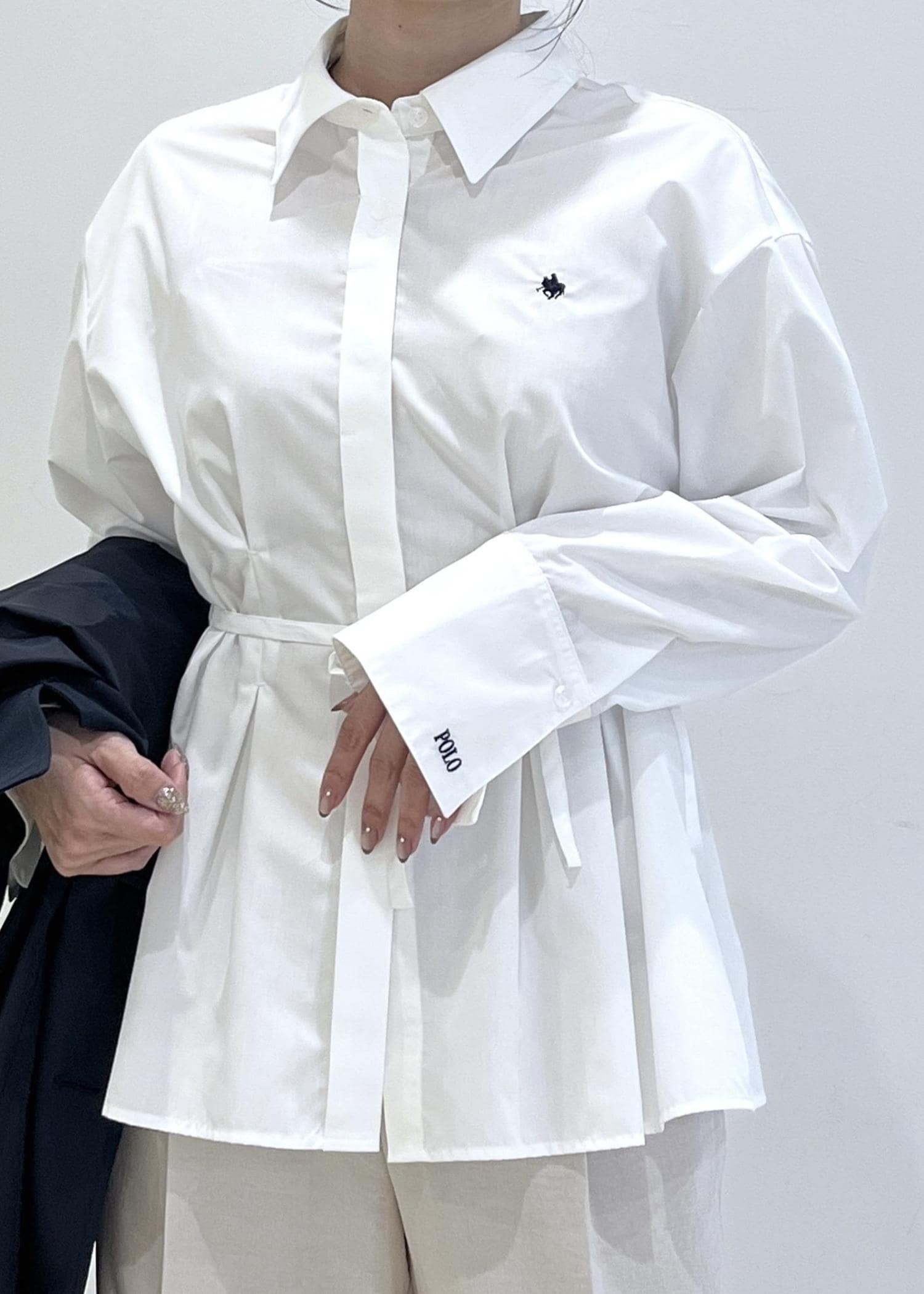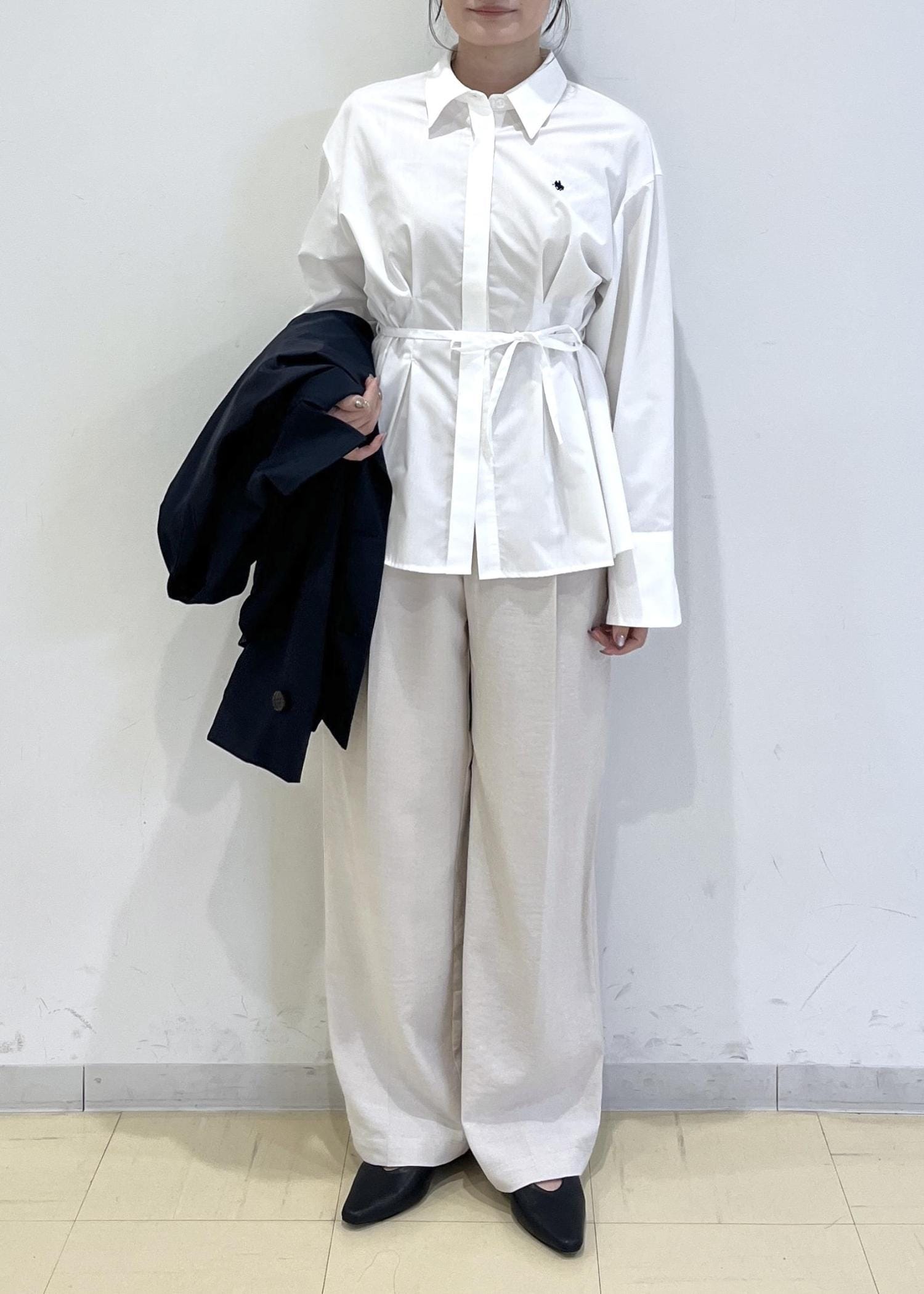 VIS【POLO BCS】VIS別注ベルト付きウエストタックシャツブラウスホワイト / F¥6,930レビュー身長158㎝でFサイズ着用。