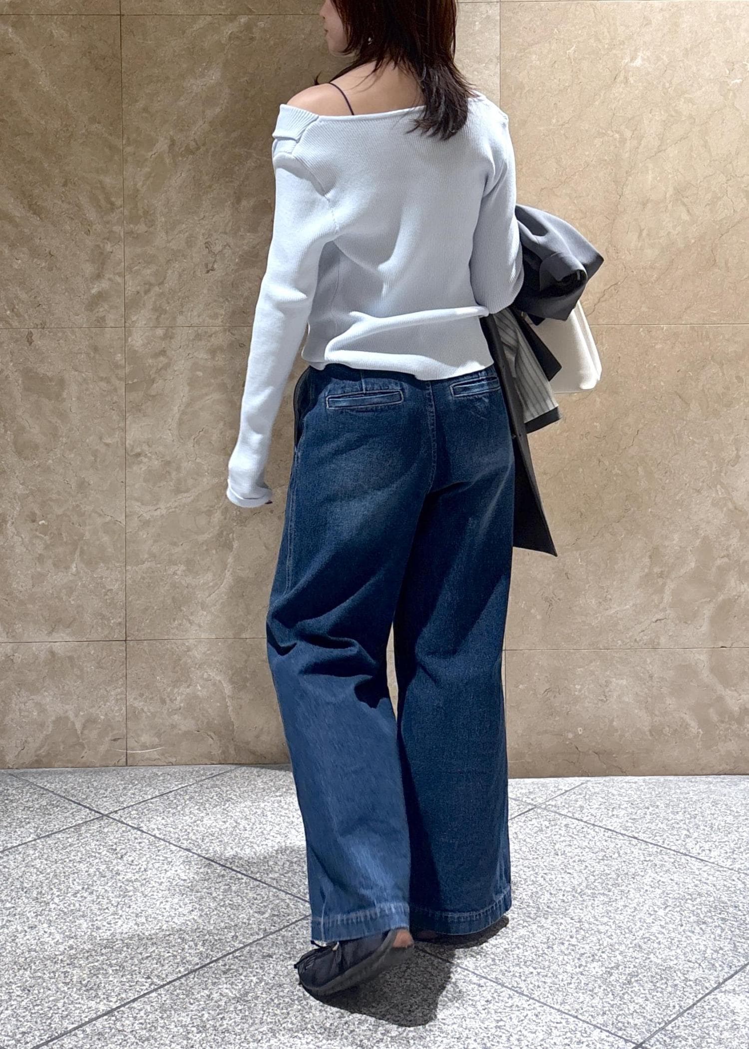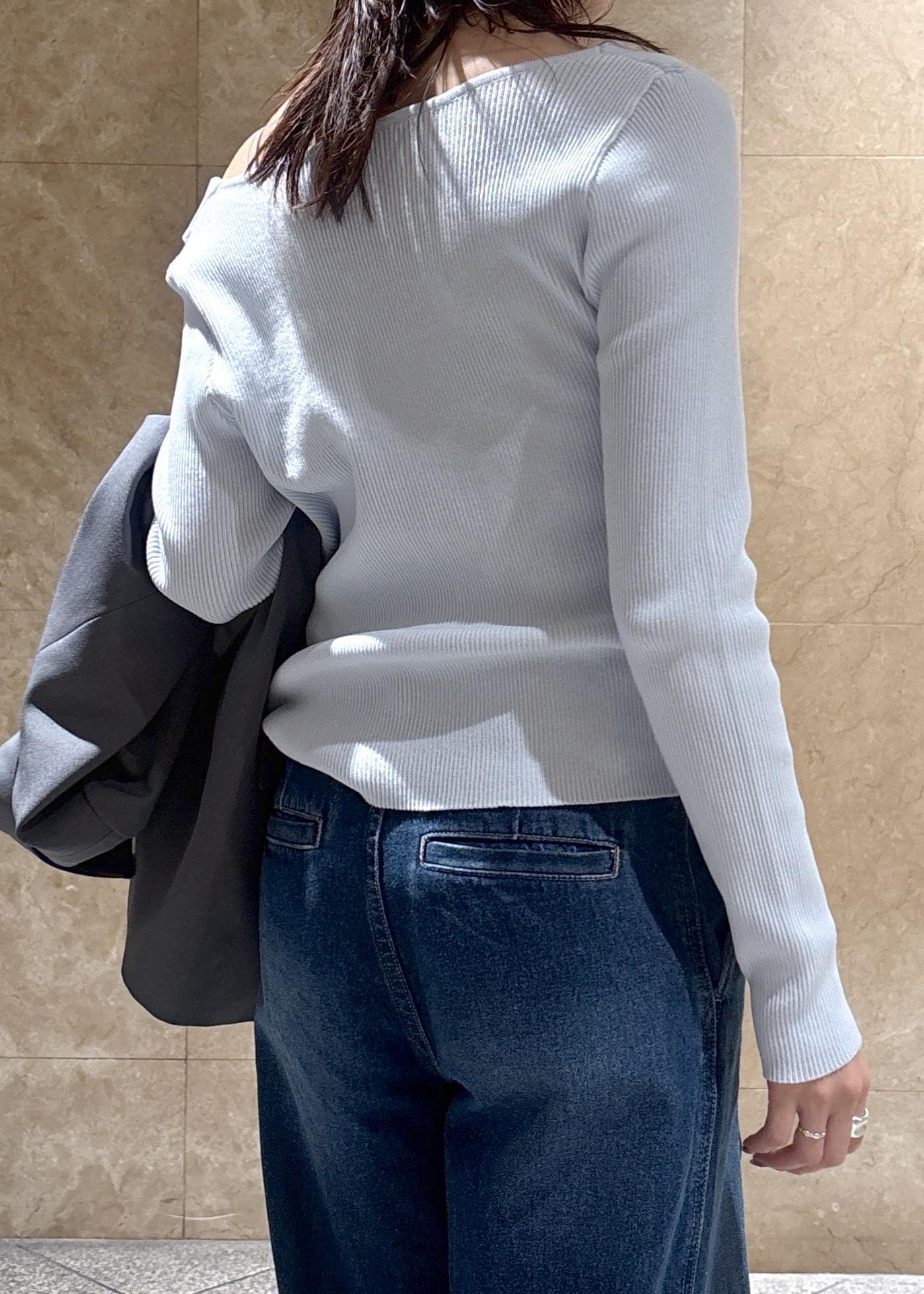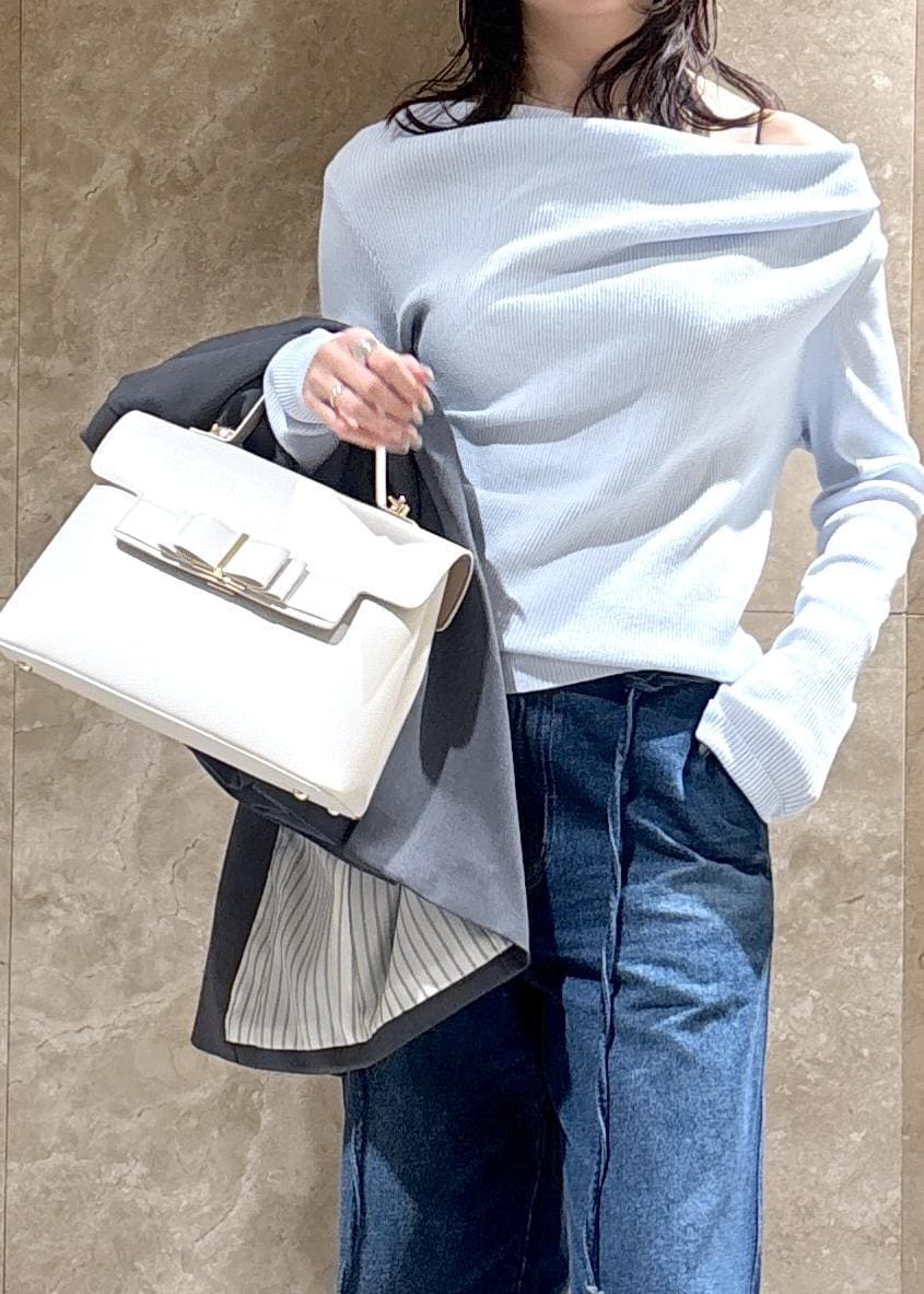 VISドレープオフショルダーリブニット/イージーケアサックス / F¥4,389レビュー冬にで出たニットと同型のデザイン。