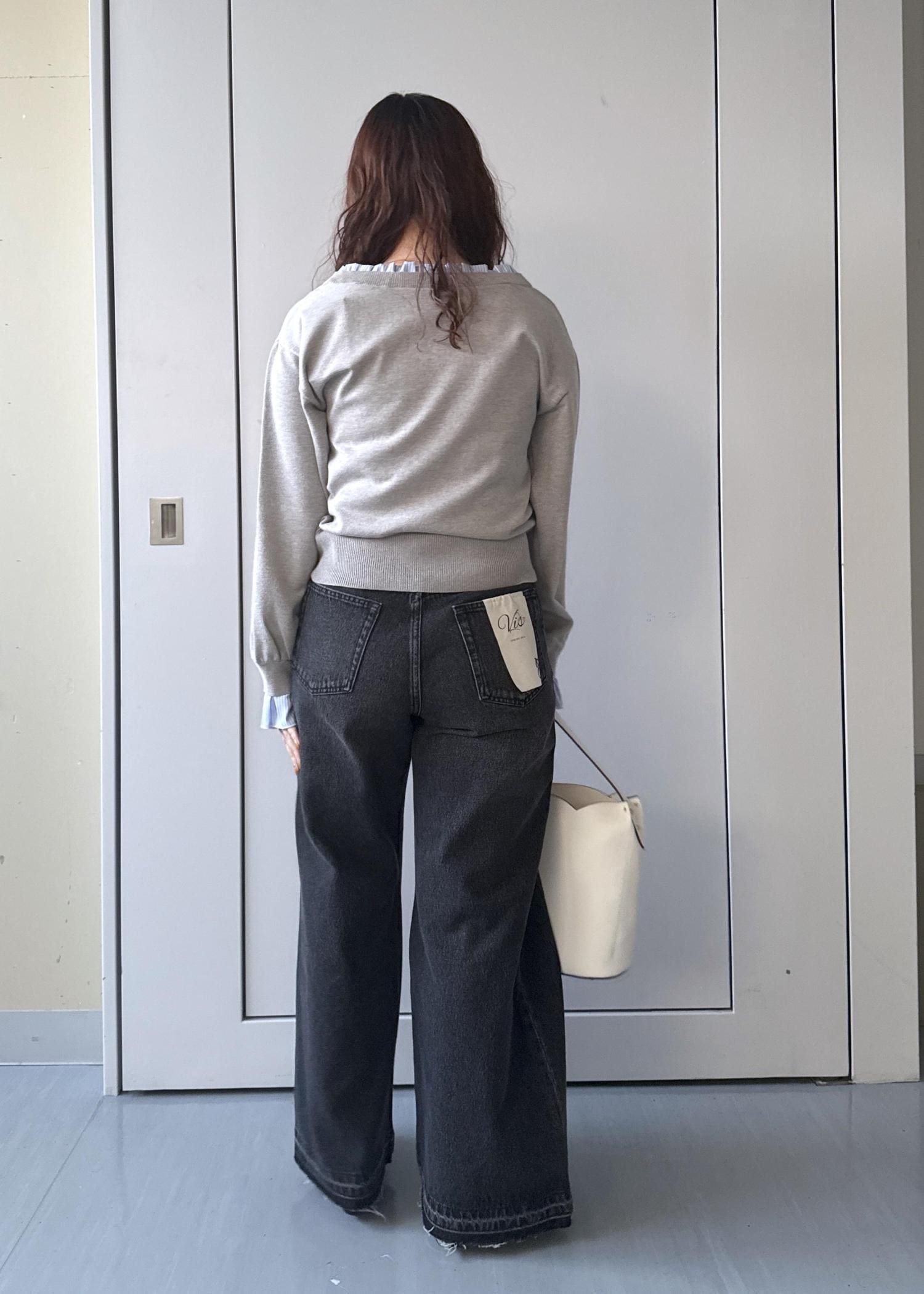 ピタッとウエスト周りで止まるので、インしなくてもスッキリしたスタイリングにできます。 -