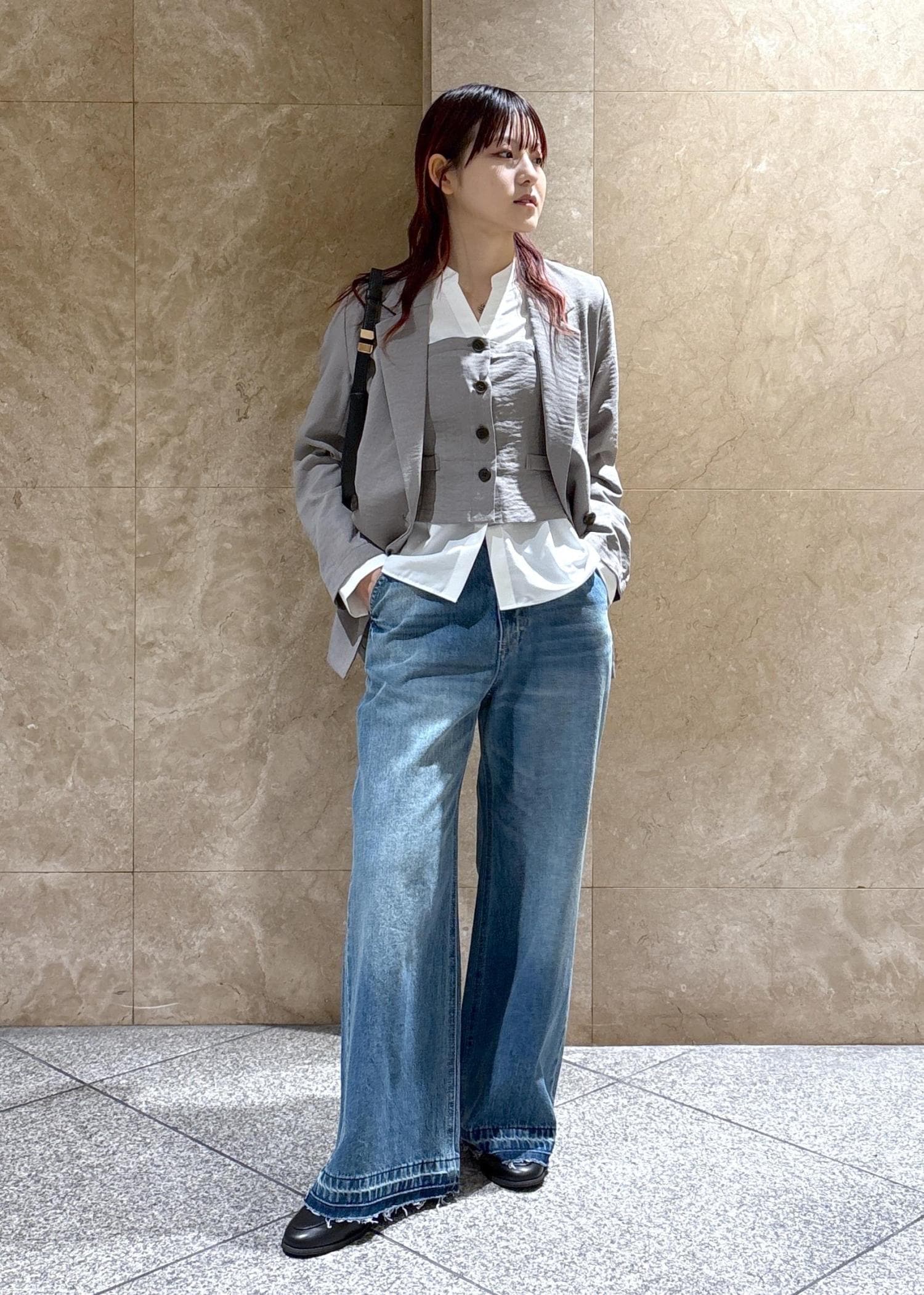 コンパクトめではありますが、中にシャツなどをレイヤードできるくらいのゆとりはありました◎