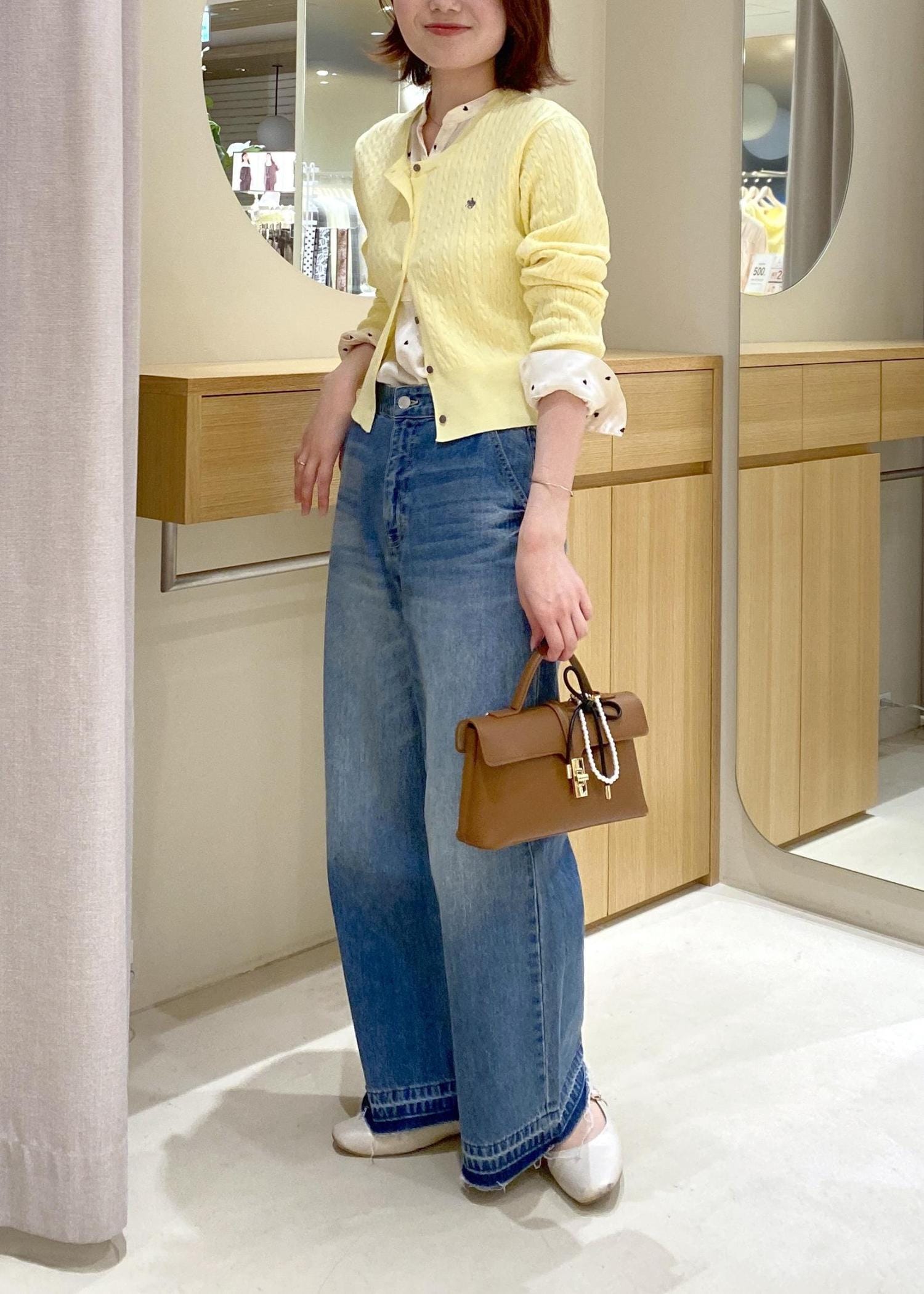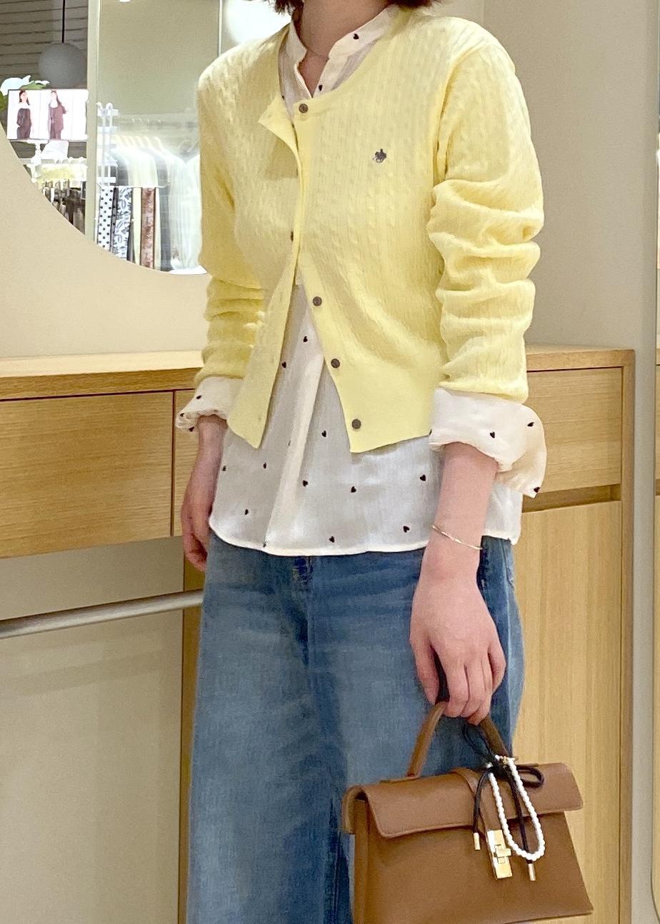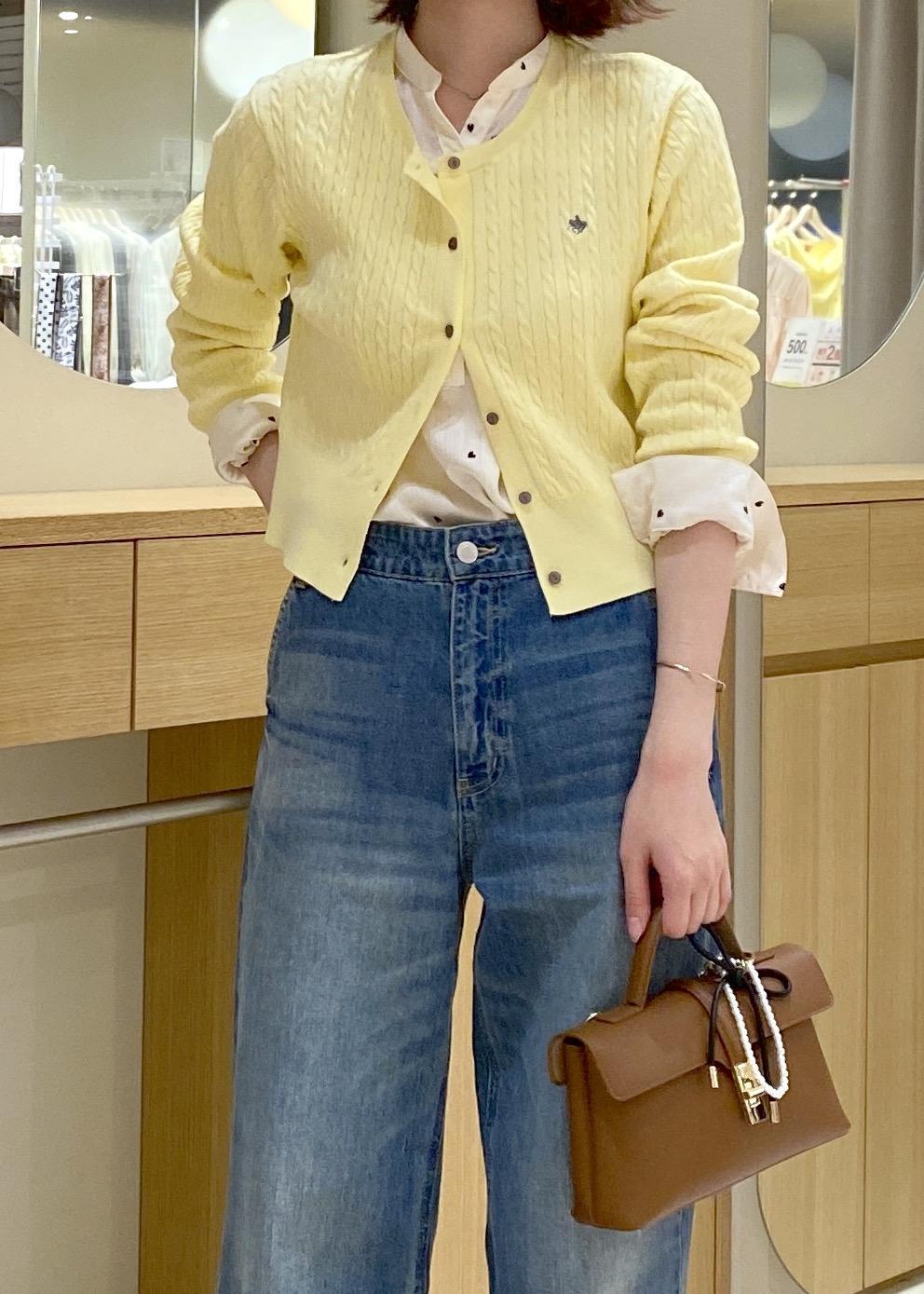 爽やかなイエローのカーデにデニムを合わせた、春に向けたお出かけコーデです!