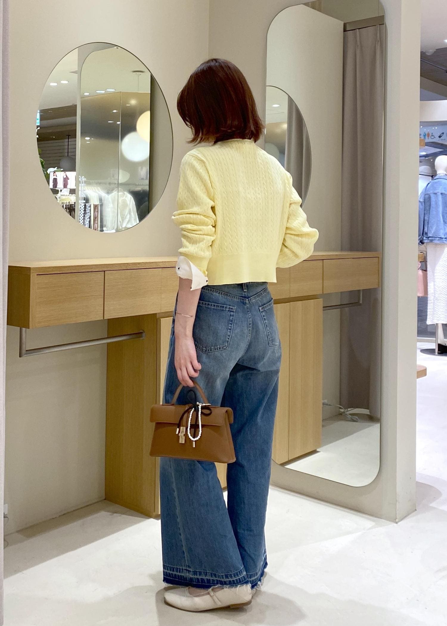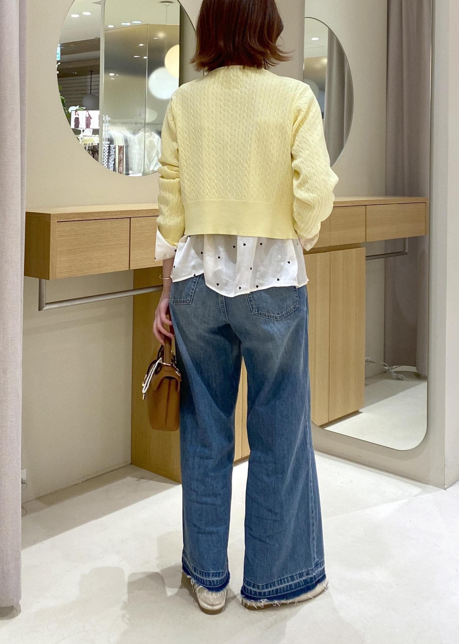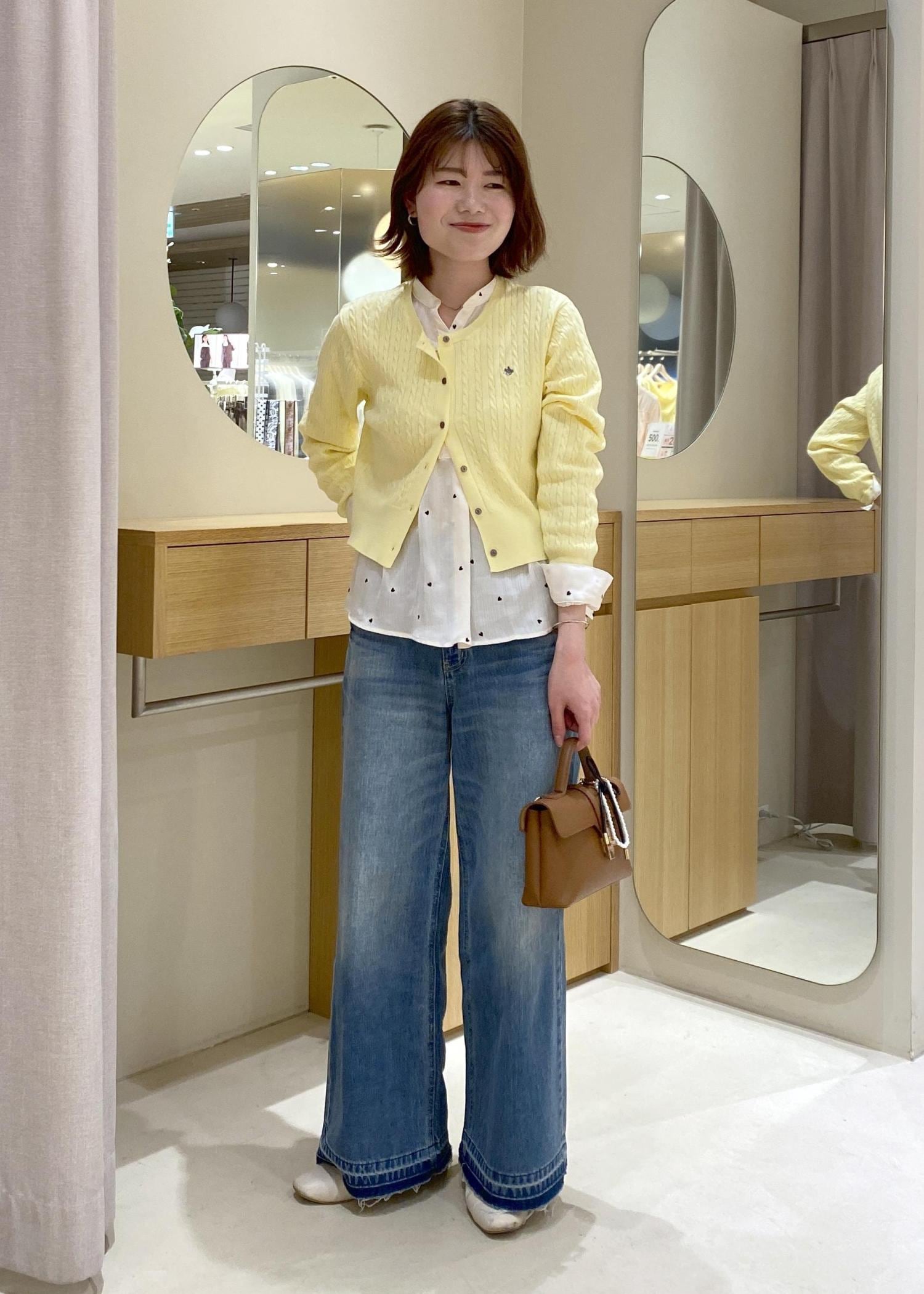 爽やかなイエローのカーデにデニムを合わせた、春に向けたお出かけコーデです!