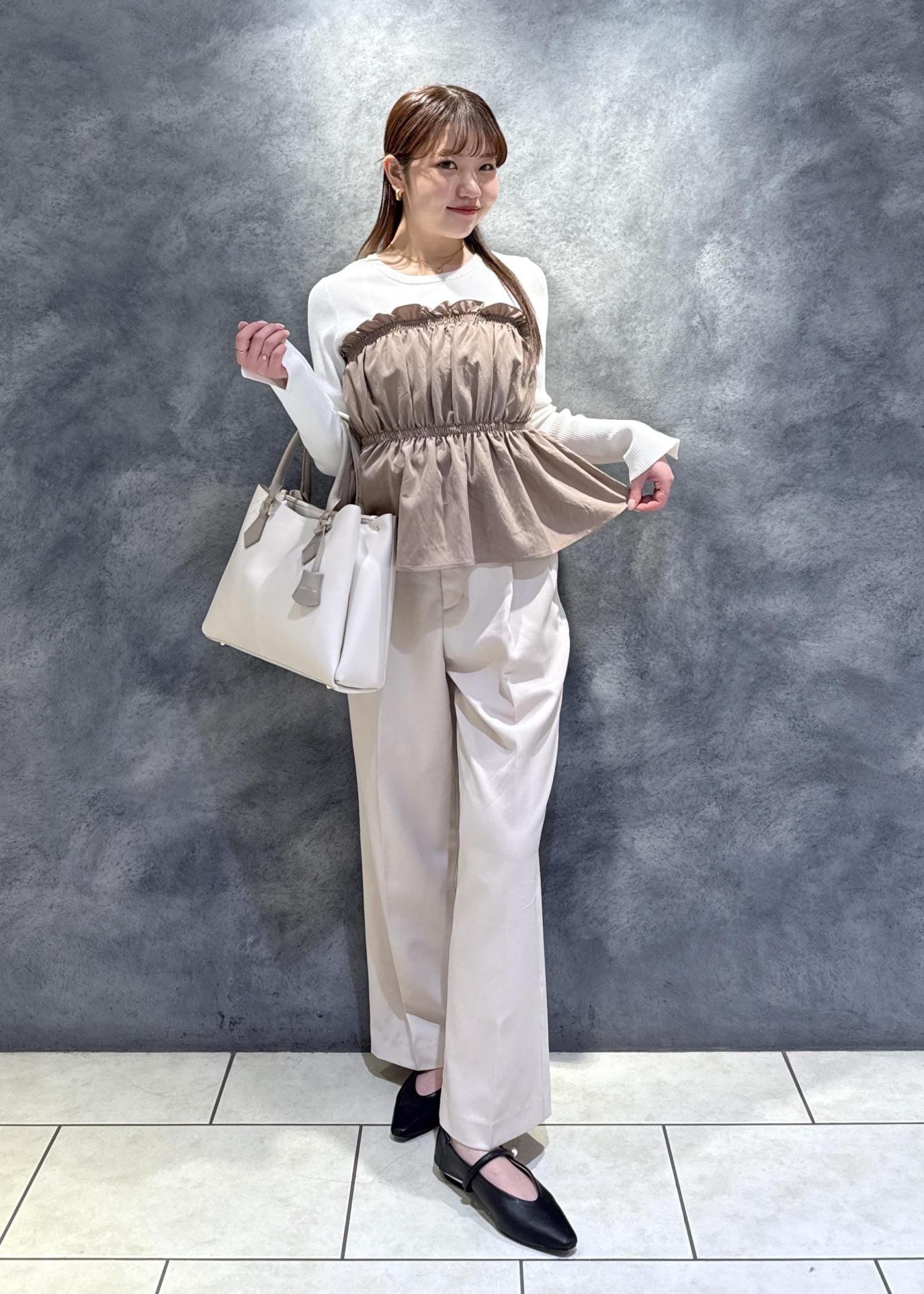 レイヤード風トップス!ワントーンコーデ◎