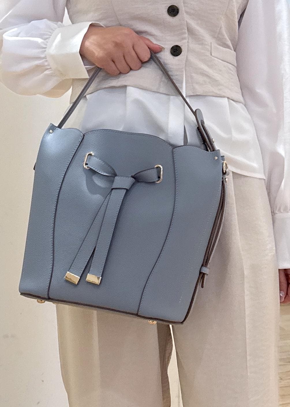 ブルーカラーのフラワーデザインがかわいいバックを合わせてオシャレ感をプラスしました。