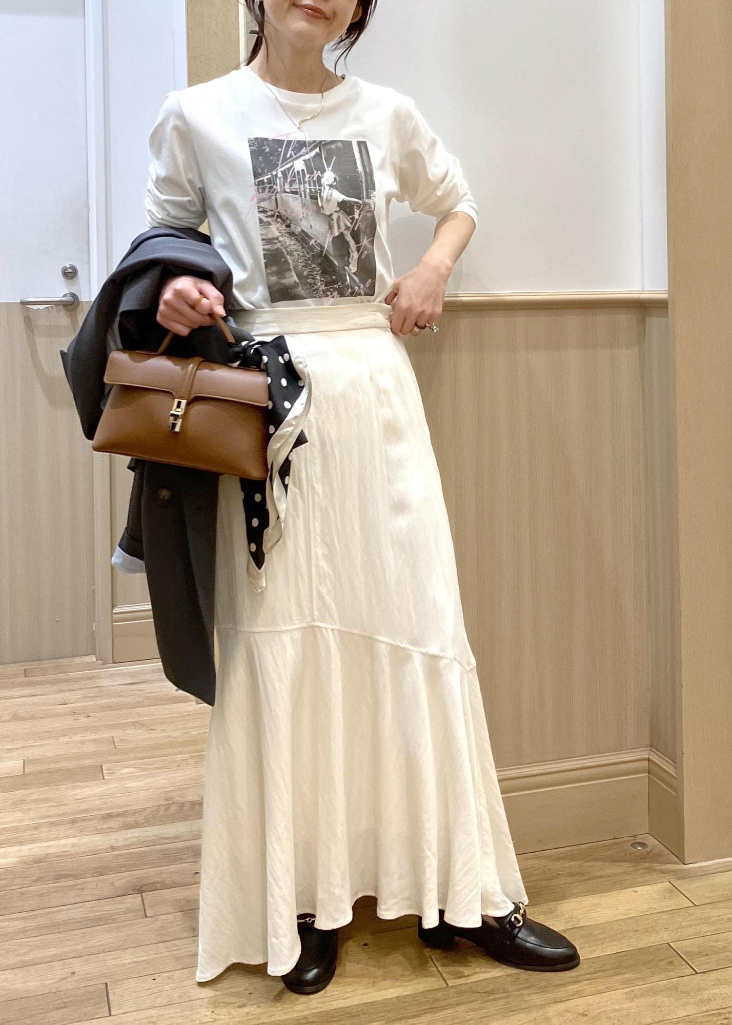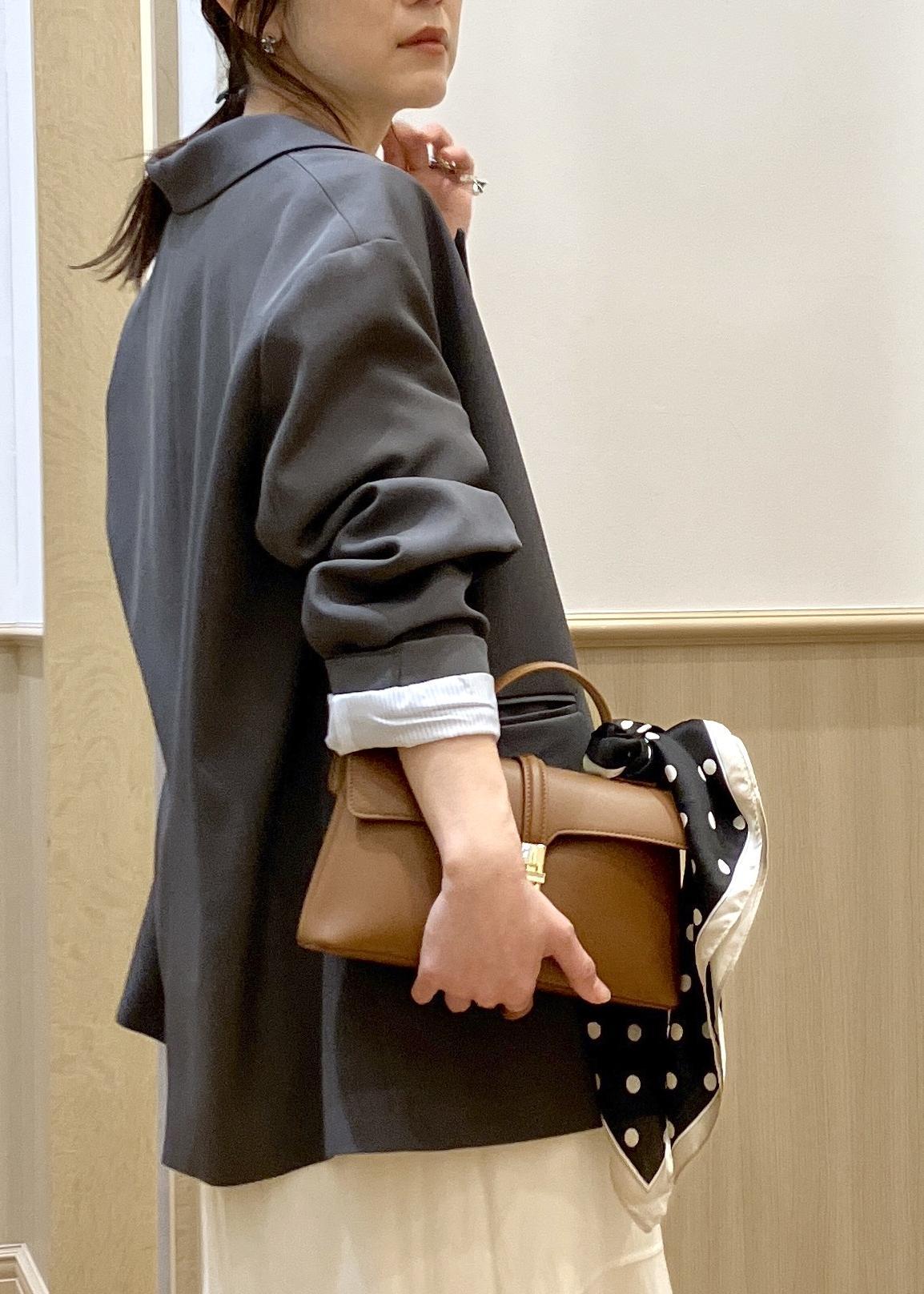 bagは小さめサイズで全体のバランスをスッキリさせたのがポイントです。