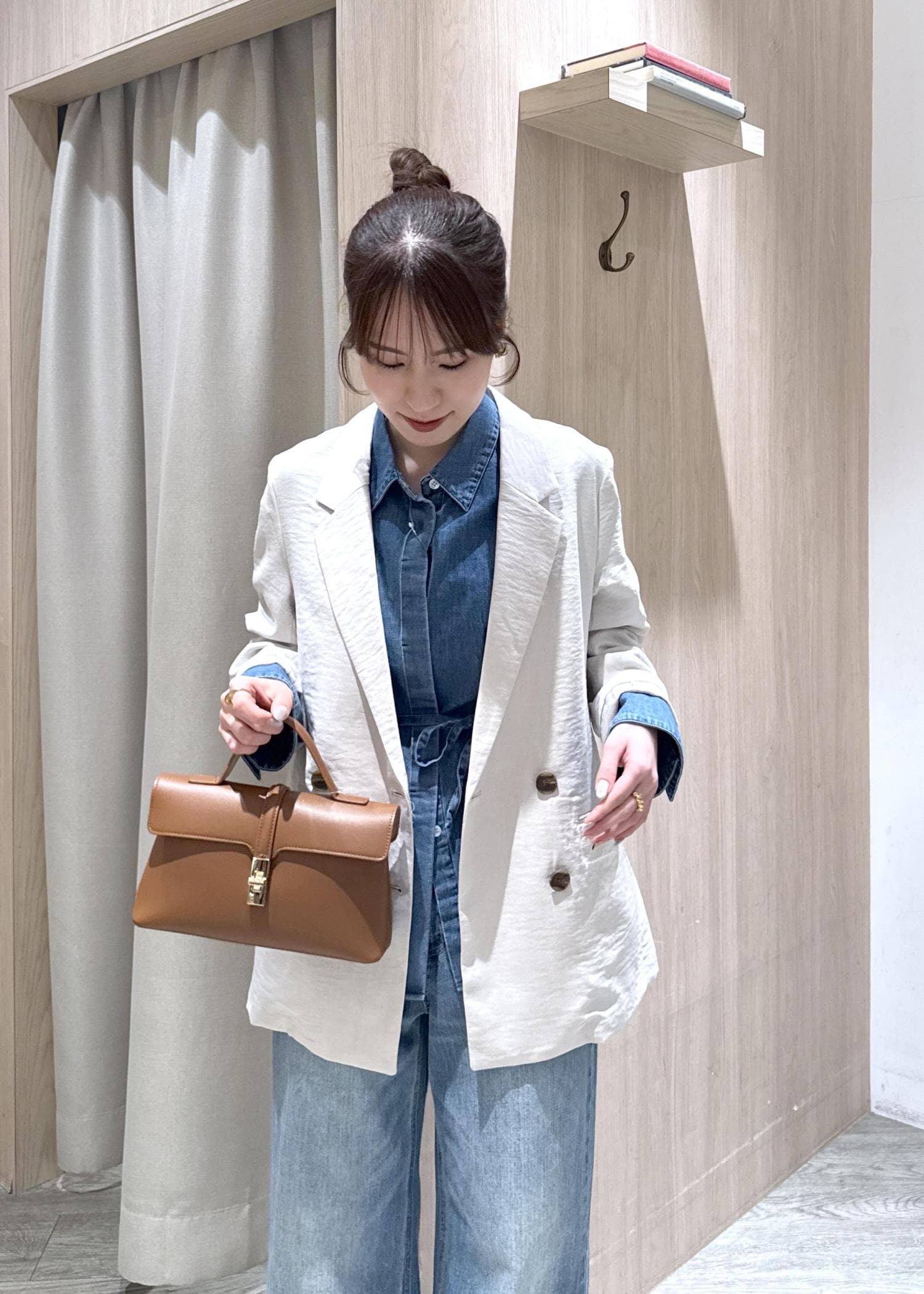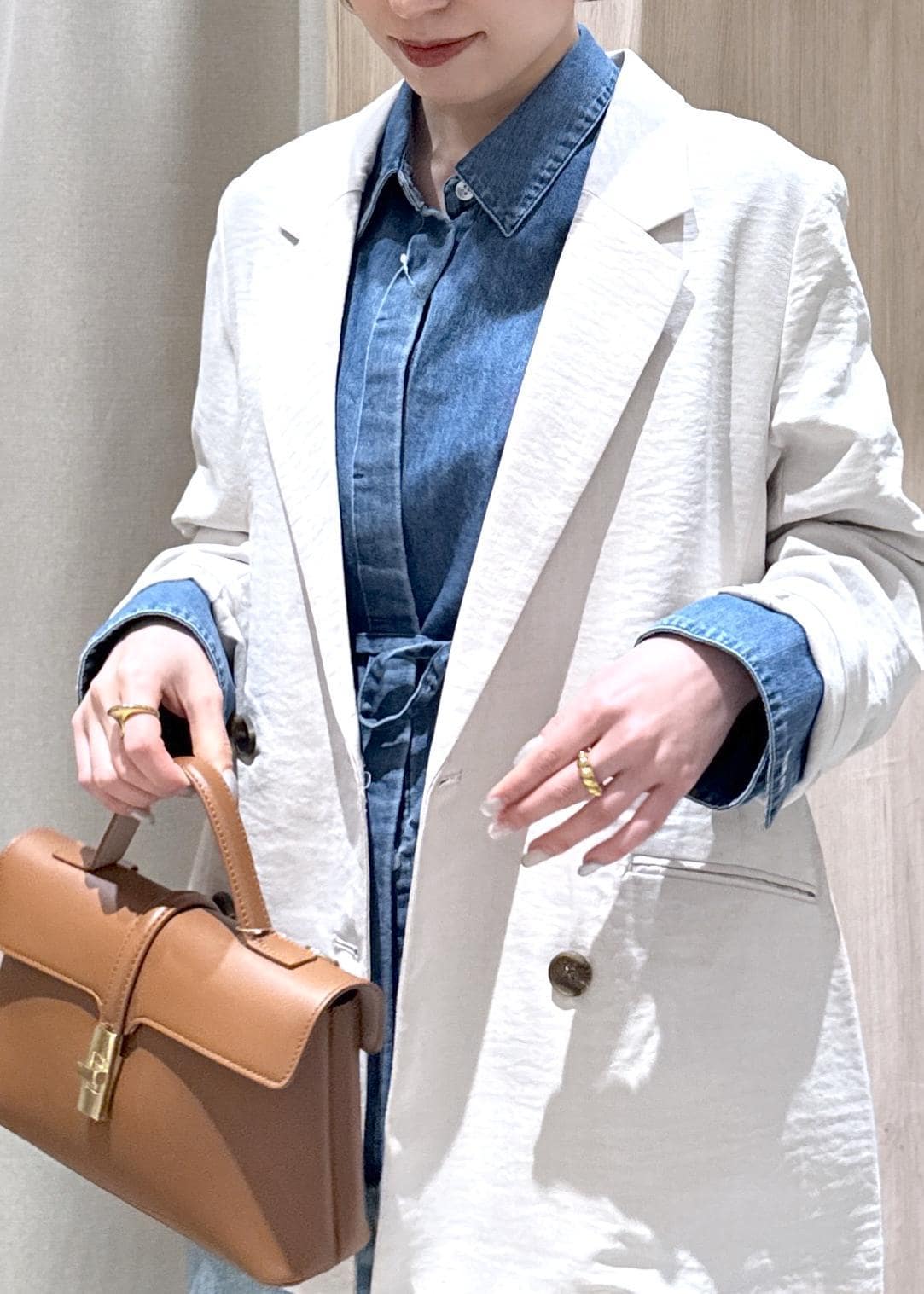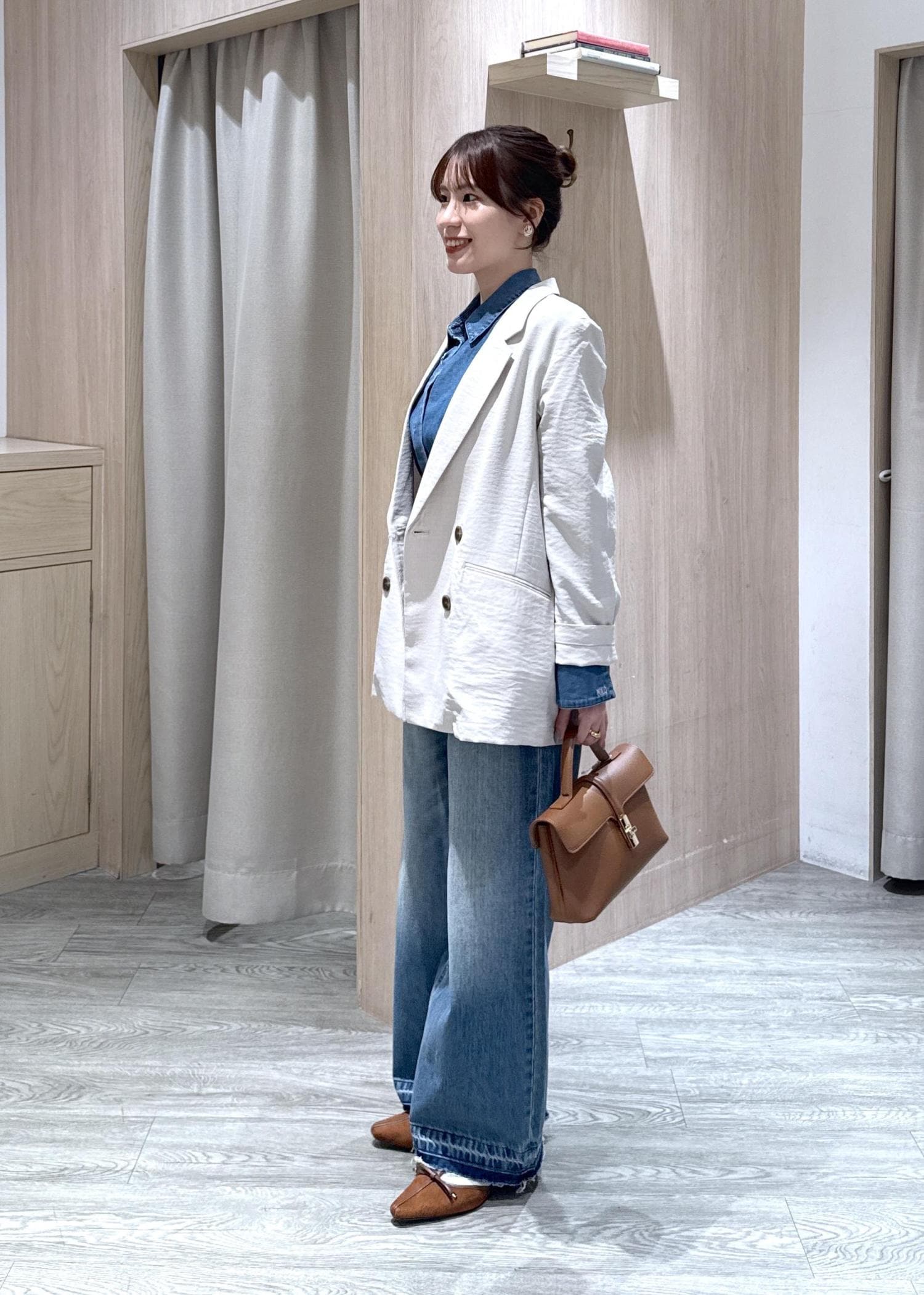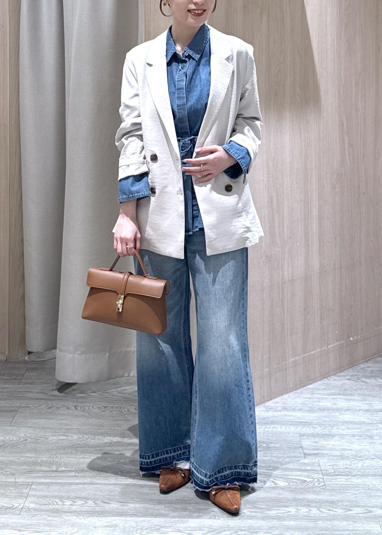 ヒップが隠れる丈感で、今回のブラウスはベルトも付いているので、より細見え&ウエストアップが叶います!!