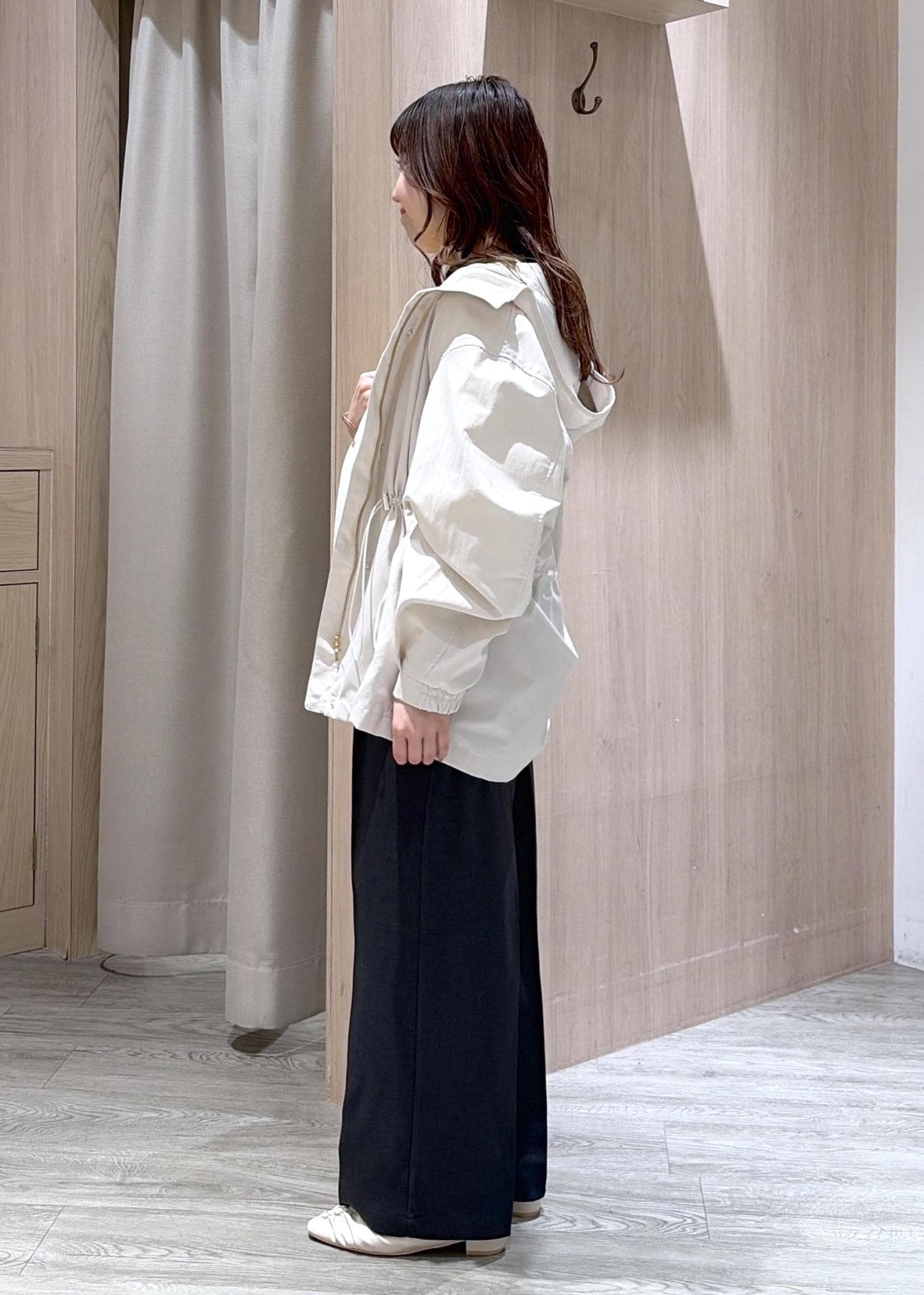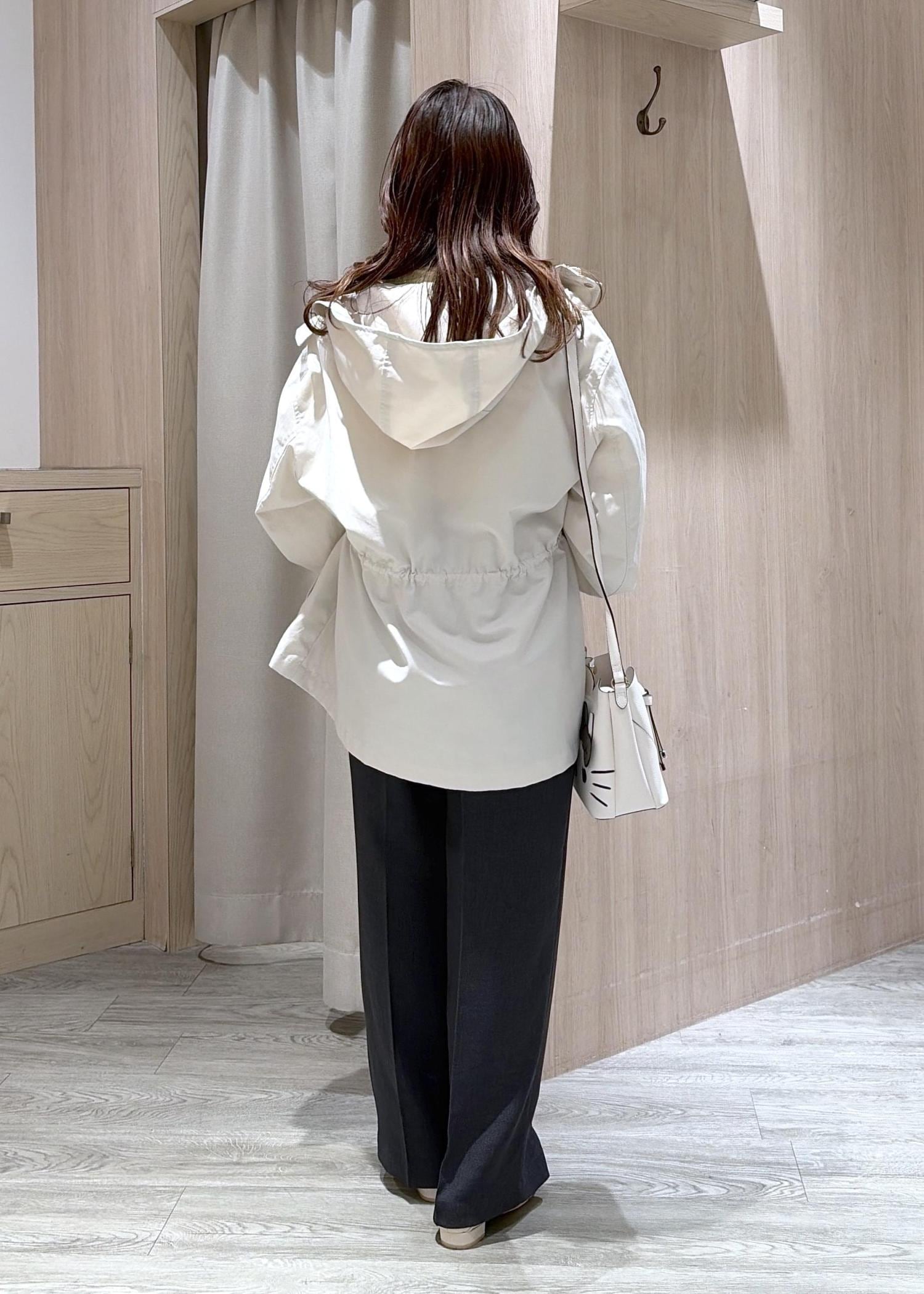 ドロストを絞ってウエストマークできるのでシルエットを変えて着れます◎