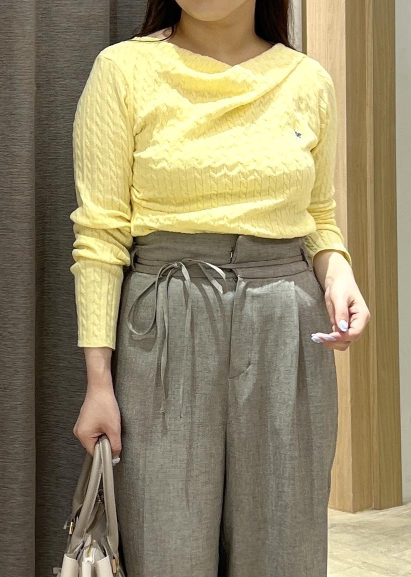 トレンドのドレープデザインのケーブルニットです!中肉の素材でロングシーズン使え、一枚着でもインナー使いでも重宝するデザインです◯