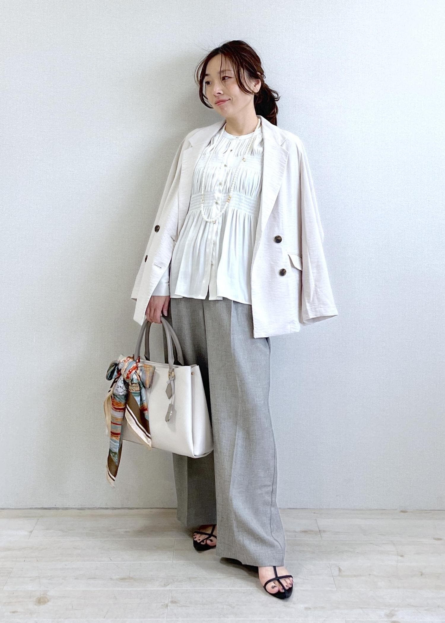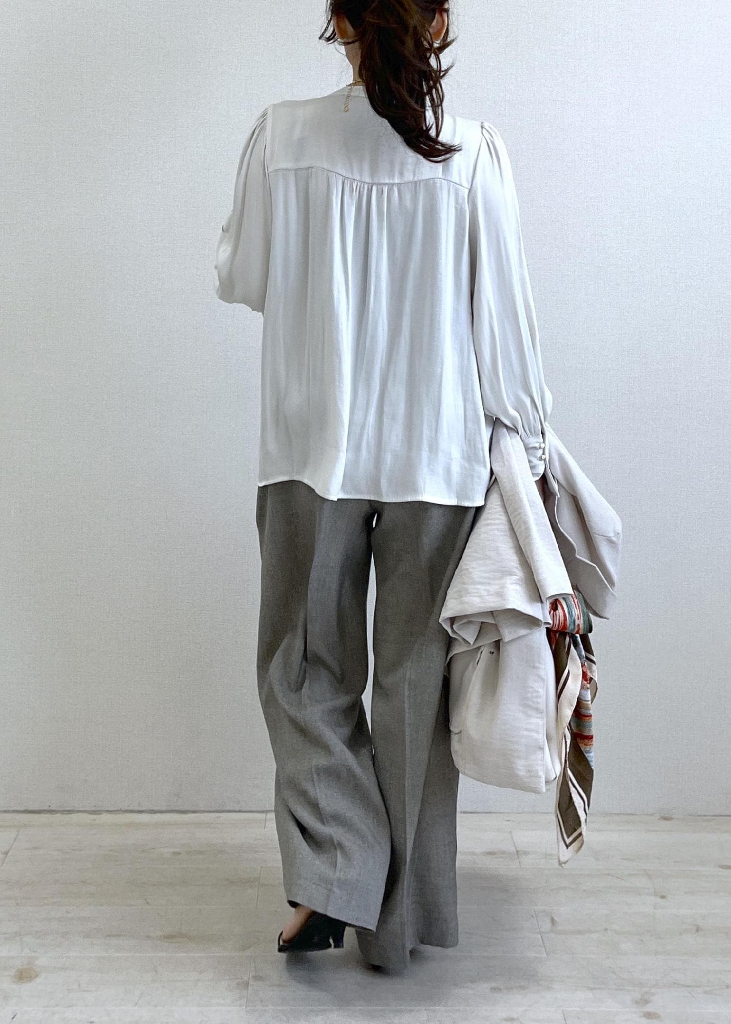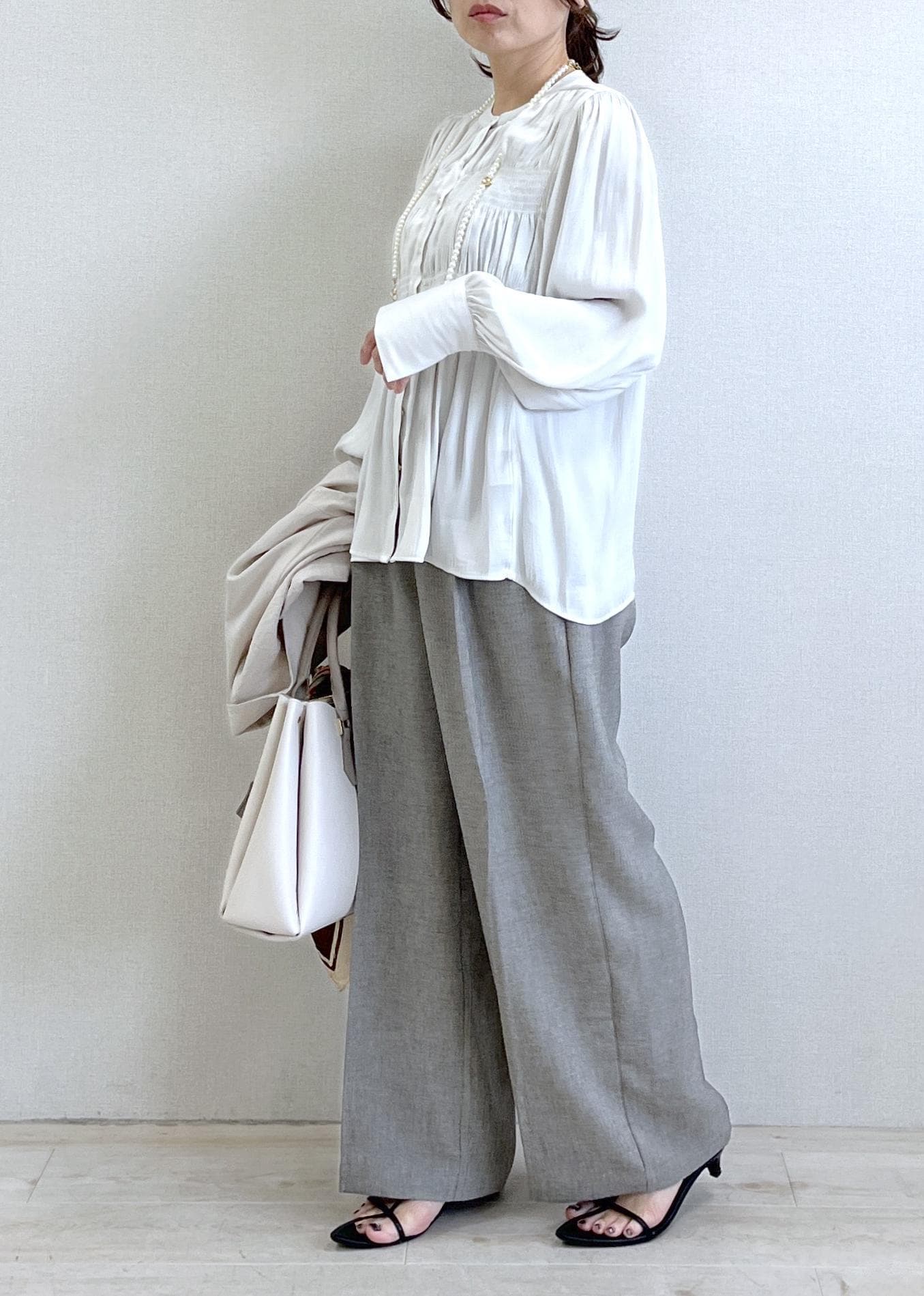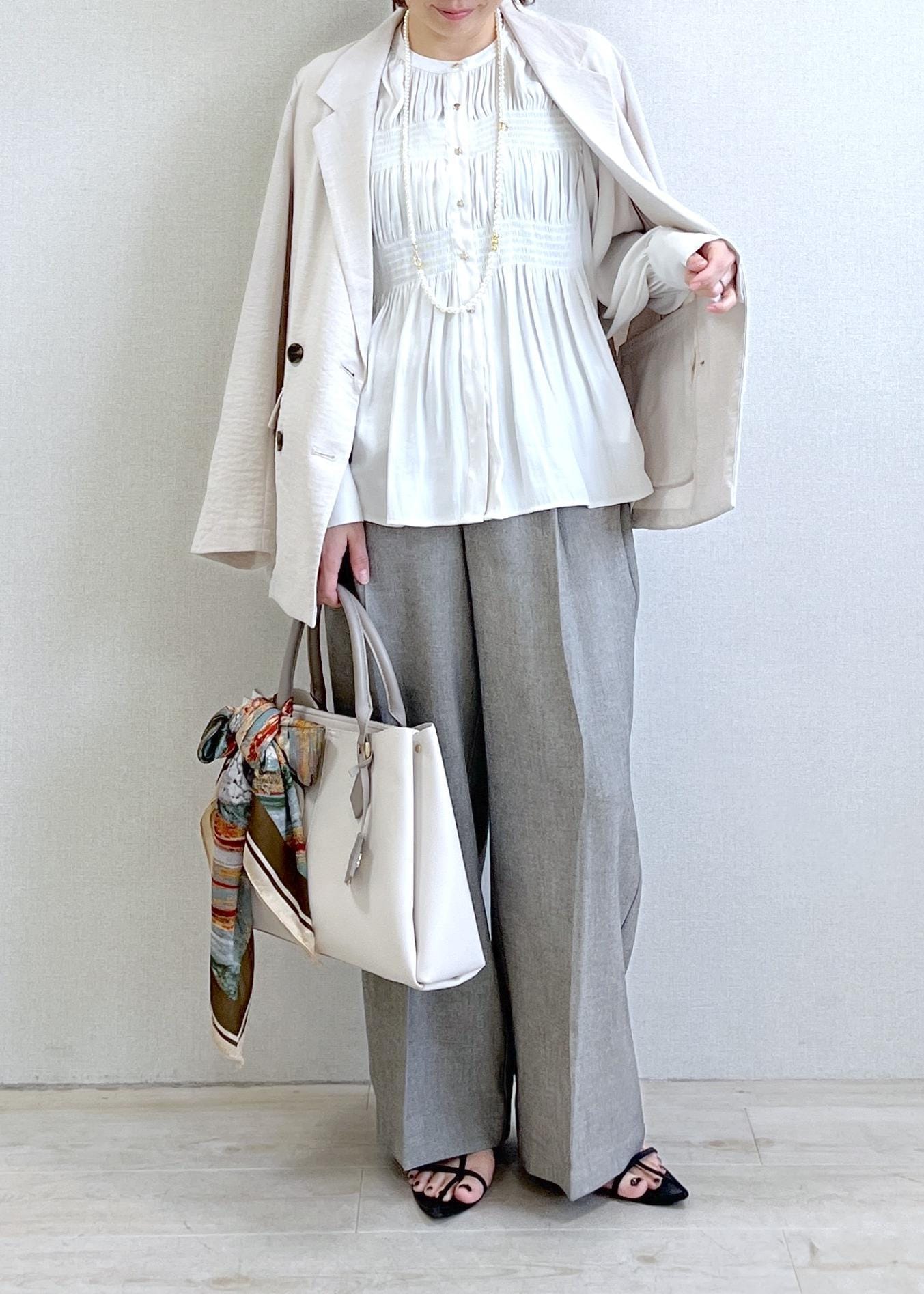 1枚で華やぐギャザーブラウスコーデ