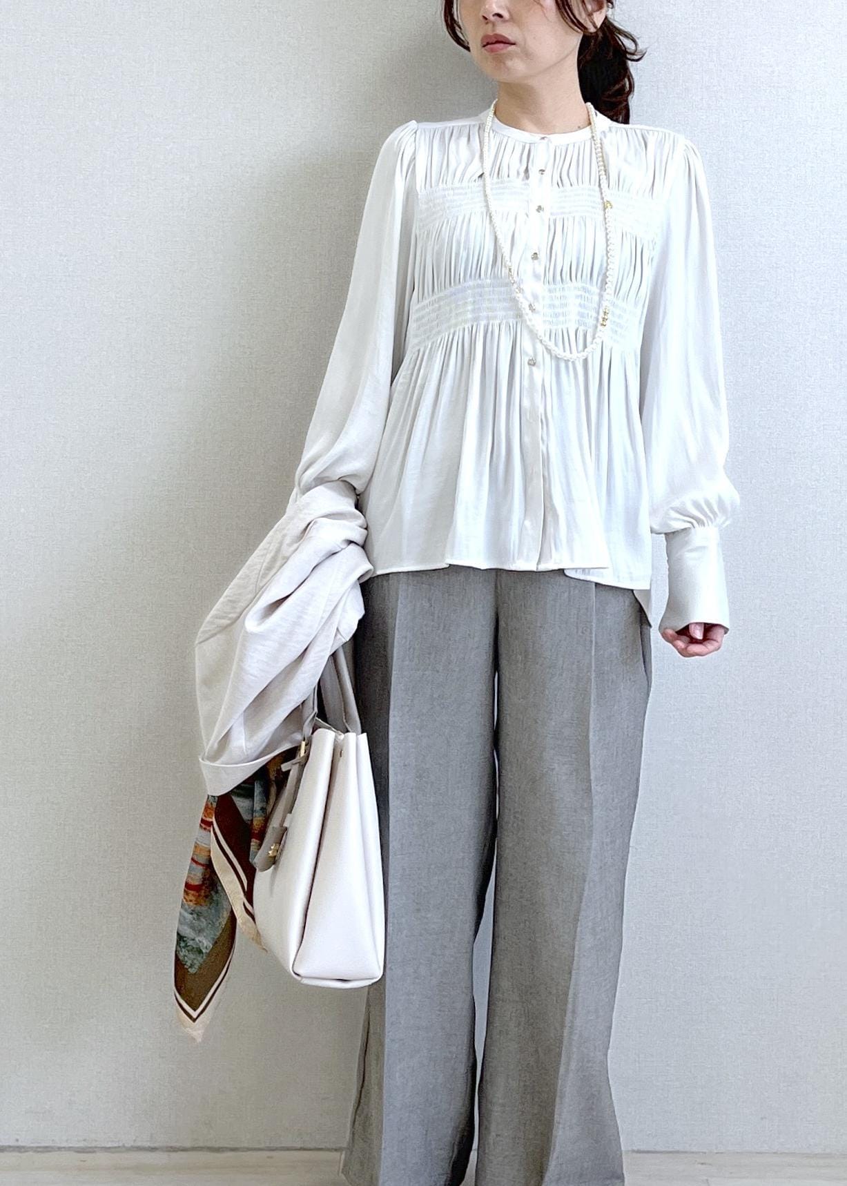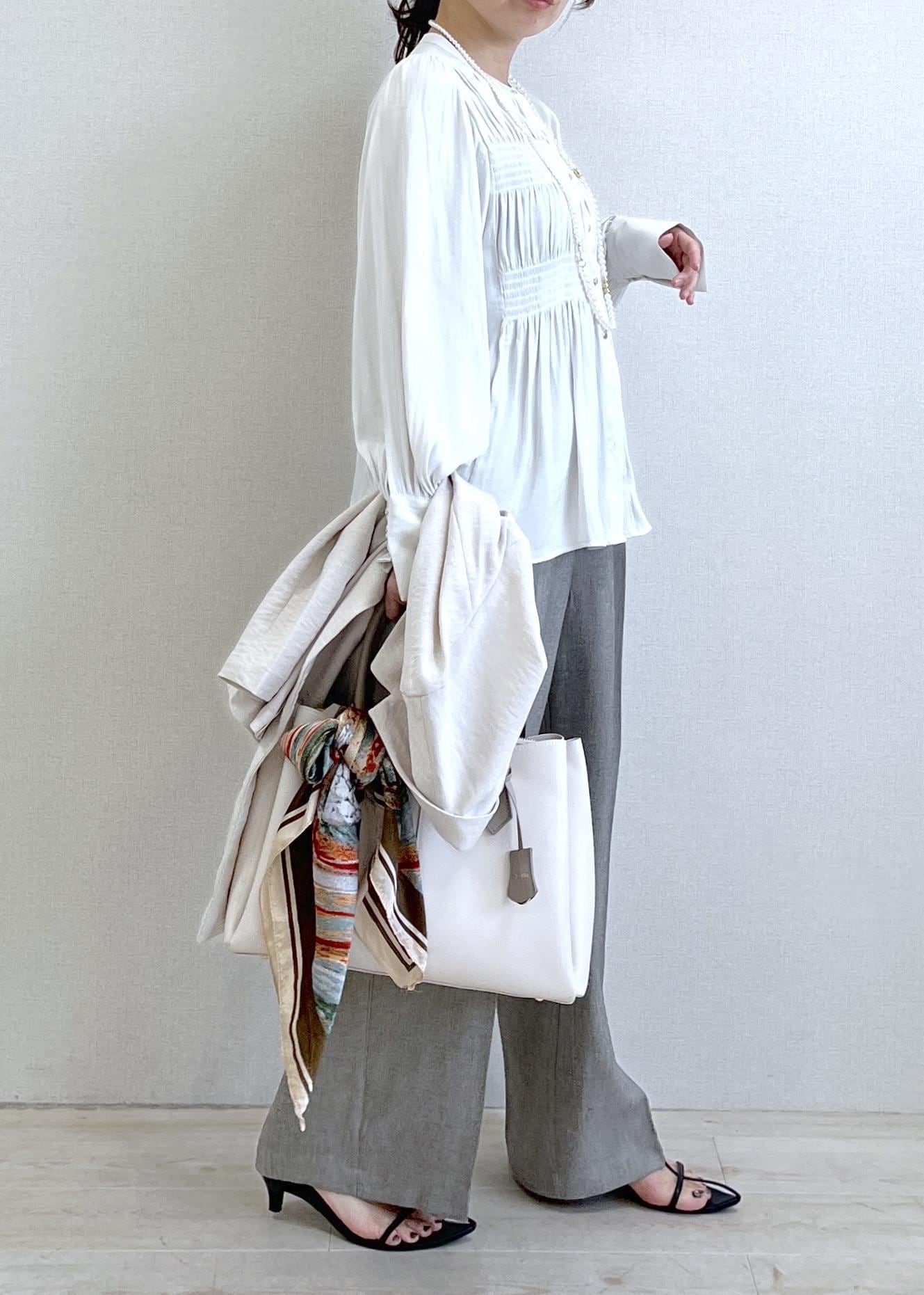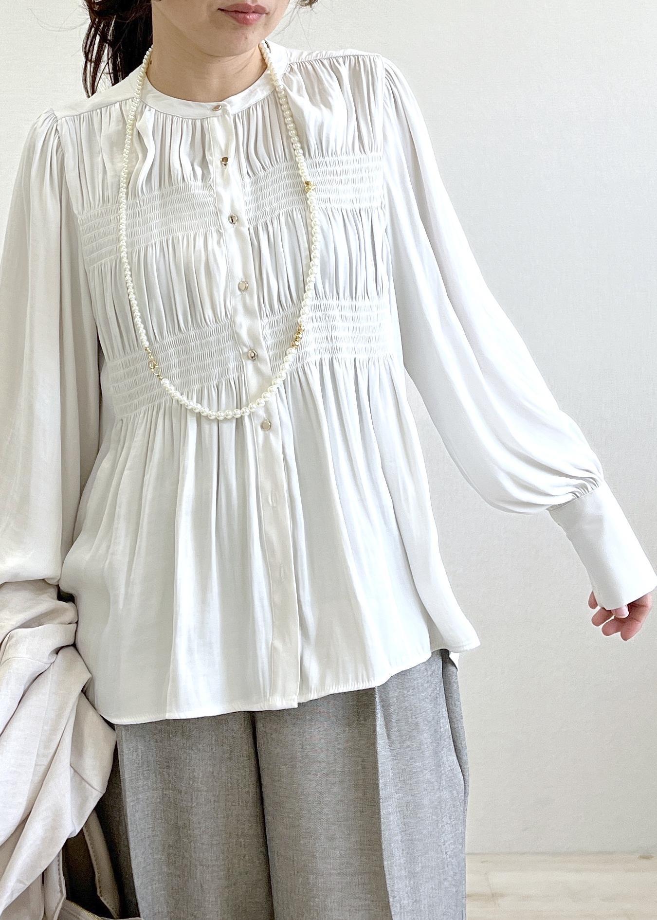 細かいギャザーがポイントのブラウス。