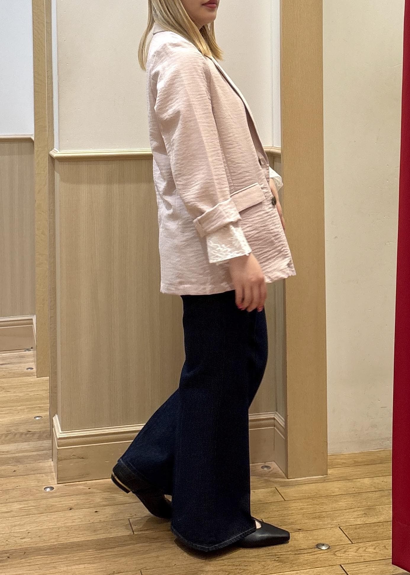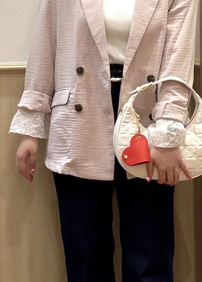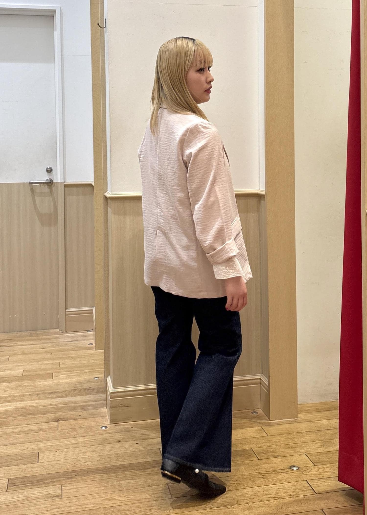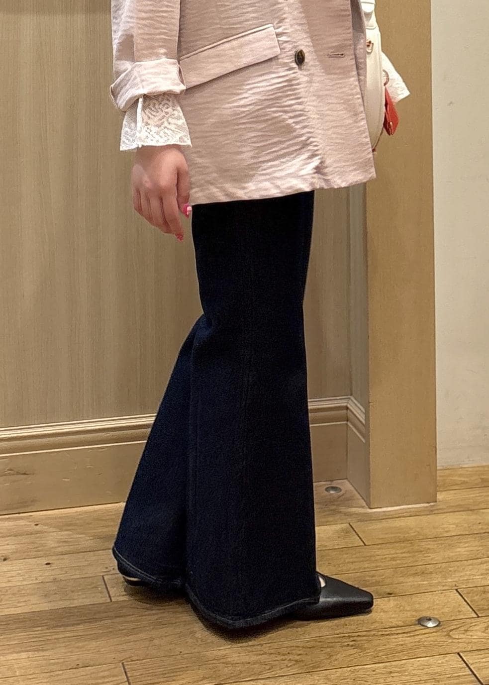 デニムでカジュアルにした分、ジャケットを合わせて、ジャケットの袖からレースのトップスを見せて大人っぽさを意識しました!