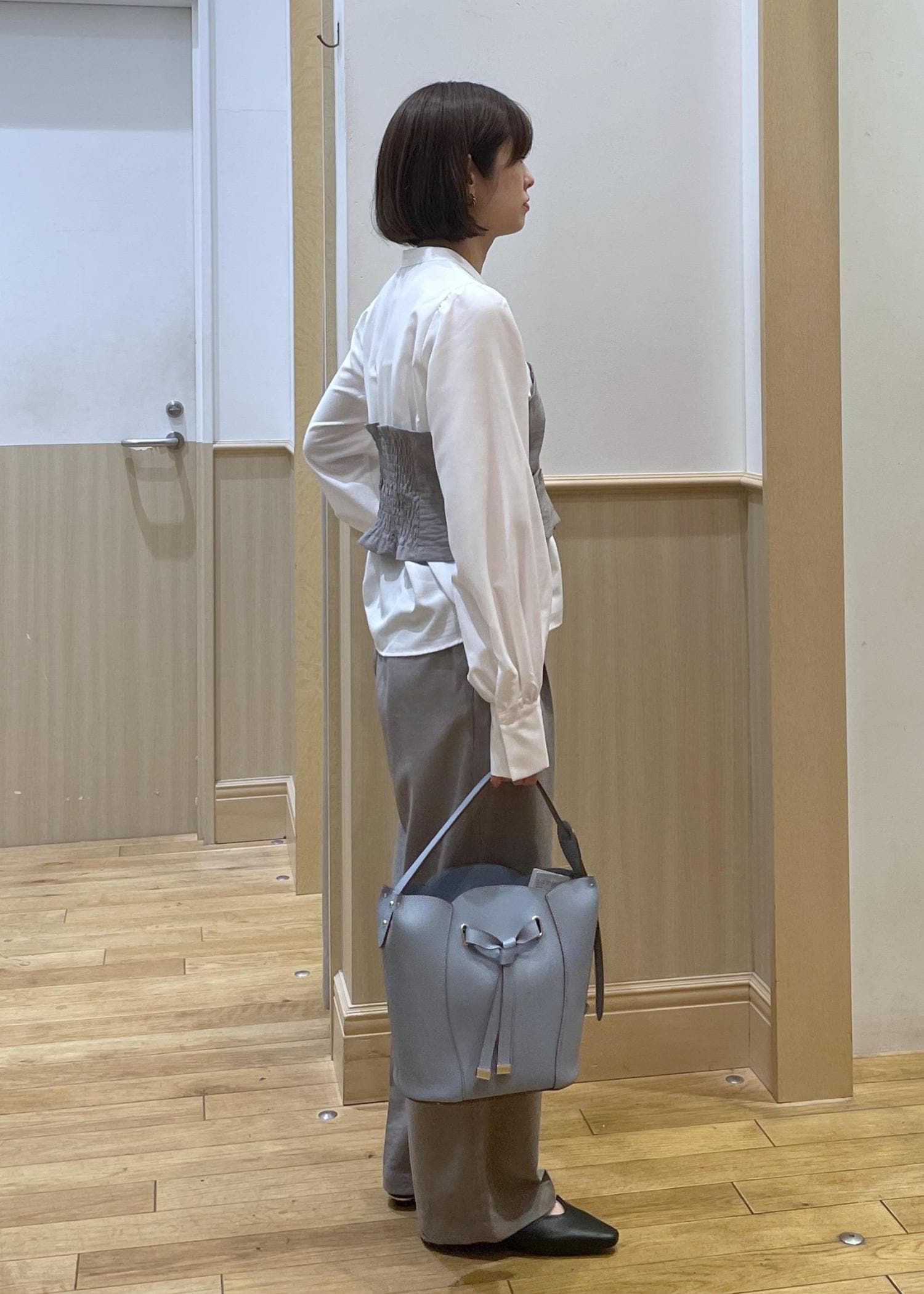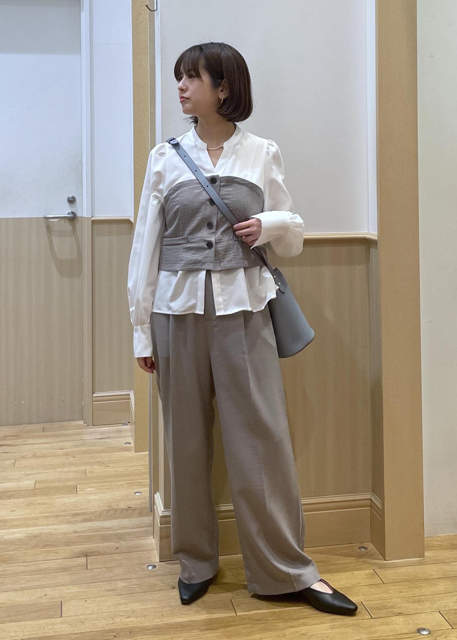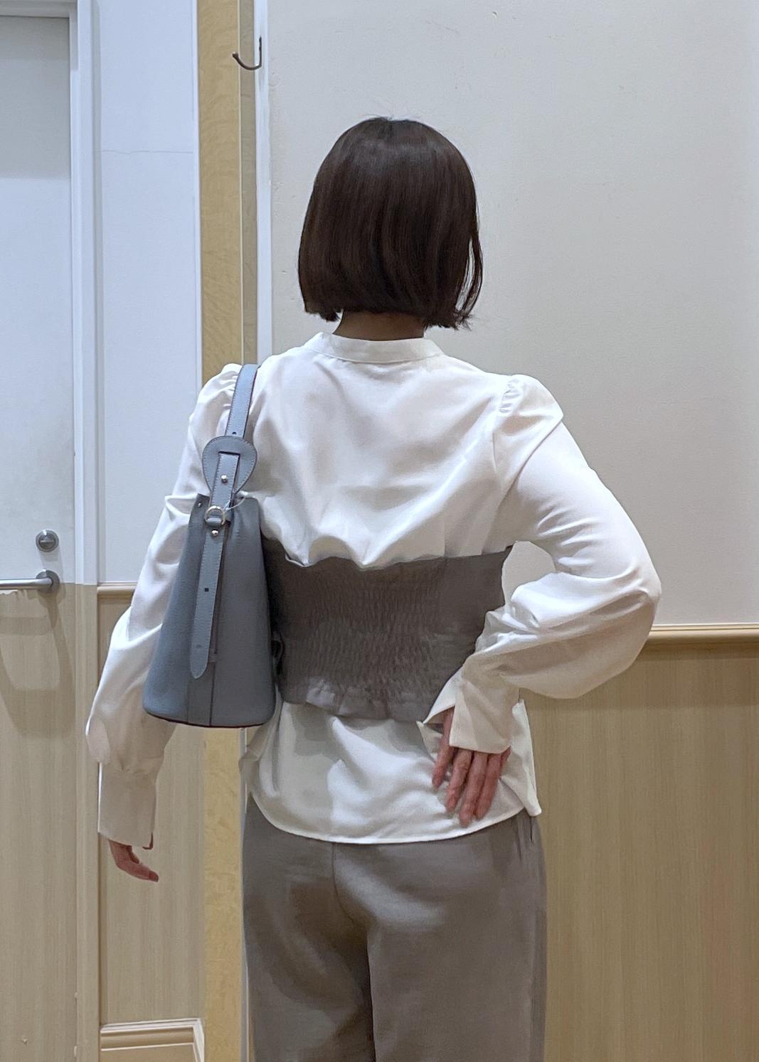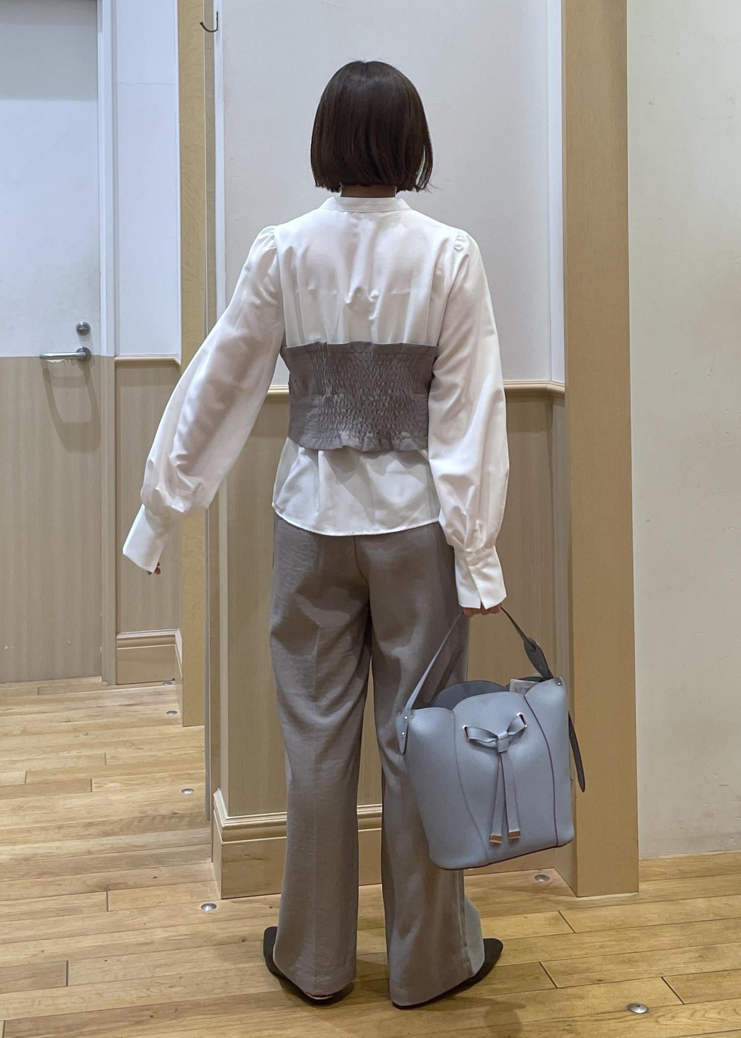 デニム合わせてカジュアルにも着られる、オンオフ兼用しやすいデザインです。 -