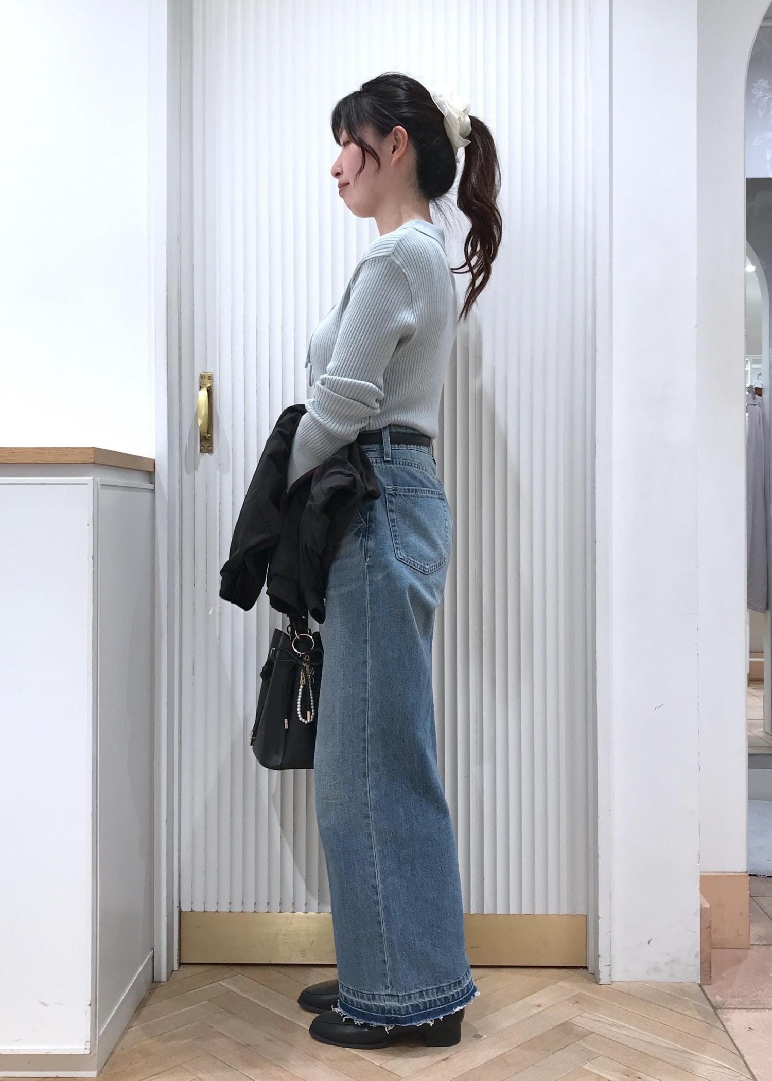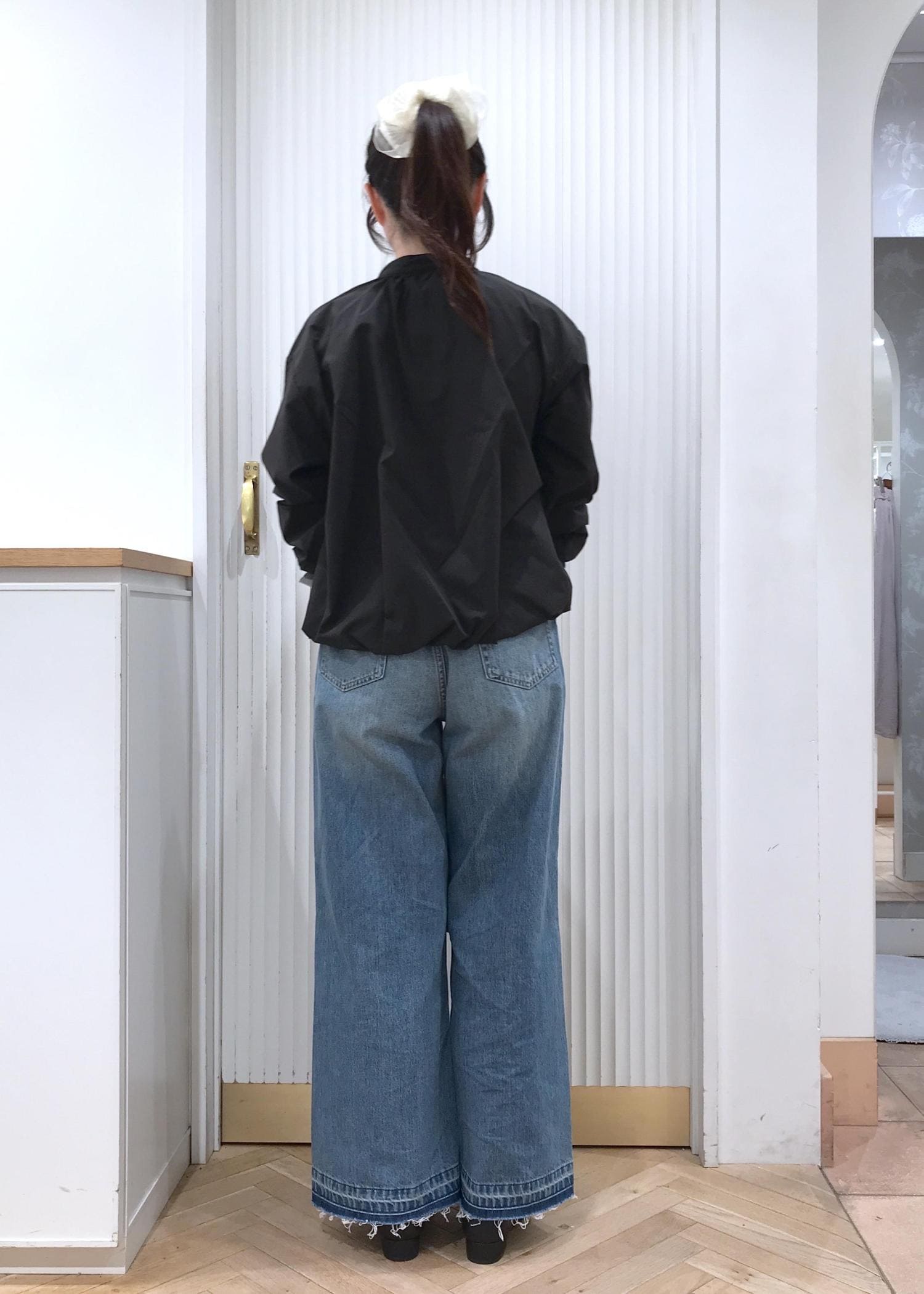 全体的にゆったりシルエットのバギーデニムですが、柔らかいデニム素材で伸縮性があるのでリラックスして着用出来ます。 -