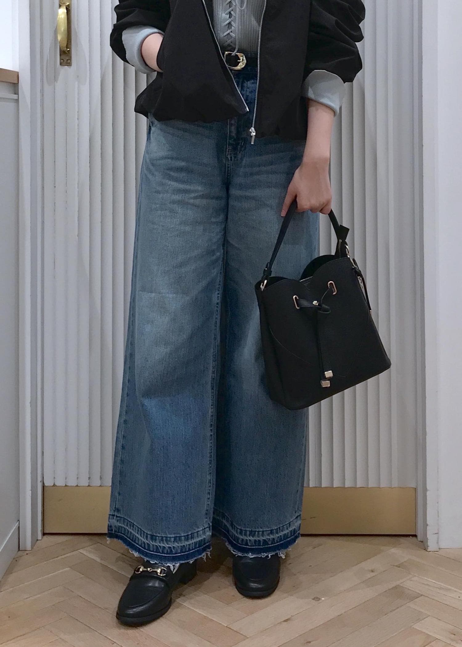 バルーンシルエットが可愛いブルゾンとデニムを合わせたカジュアルコーデです。