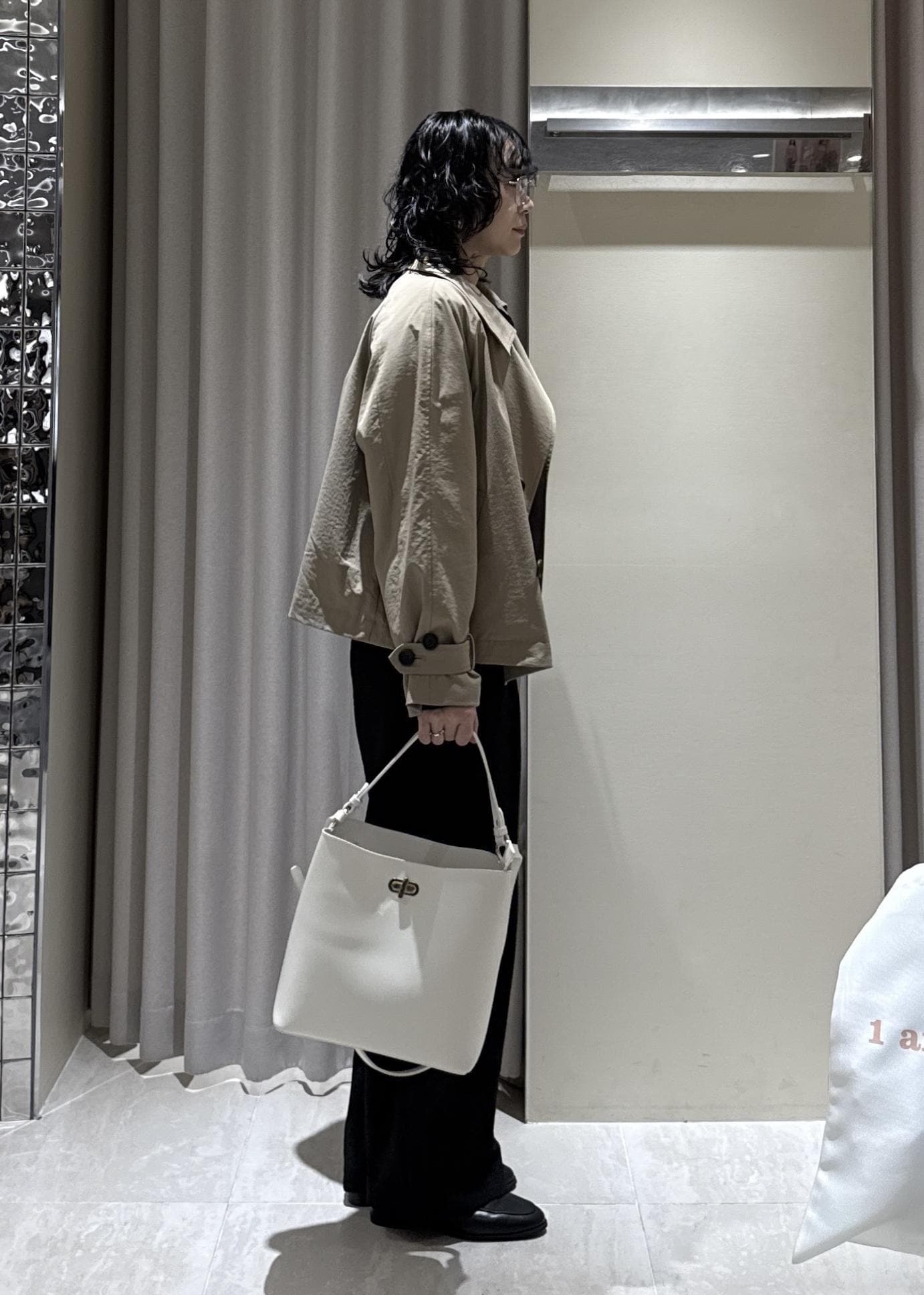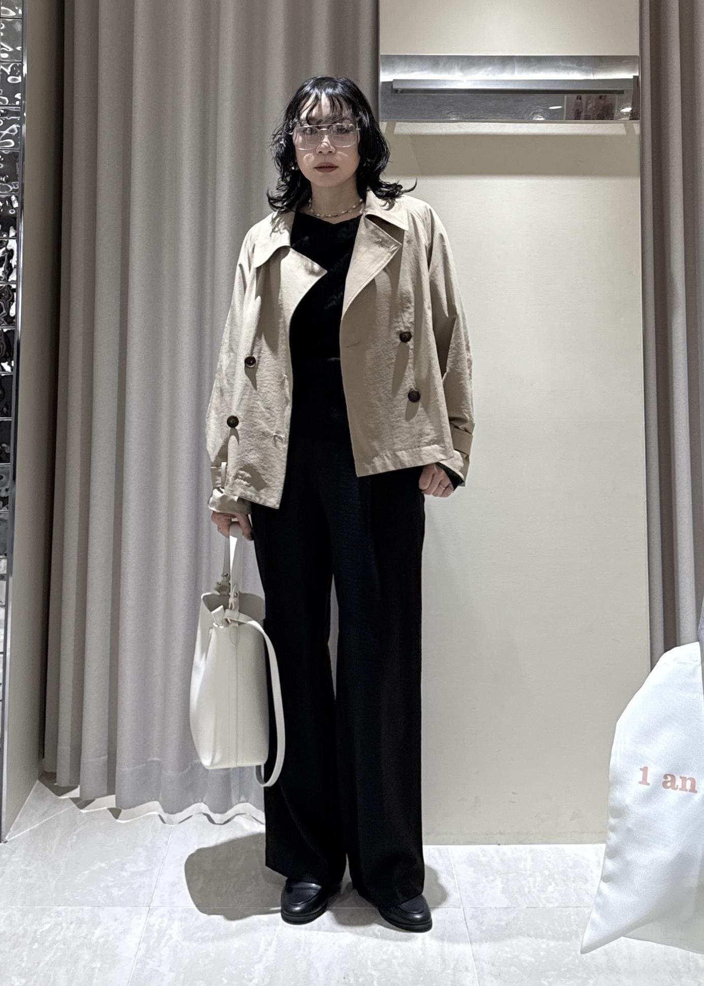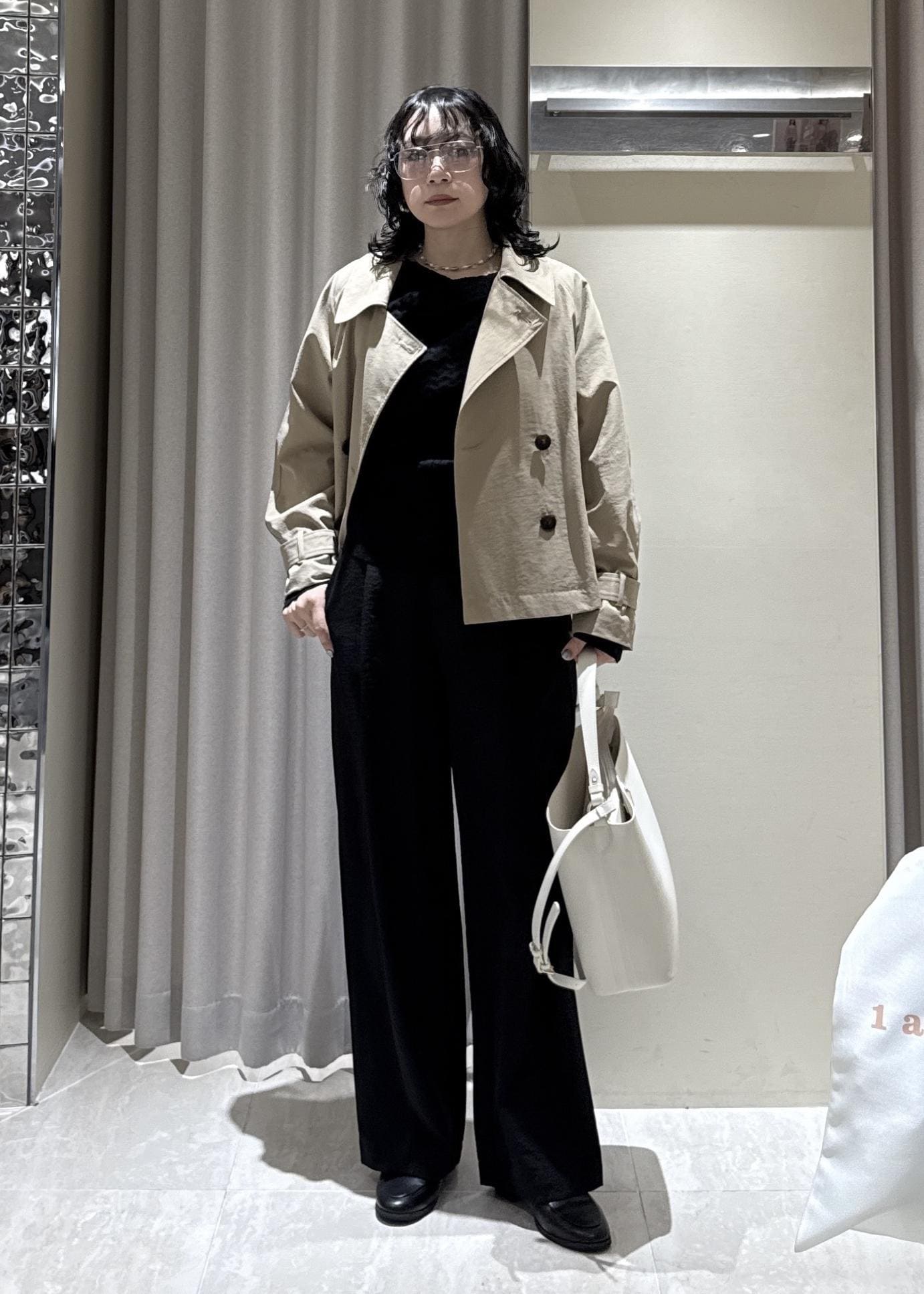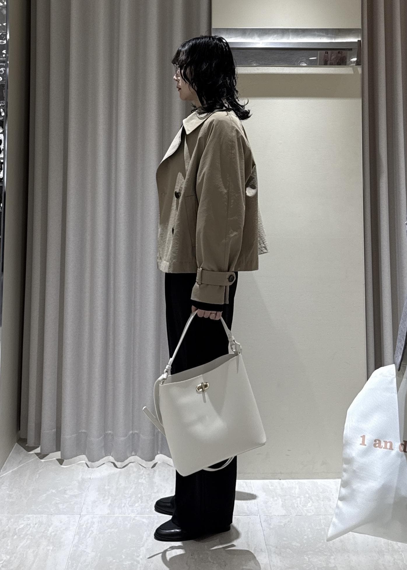 重たくなり過ぎないようにトレンチコートで明るさを入れました◎
