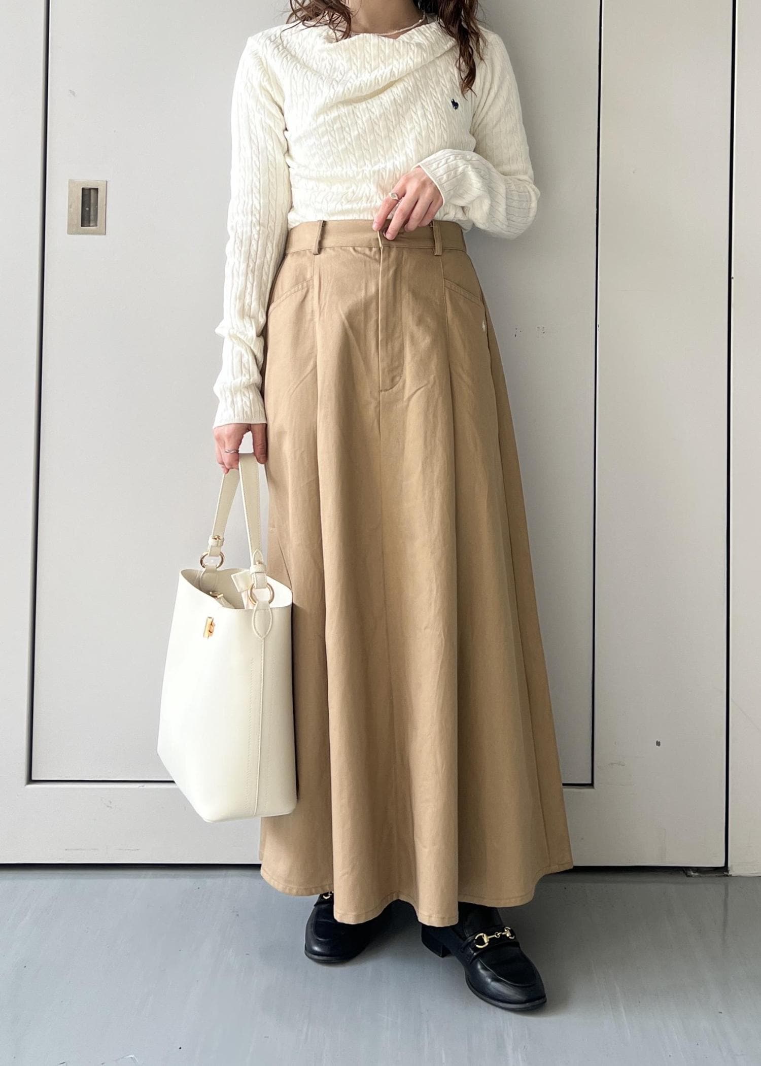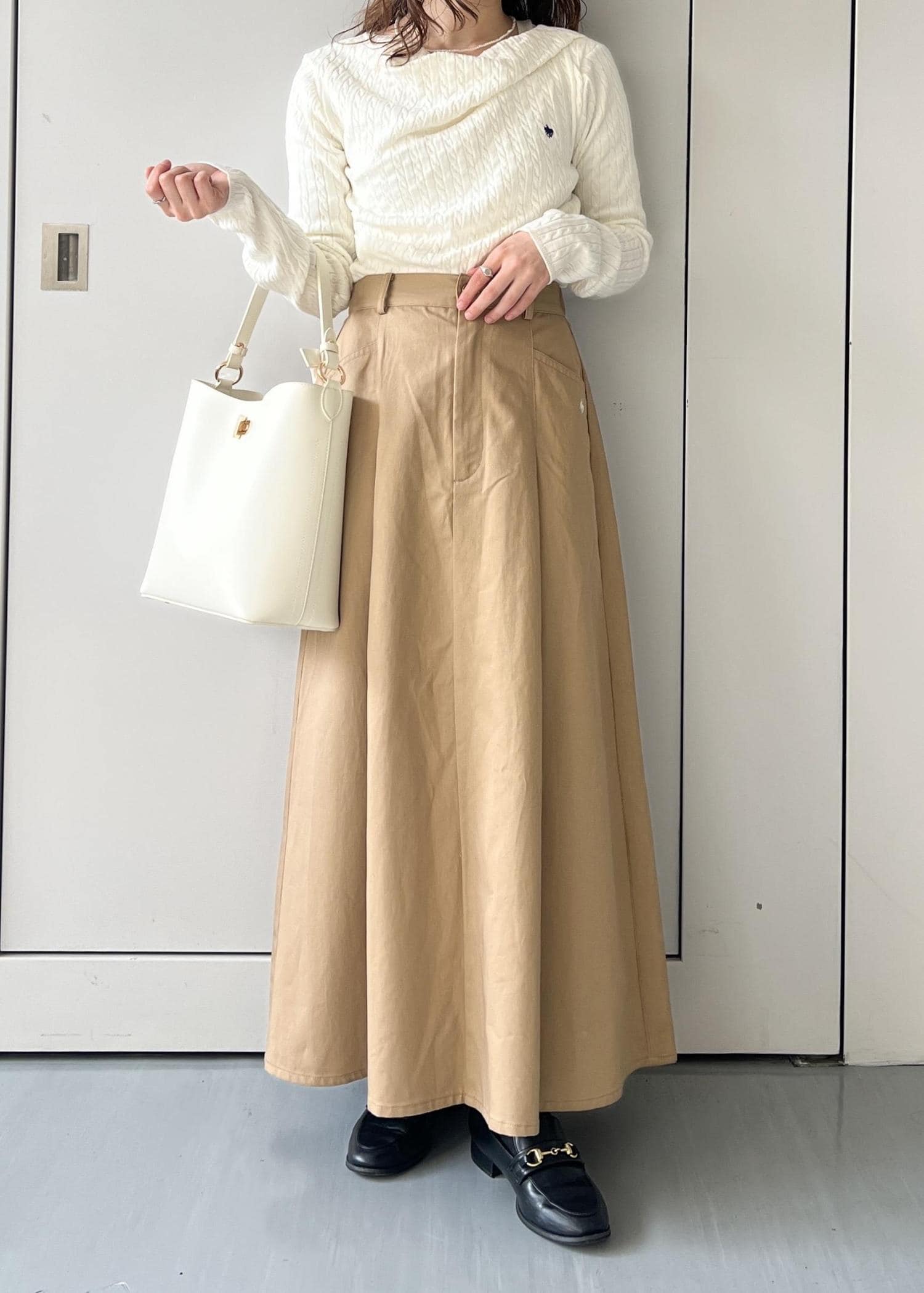 152cmでSサイズ着用。足首が隠れる着丈で床には着かないので安心して履けました。きちんと感のあるデザインでカジュアルでも綺麗めでも着用できます✨