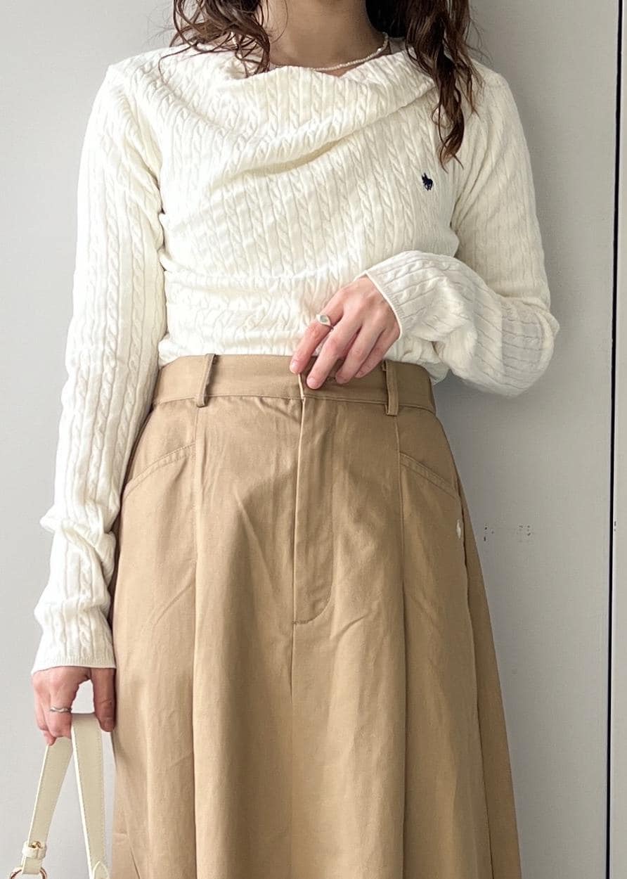 首元も広すぎず、薄手のニット素材でインナー使いや1枚着でもおしゃれに着こなせます。袖は長めで、細身ですがスタイル良くみせてくれます。