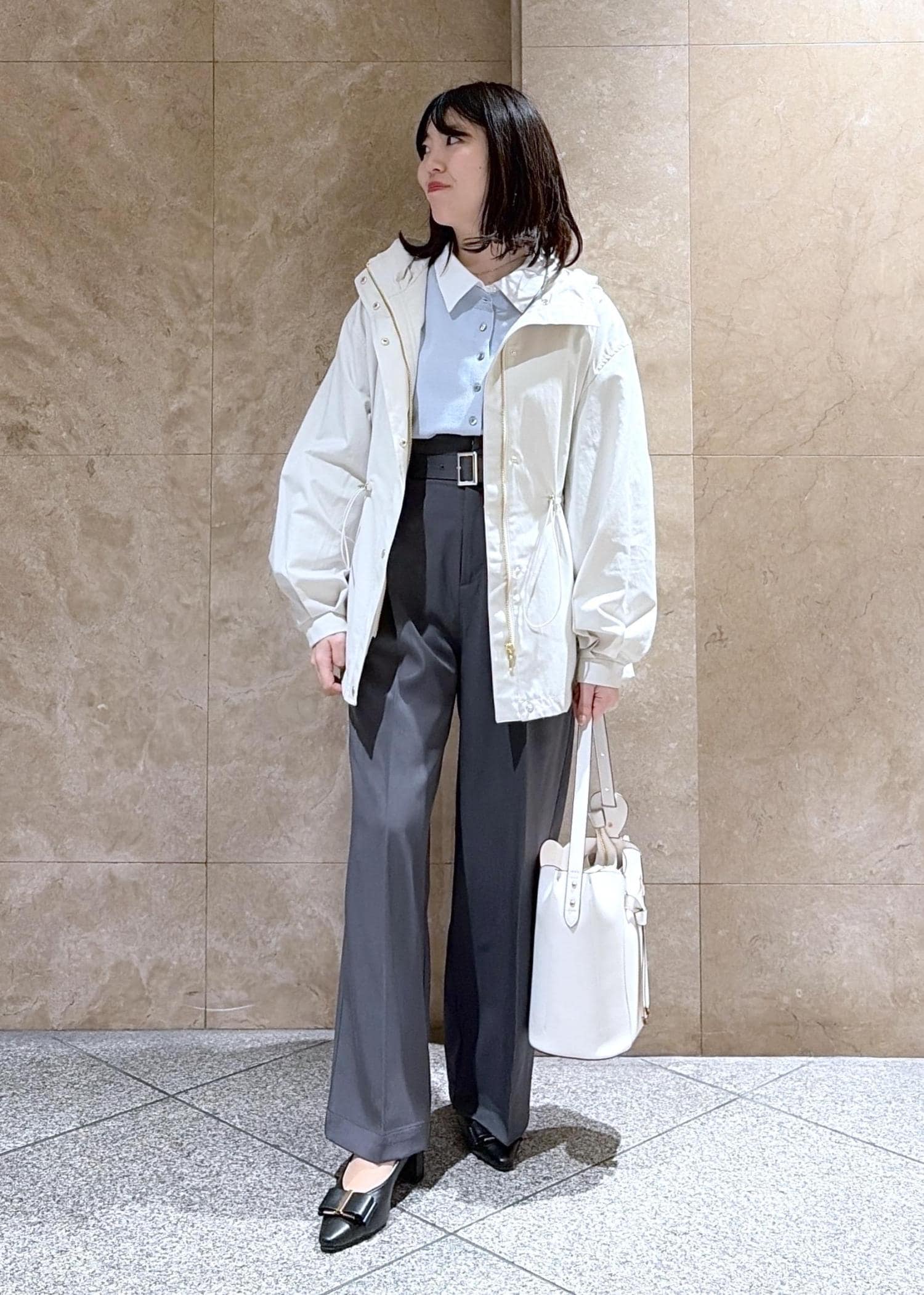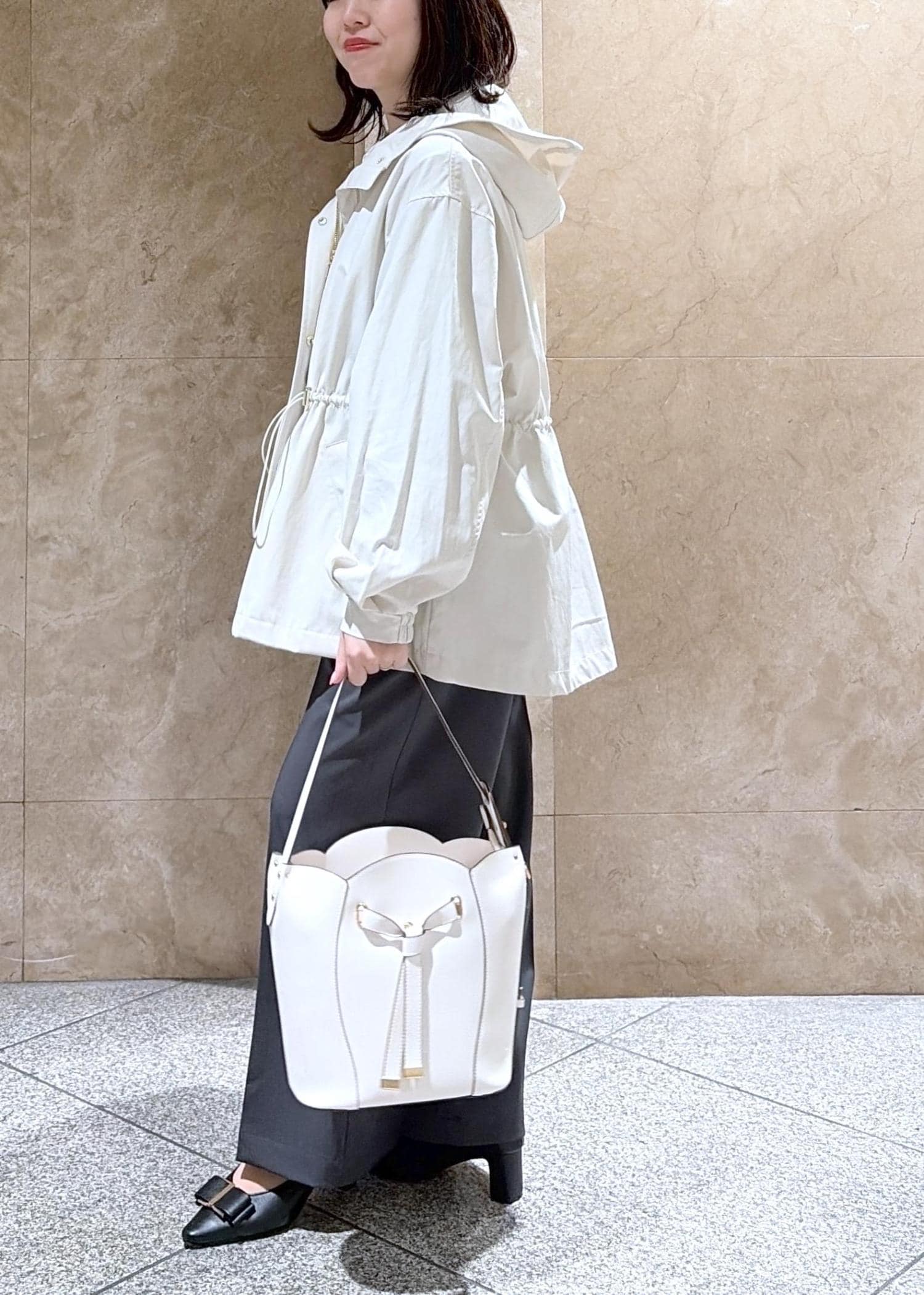 ドロストで絞ったり広げたり出来るのも、お洋服に合わせて変えれるのでとても便利です!