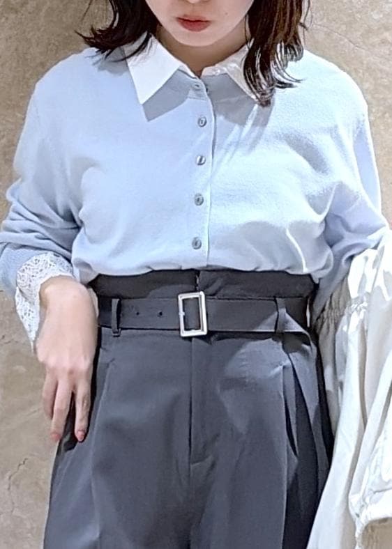 VISレースカフスドッキングニットカーディガンサックス / F¥6,589レビュー149cmでFサイズ着用し、腰にかかるぐらいの丈感でした!