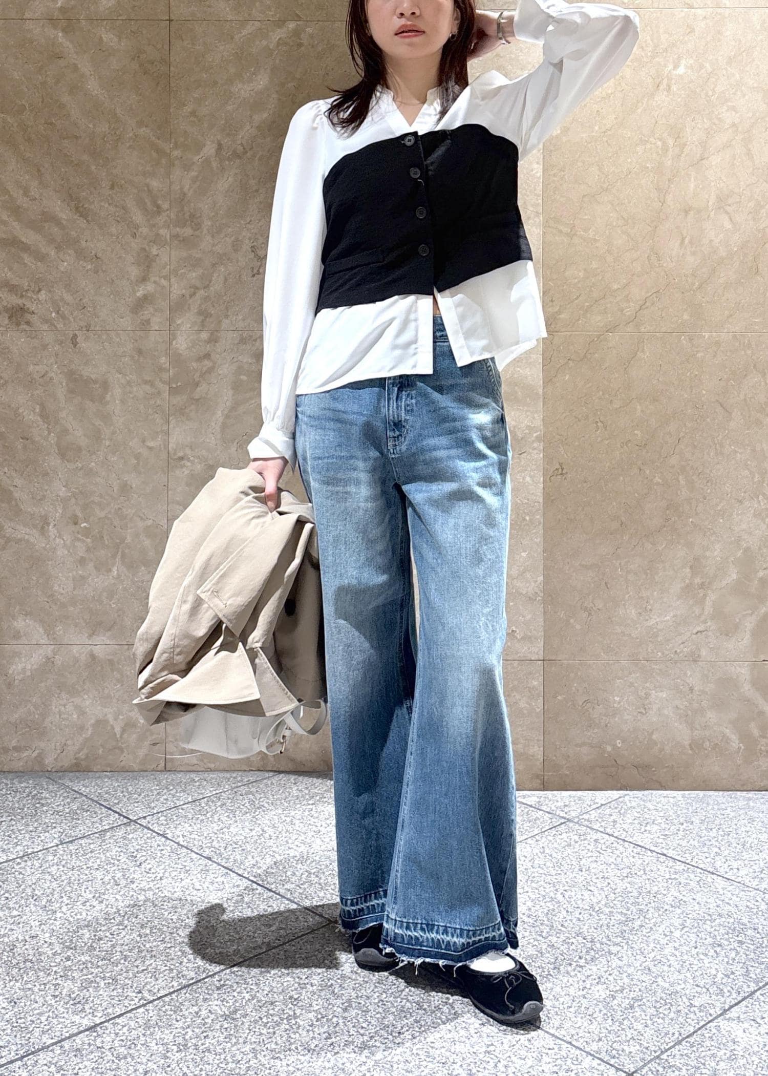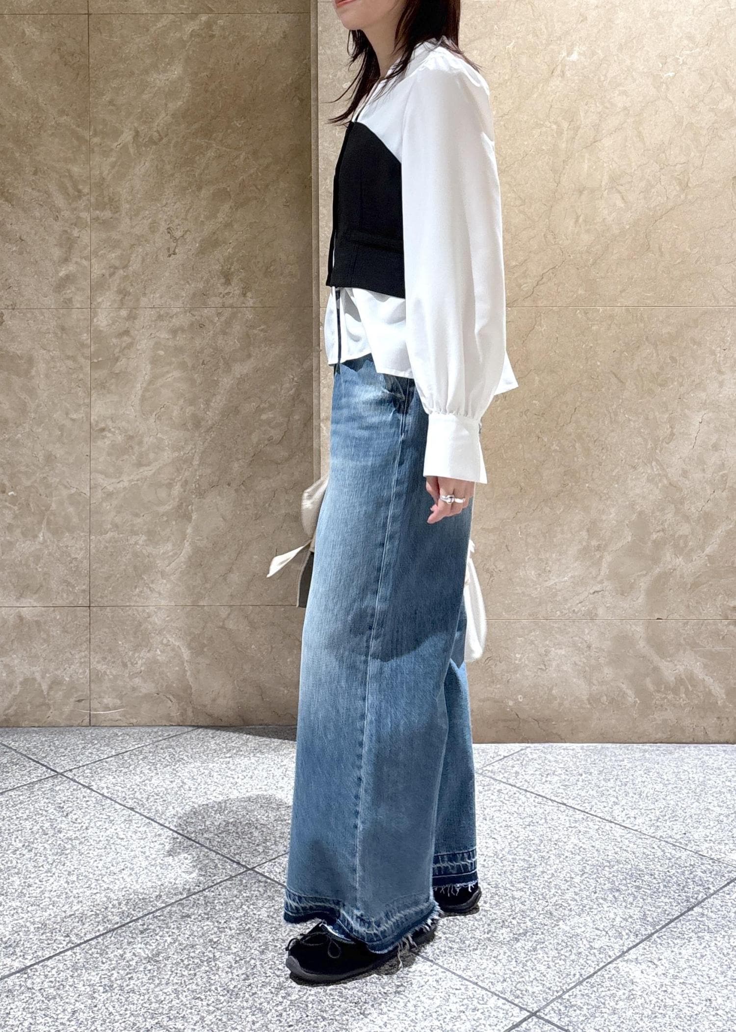 ショート丈ですが、着丈の長いトップスも合わせやすいシルエットでした。 -