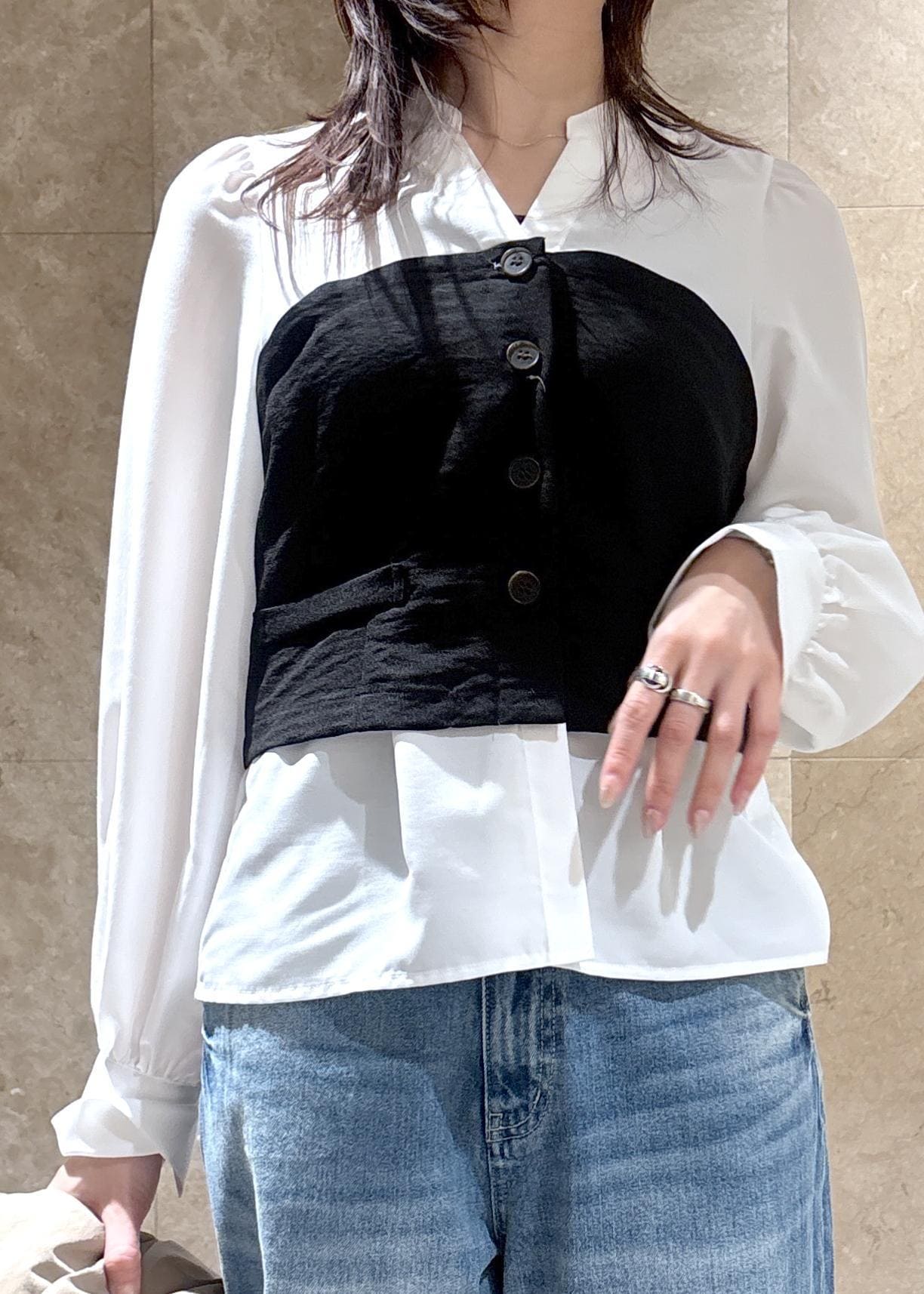 VIS美easy前開きビスチェドッキングシャツ/イージーケア・接触冷感・セットアップ対応ブラック / F¥5,929レビュー程よくゆとりのあるサイズ感。