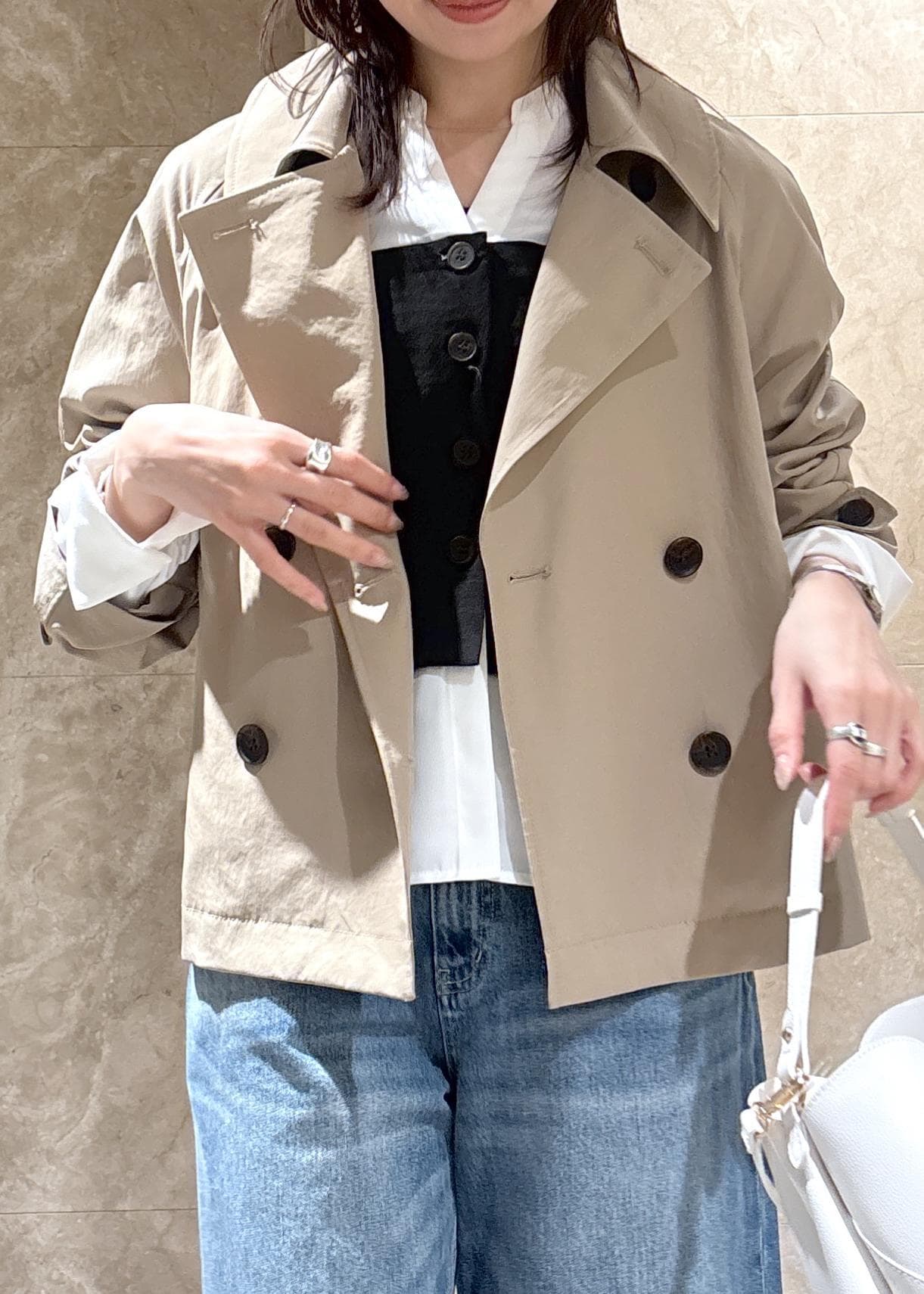 VISショートトレンチコート/UVケア・撥水・花粉ガードベージュ系 / F¥13,090レビューさらっと気楽に羽織りやすい柔らかい生地感。