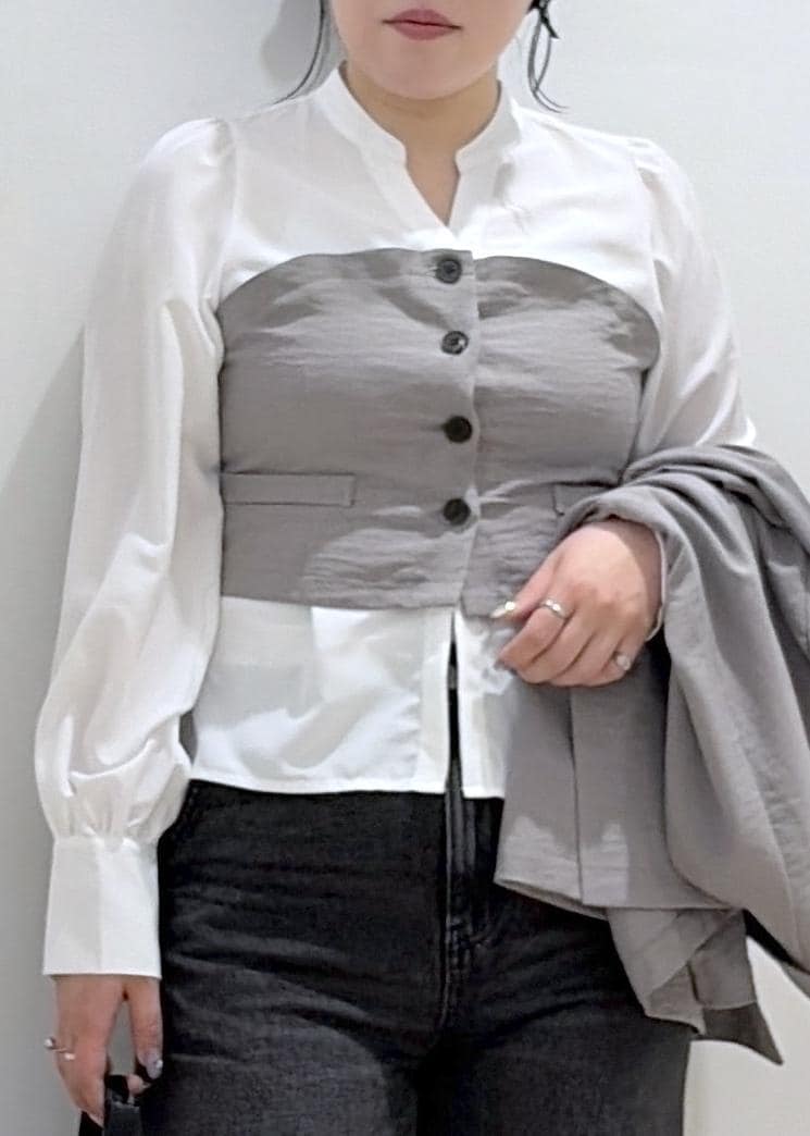 VIS美easy前開きビスチェドッキングシャツ/イージーケア・接触冷感・セットアップ対応グレー / F¥5,929レビュー私は骨格ストレートなので、スキッパーデザインでスッキリ見えやすいのが嬉しいポイント♪