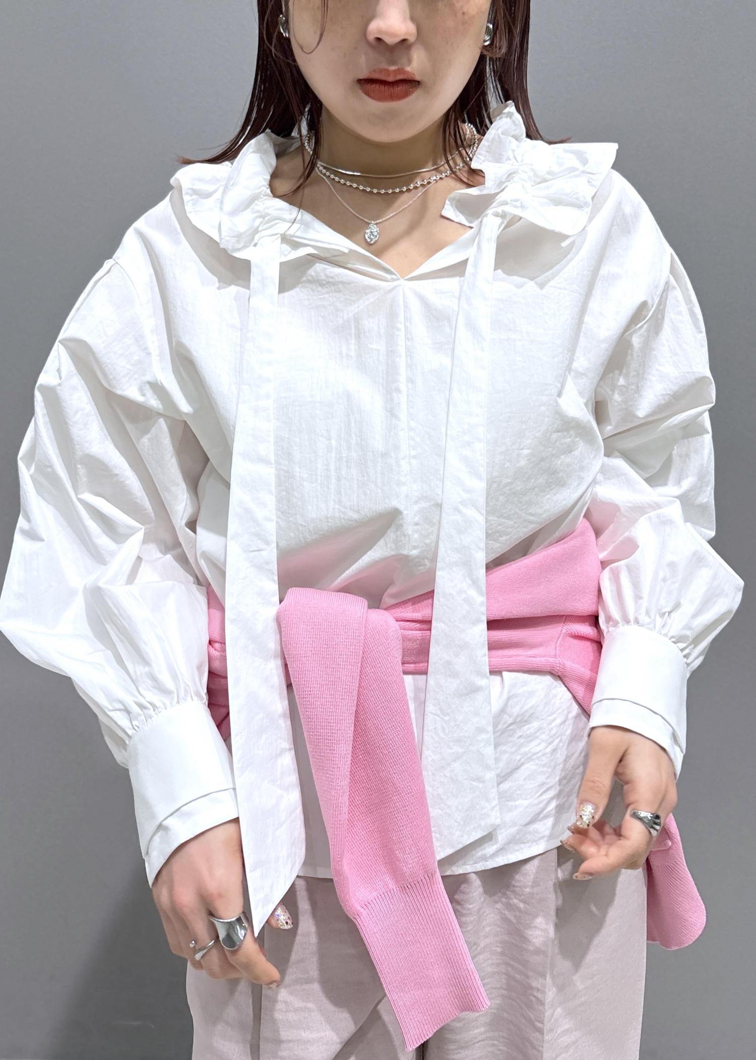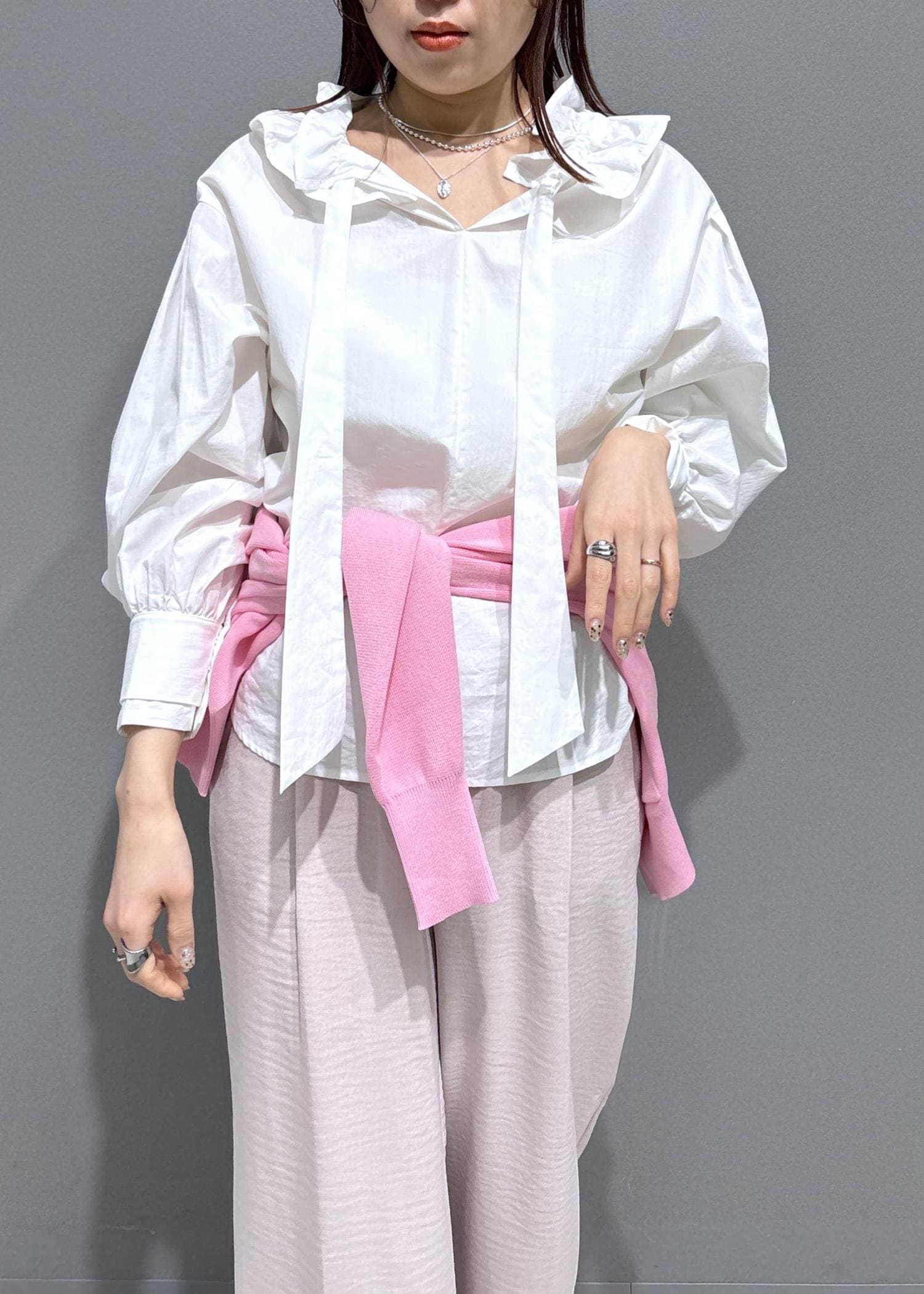 VISフリルネックブラウスオフホワイト / F¥6,589レビュー綿素材の張り感のある生地なので、