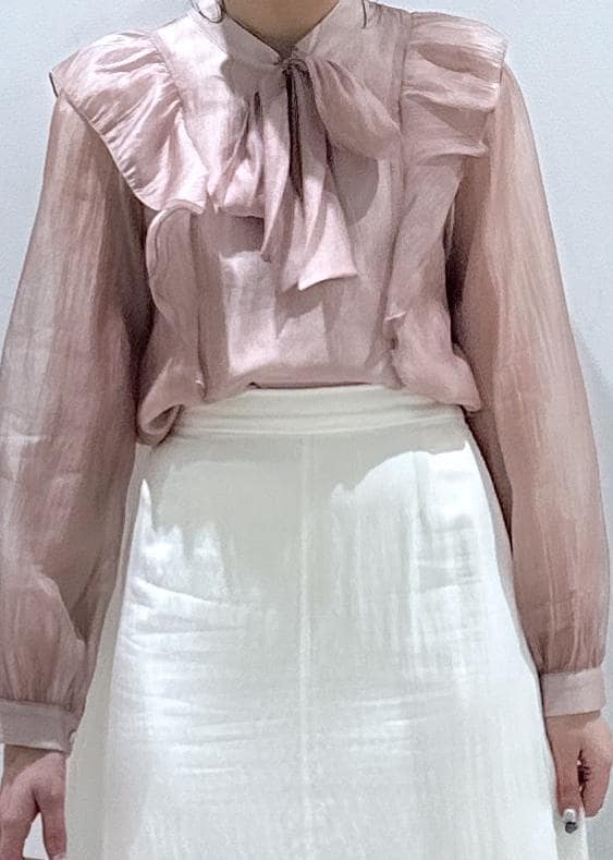 2BUY10%OFFVISシャイニーボウタイ長袖ブラウス/イージーケア・2WAYピンク / F¥5,929レビュー前後2WAYで着用でき、後ろリボン結びも楽しめるシアー素材のトップスです。ラッフルのデザインがフェミニンな印象を演出してくれます。華やかなイメージで特別なシーンにも◎