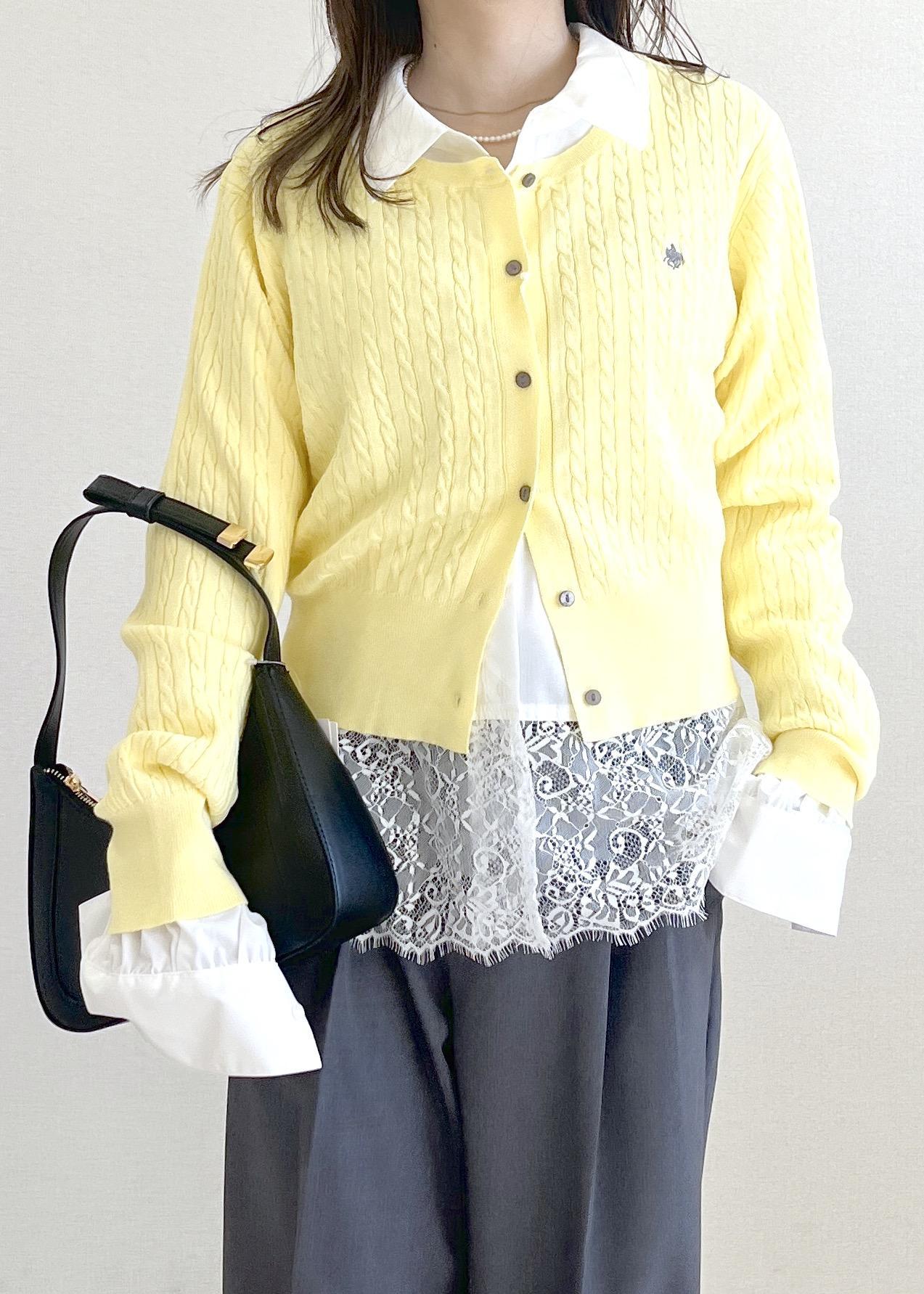 2BUY10%OFFVIS【POLO BCS】VIS別注ミニケーブルノーカラーカーディガンイエロー / F¥6,930レビューサイズ感はぴったりめですが、体のラインは出にくいです。