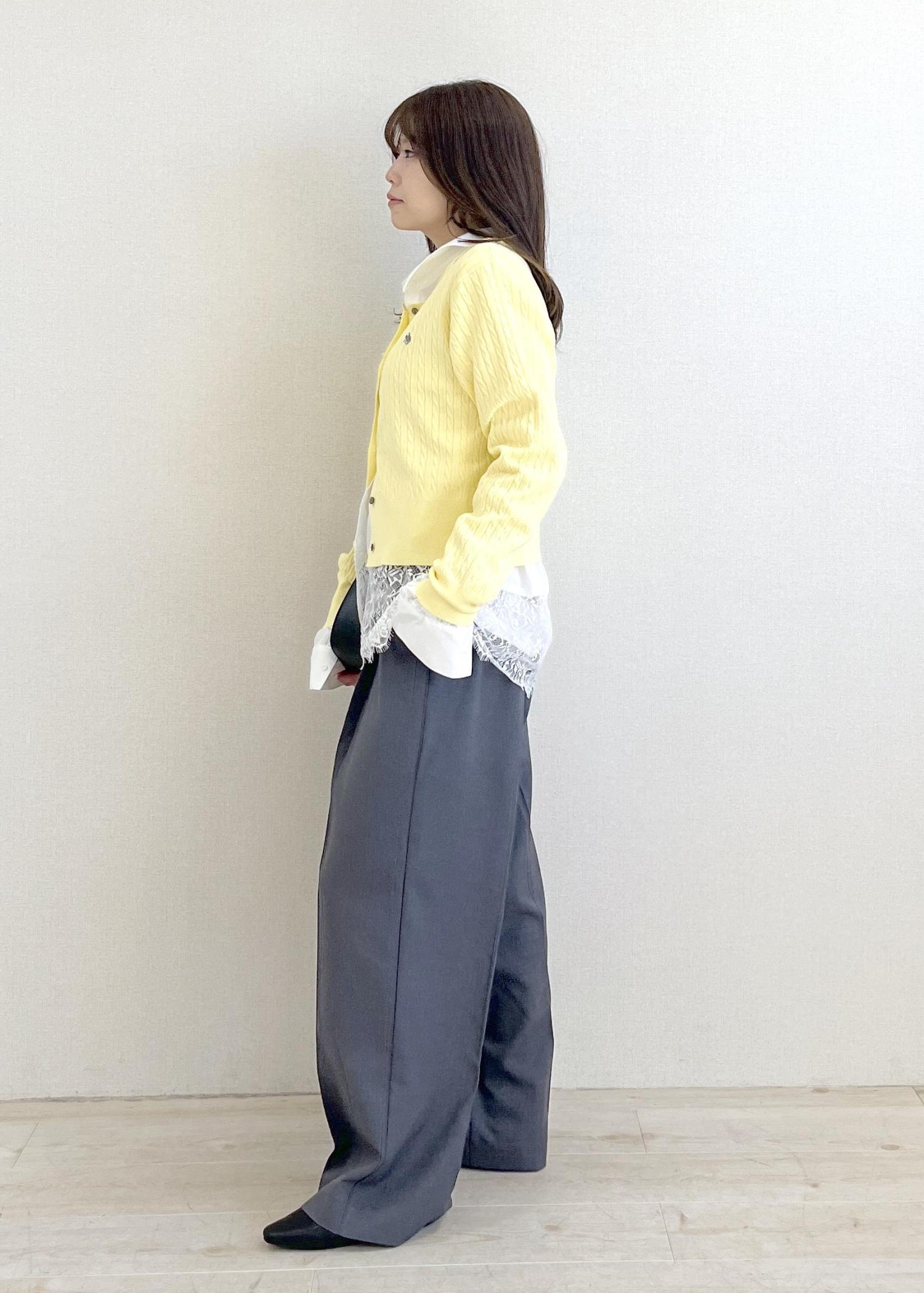 着丈が少し短めで腰辺りなので、腰回りをカバーしたい方は、レイヤードがおすすめです。