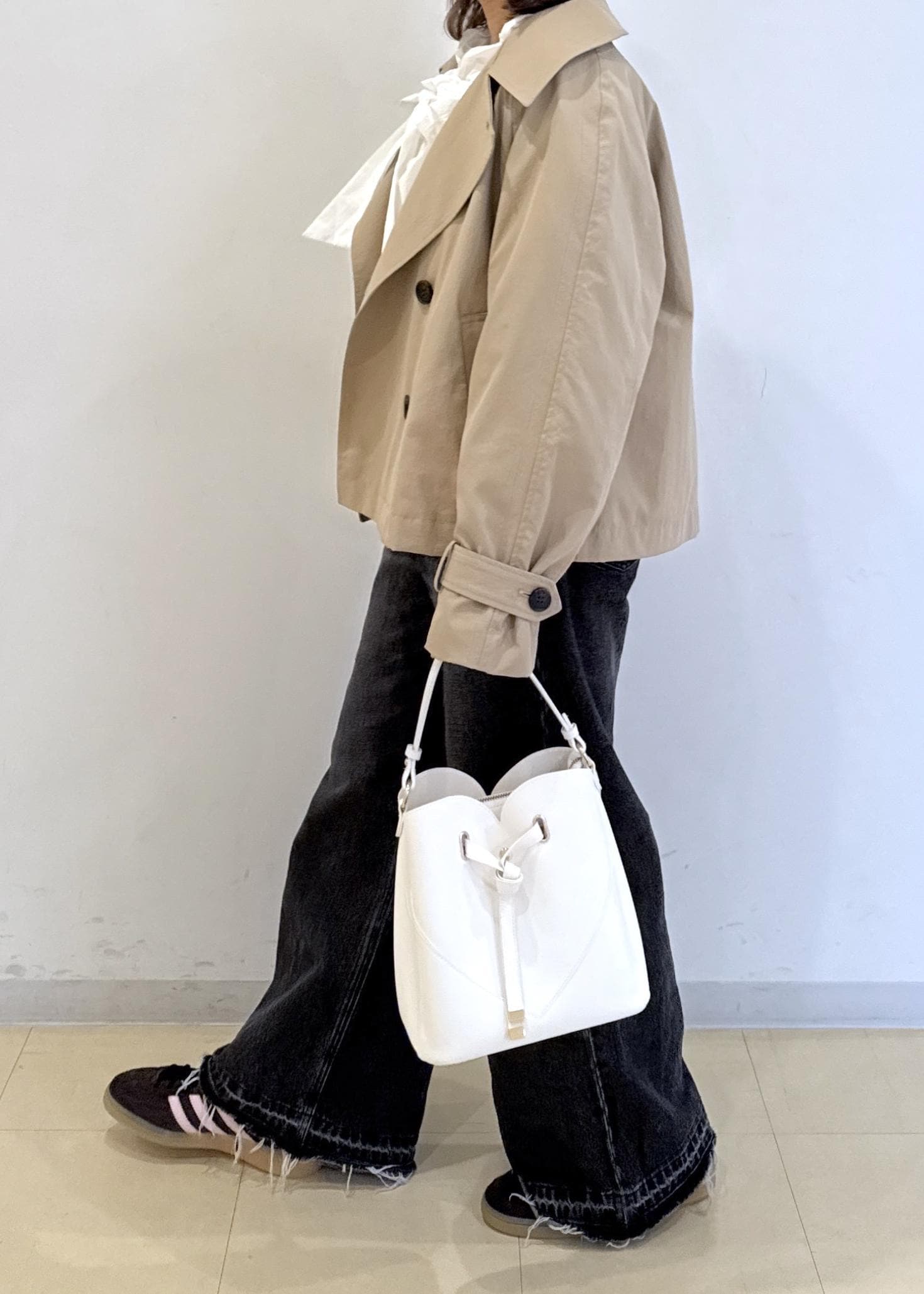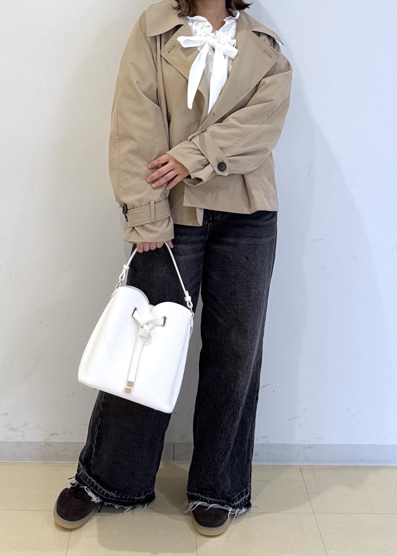 ブラウスにトレンチコートを合わせた大人っぽい組み合わせに、デニムとスニーカーを合わせ、カジュアル要素を足し、キレイめになりすぎないようにしました。