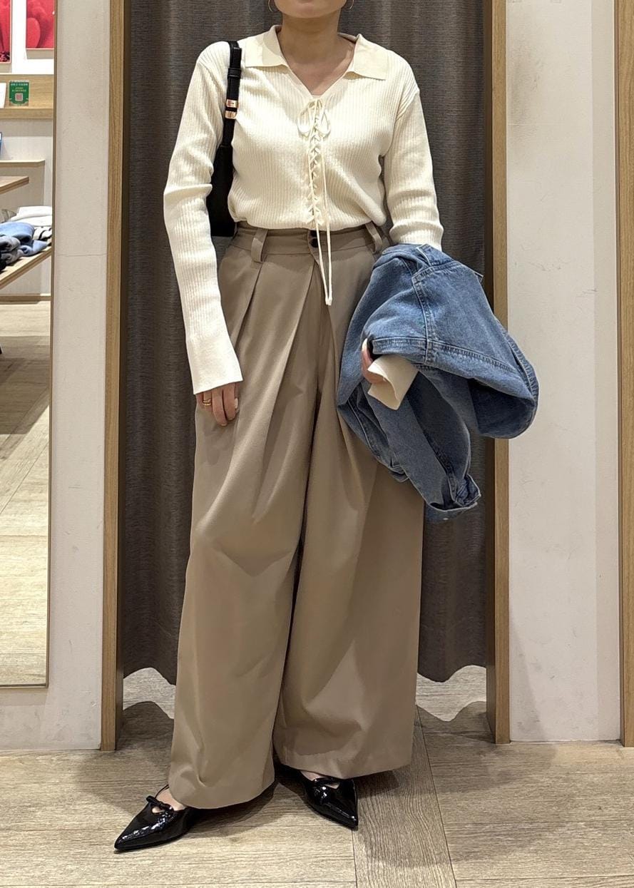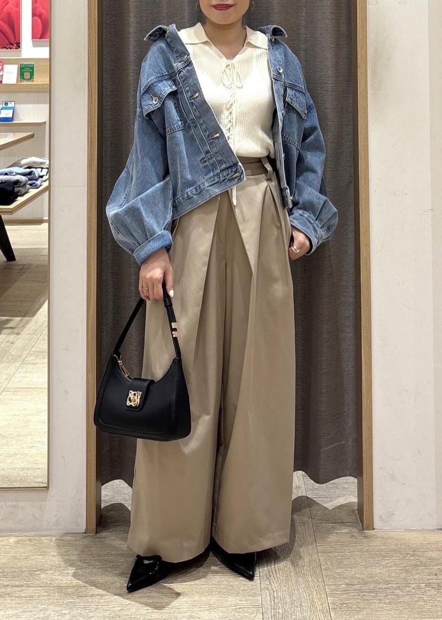 落ち感のあるワイドシルエットで、脚のラインを拾わずきれいに見せてくれるパンツ。