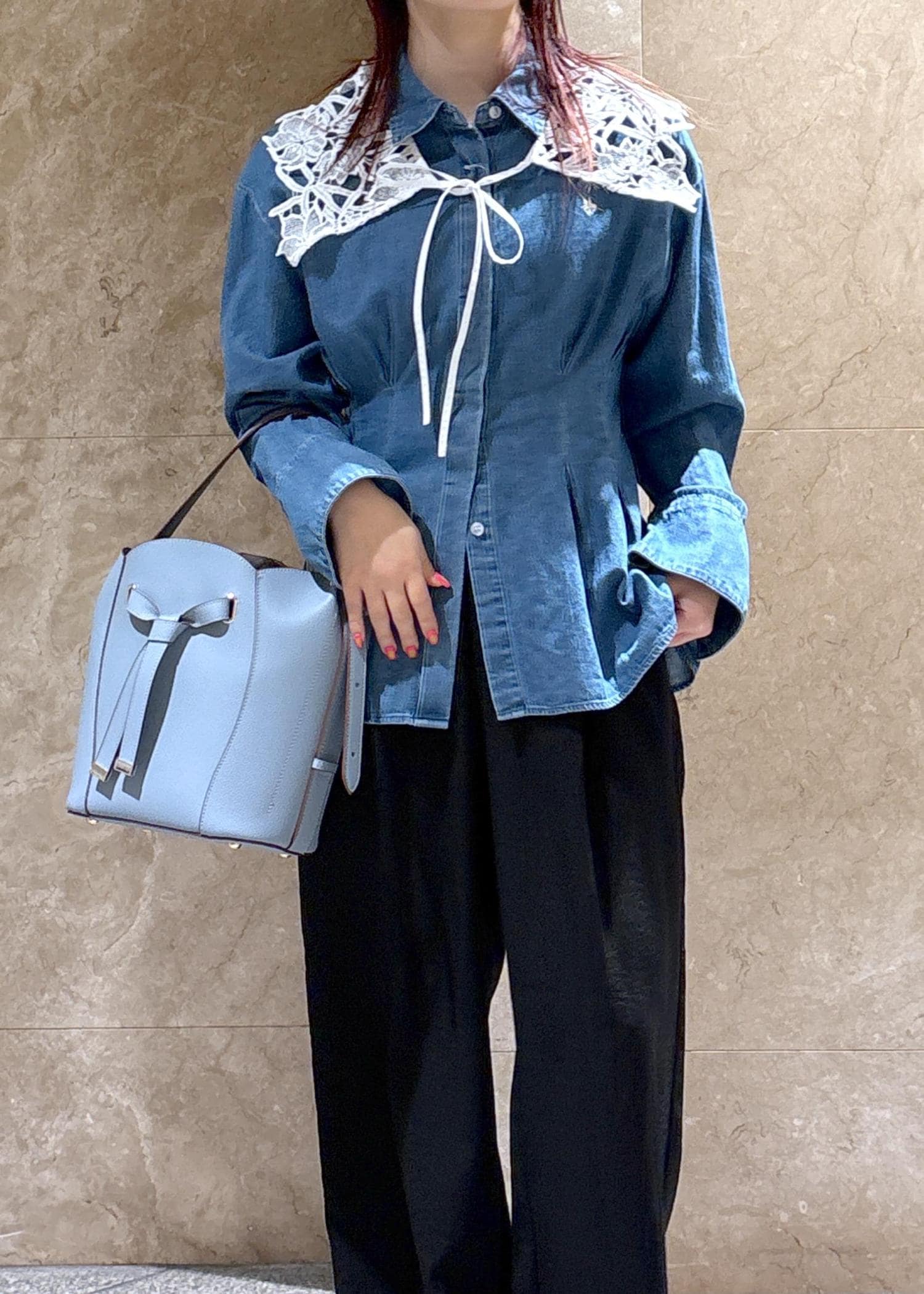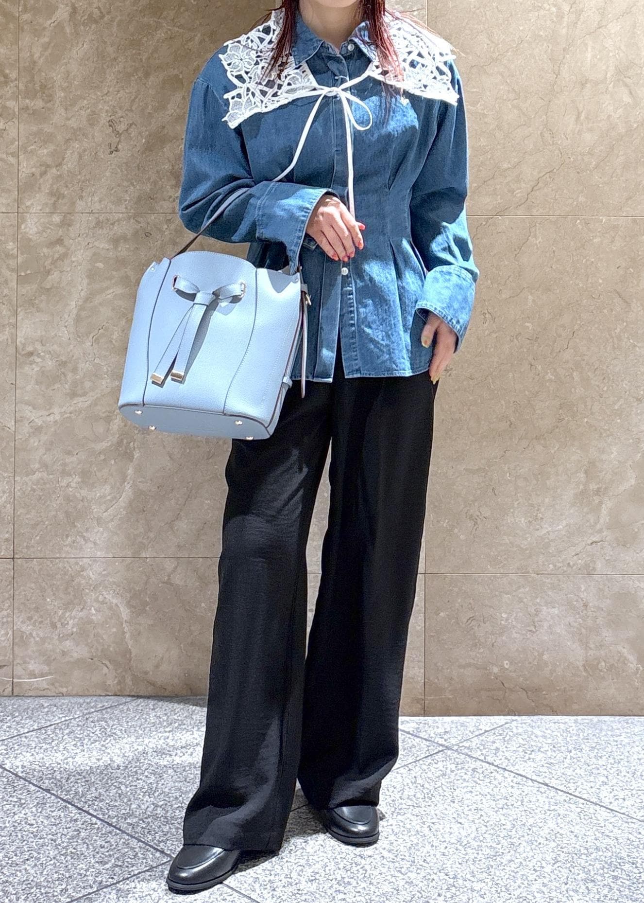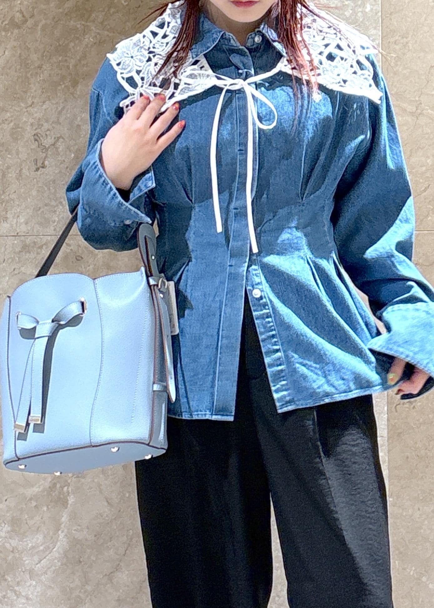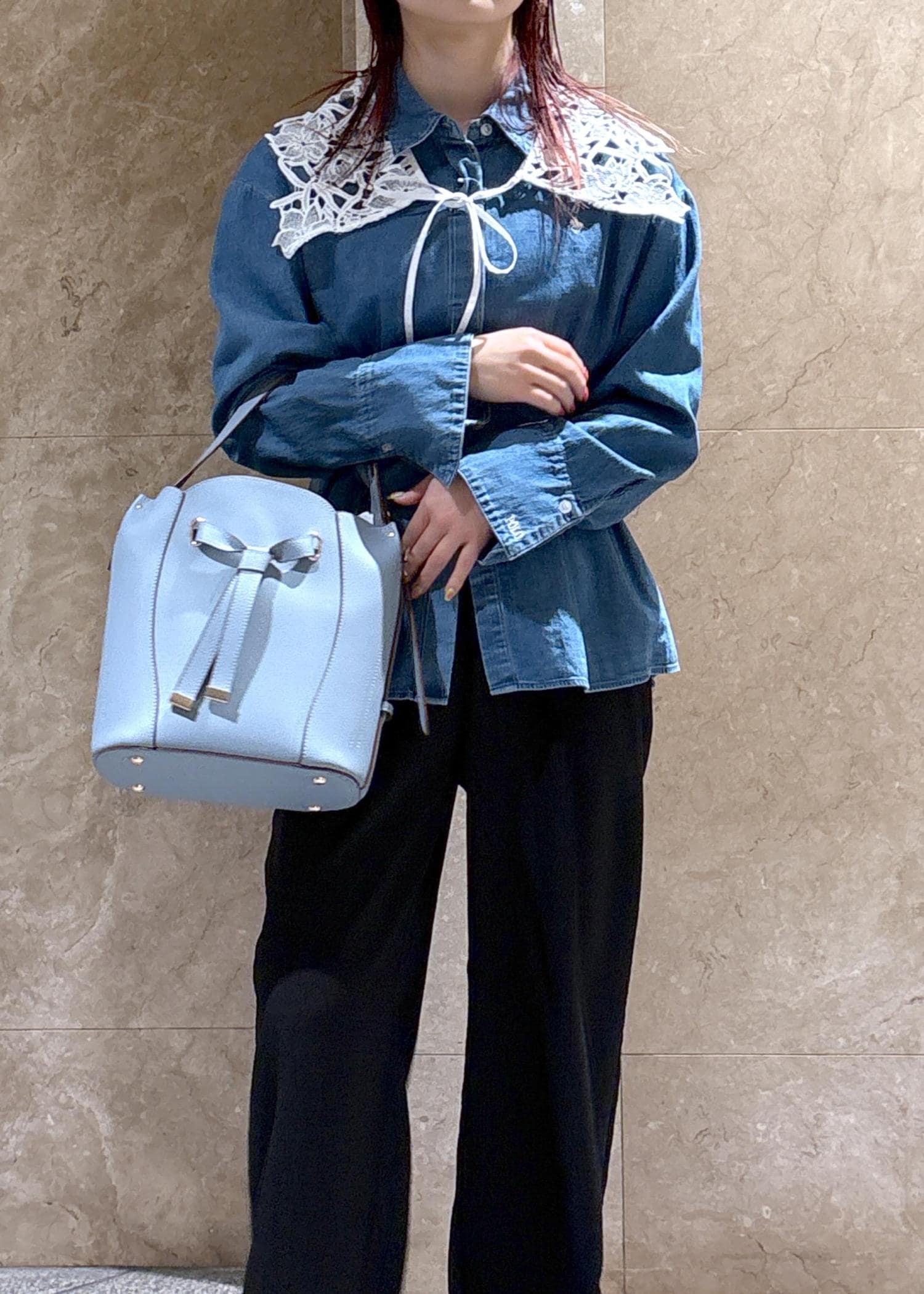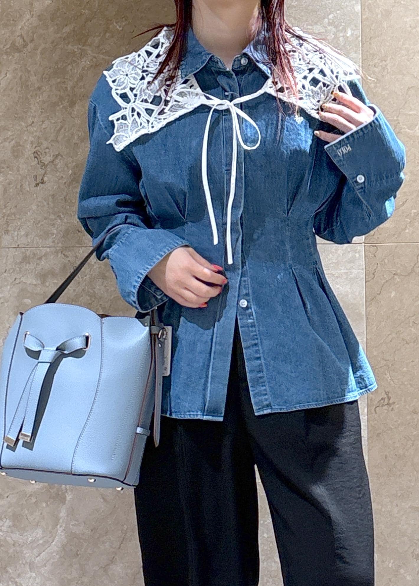2BUY10%OFFVIS【POLO BCS】VIS別注ベルト付きウエストタックシャツブラウスサックス / F¥6,930レビューPOLOコラボのシャツ!