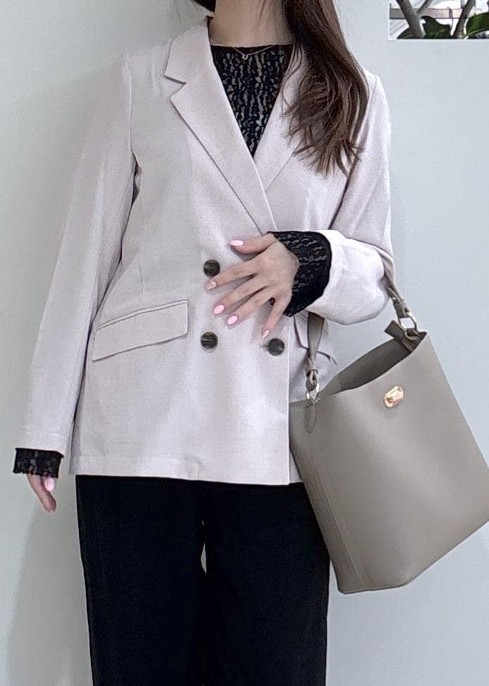 VIS美easyリネンライクテーラードジャケット/イージーケア・接触冷感・セットアップ対応ピンク / S¥7,909レビュー158cmSサイズ着用。ヒップも隠れる着丈で、袖丈は手の甲まで隠れる感じでした。生地感は軽くてやわらかくサラサラした感じなのでとても動きやすいです◎