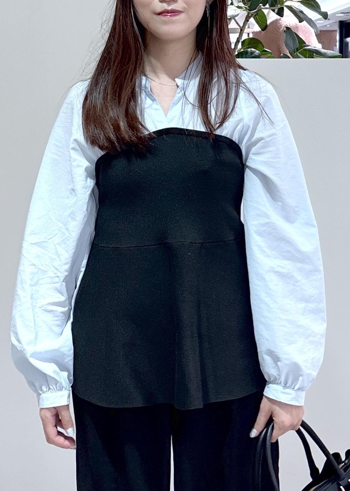 VISペプラムニットドッキングブラウスブラック / F¥5,271レビューブラウスとニットを合わせたようなデザインのトップスは、一枚でスッキリ着れてコーディネートも楽です。