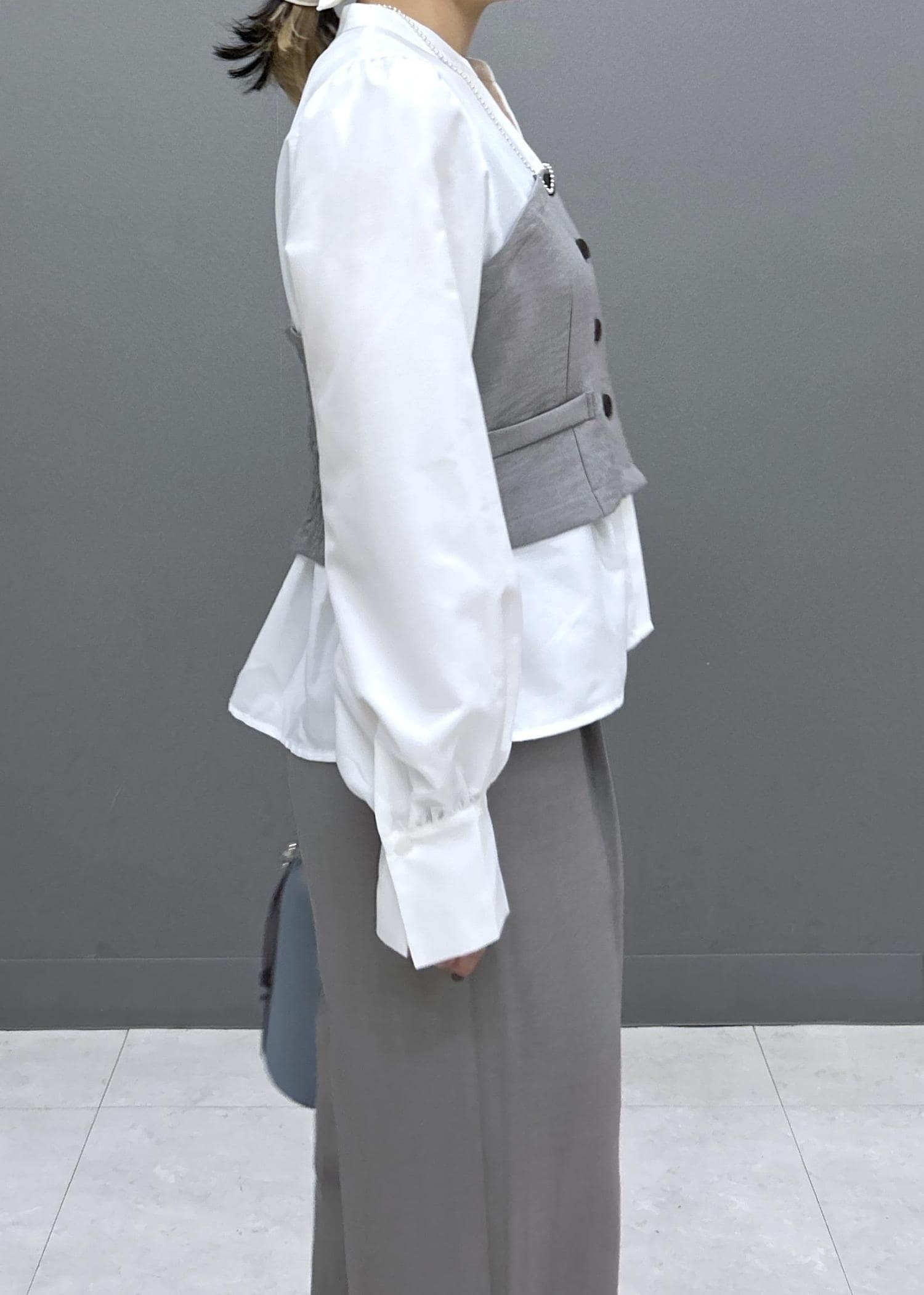 VIS美easy前開きビスチェドッキングシャツ/イージーケア・接触冷感・セットアップ対応グレー / F¥5,929レビュー157cmで腰丈、後ろはお尻にかかる着丈でした。