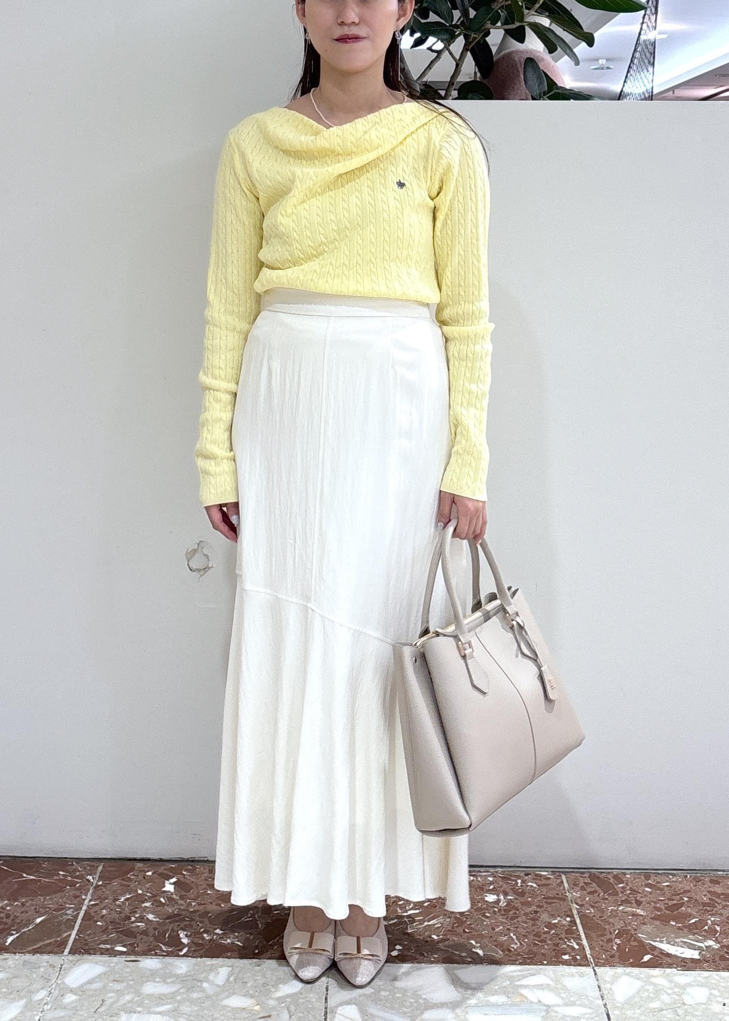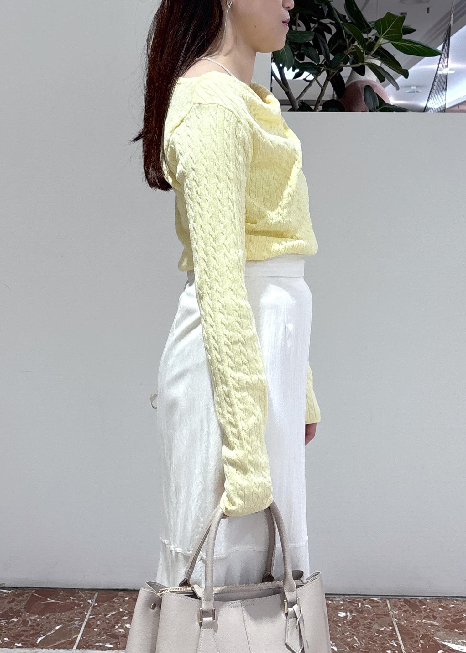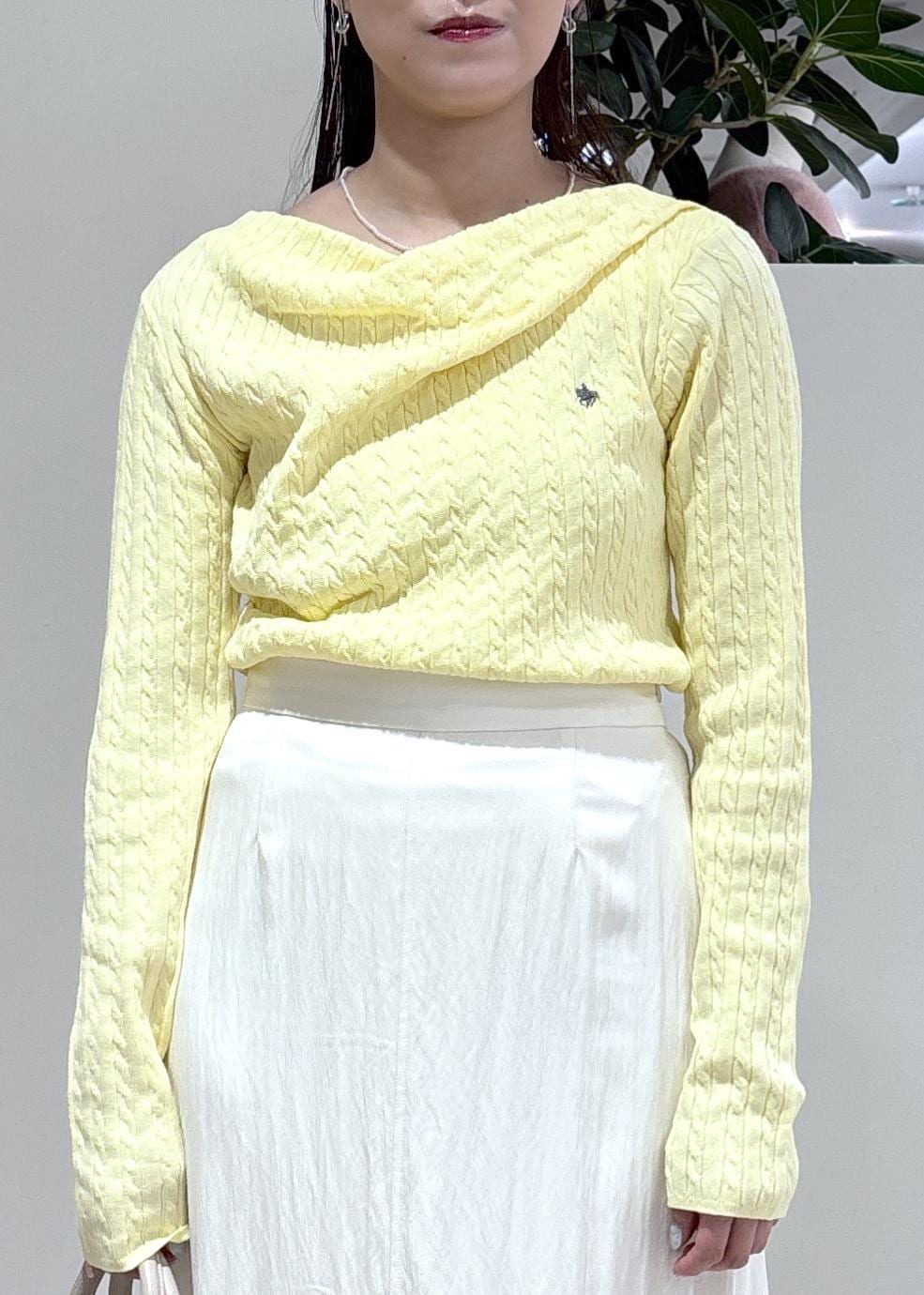 2BUY10%OFFVIS【POLO BCS】VIS別注ケーブルドレープトップスイエロー / F¥6,930レビュードレープのデザインが華やかに見えるニット。ケーブル編みになっているので、きちんと感もあります。