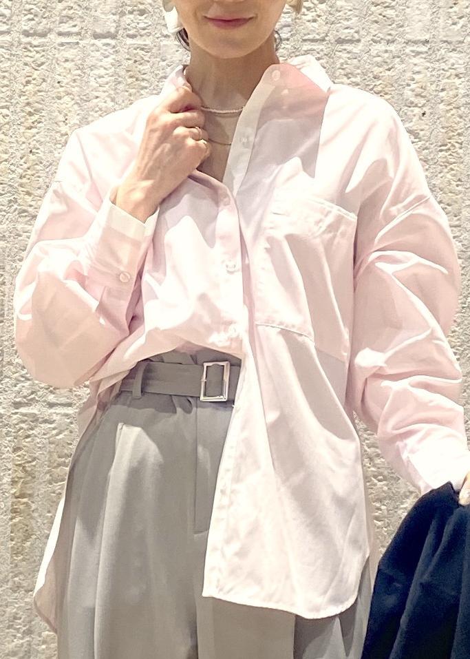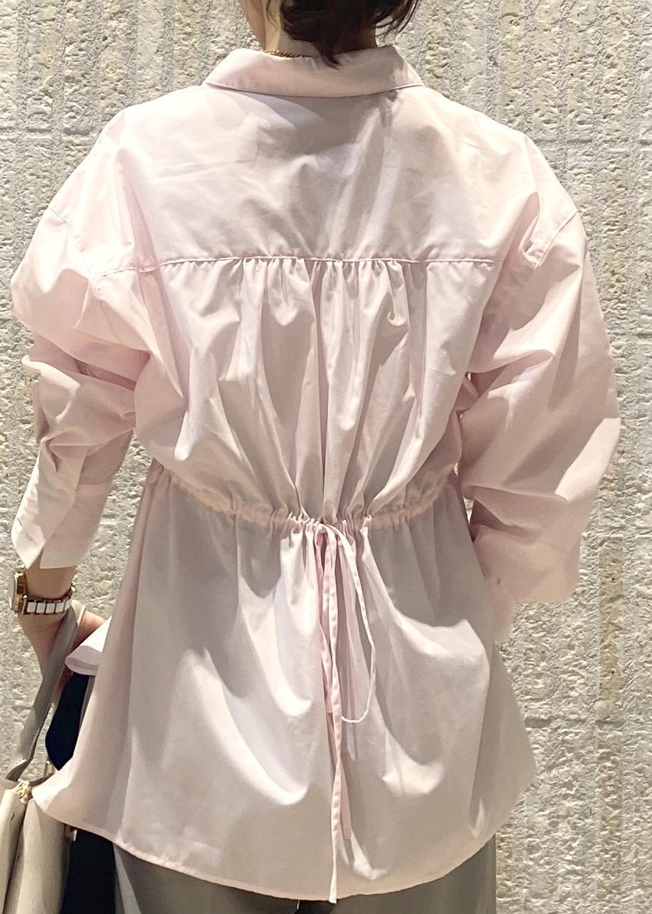 お袖と胸ポケットにアクセントがあり、バックリボンでシルエットを変えられて後ろ姿を女性らしいシルエットでも楽しめるシャツです。