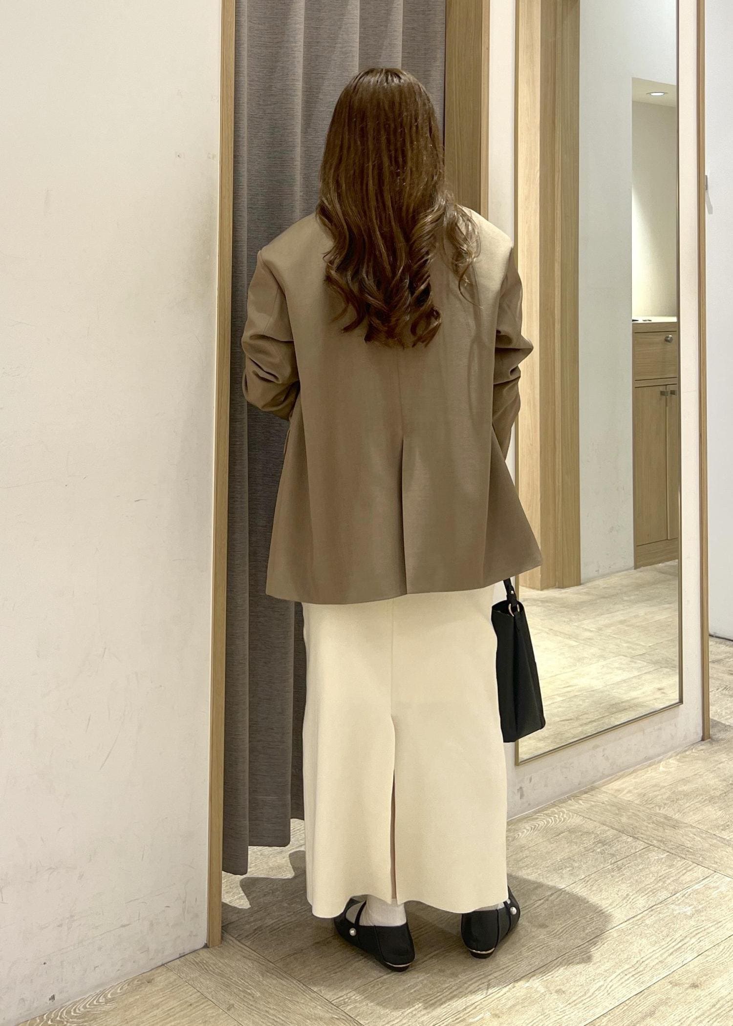しっかりとした素材なので身体のラインをあまり拾わずにスッキリ見えします◯