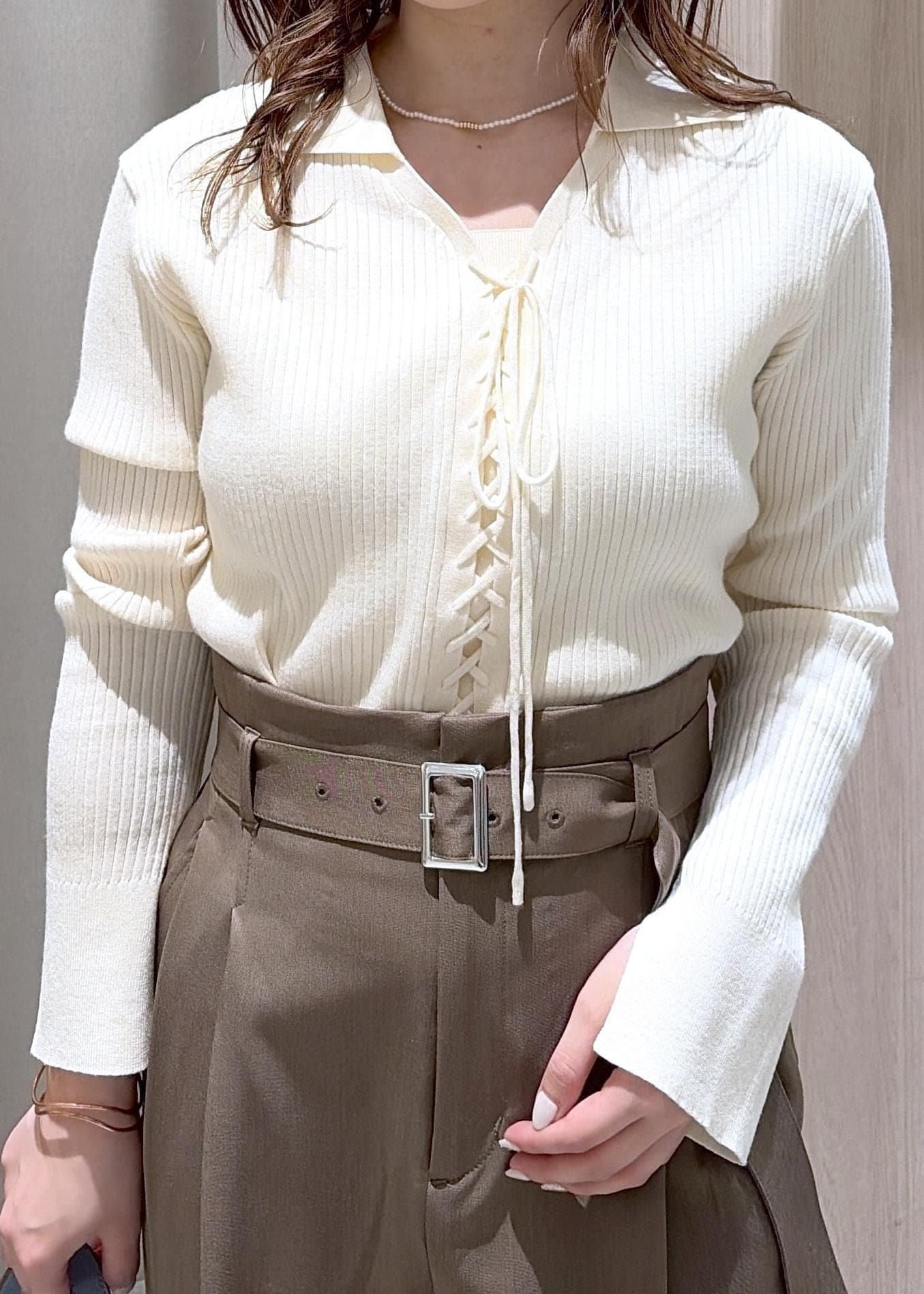 レースアップリブニット