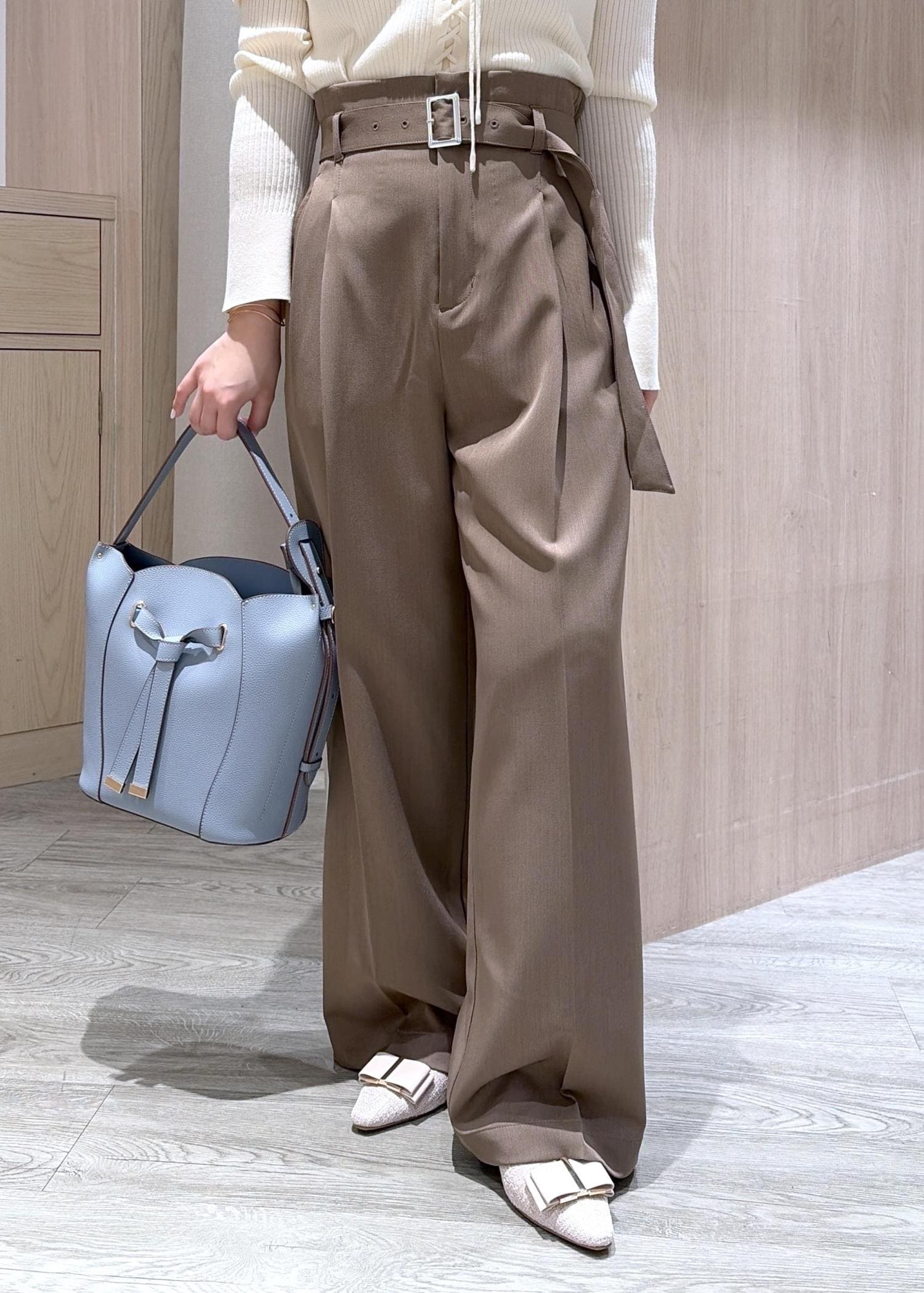 5.5cmのヒールを合わせているのでパンツはSサイズを着て、こなれ感を出しました!