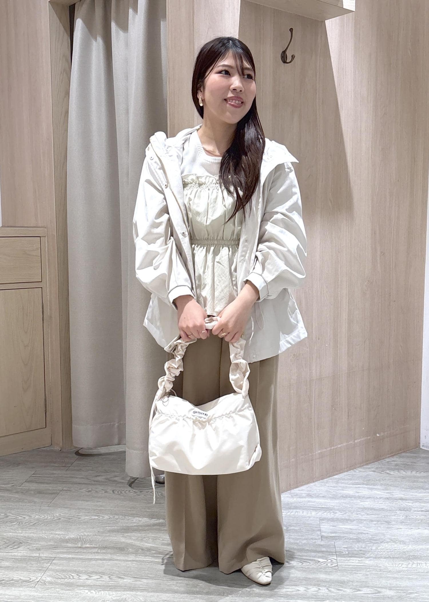 予約VIS【OUTDOOR PRODUCTS】VIS別注フリルショルダーバッグキナリ / F¥7,480レビュー持ち手は伸縮性があるため、ハンドバッグにしたりショルダーにしたり使い方は様々です。軽い上にしっかりマチもついていてペットボトルや手帳、大きめのポーチも入れやすいですよ。