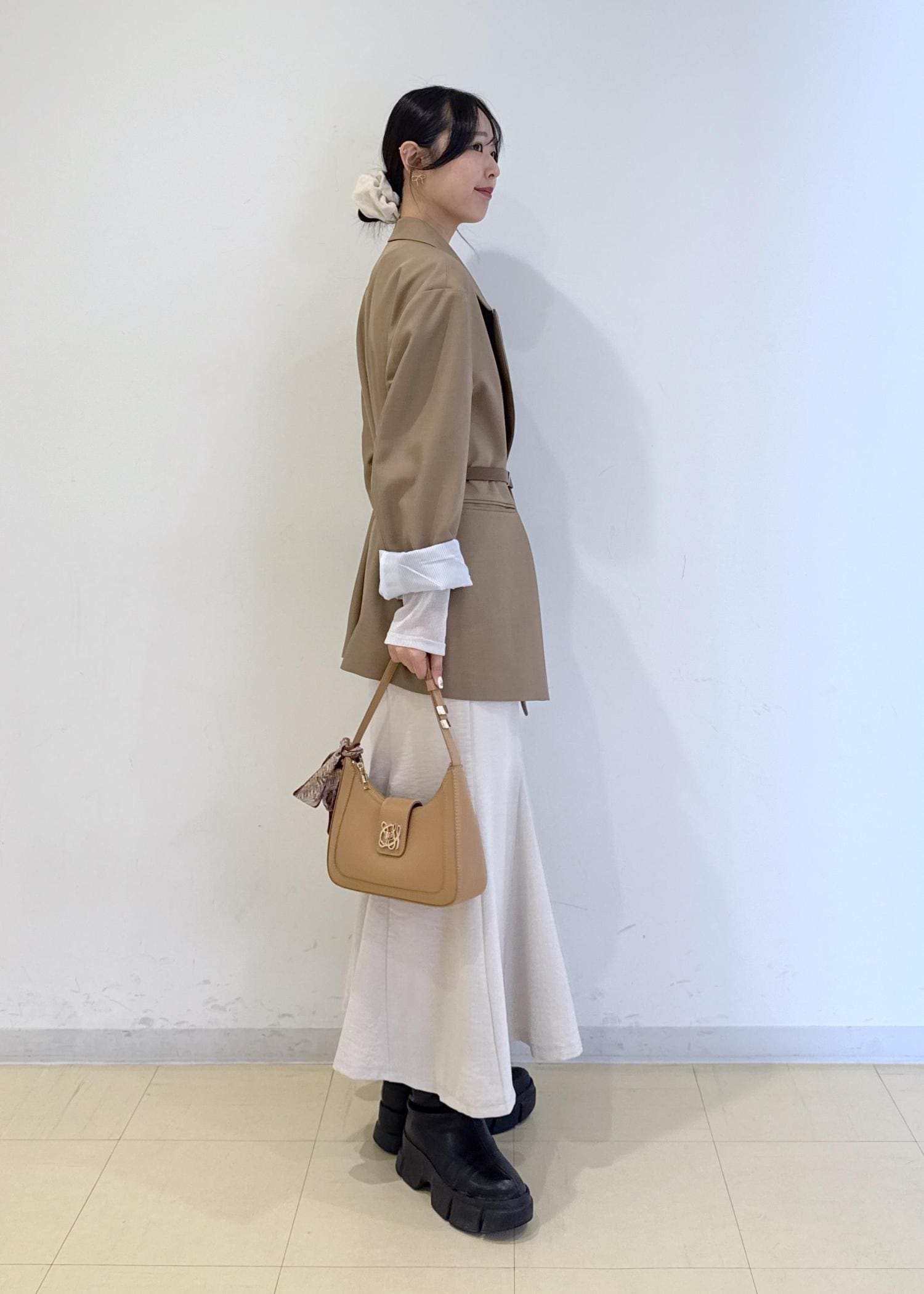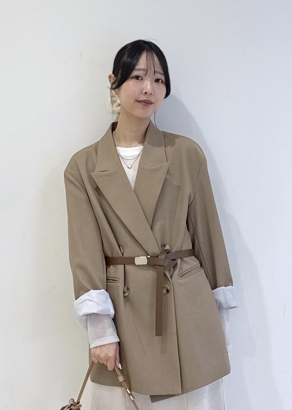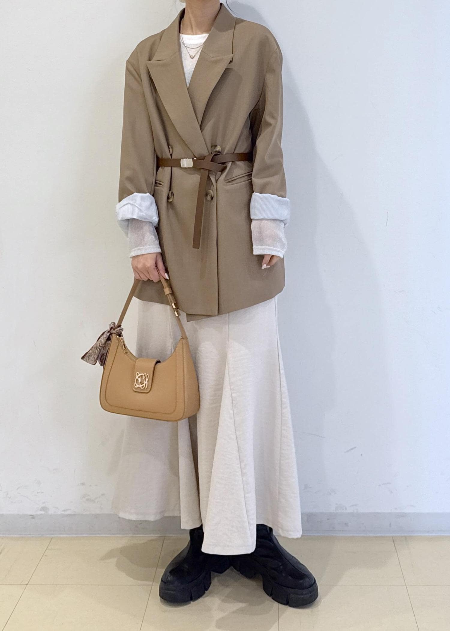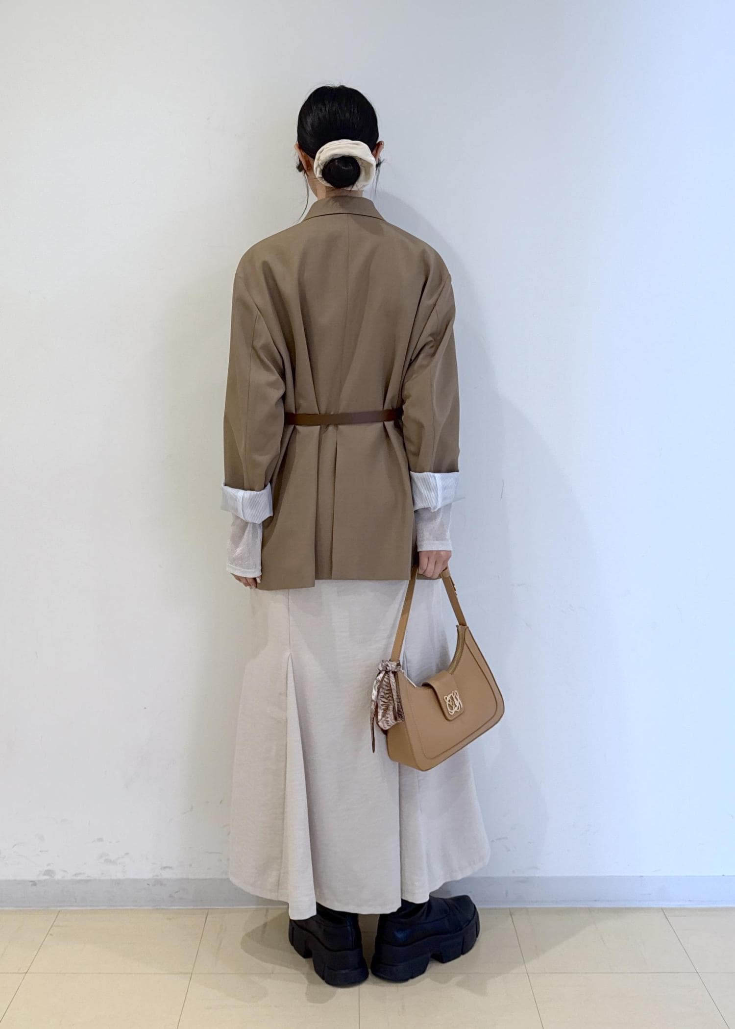 ジャケットをオーバーサイズめのものにしてカジュアルさをプラスしています♪