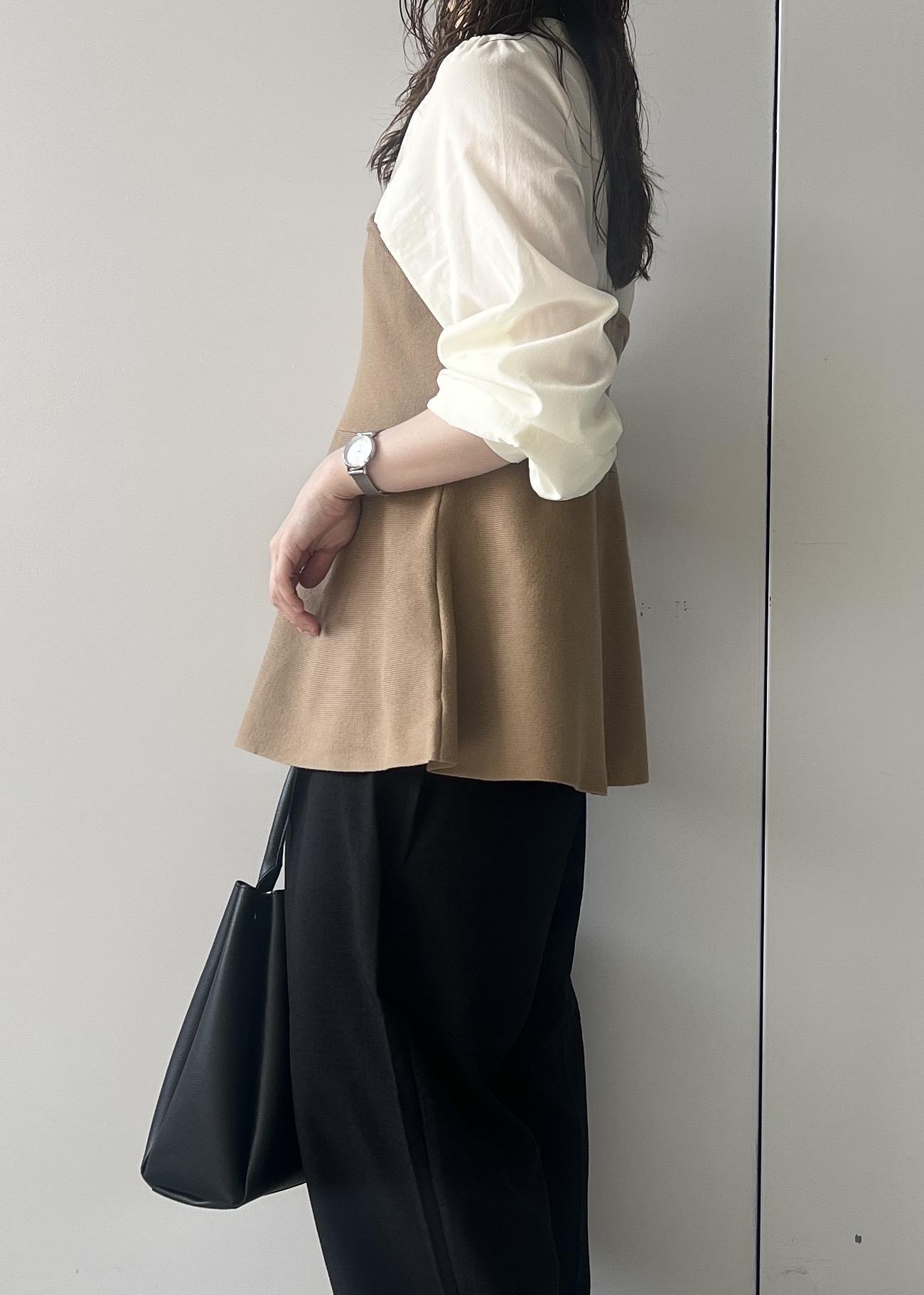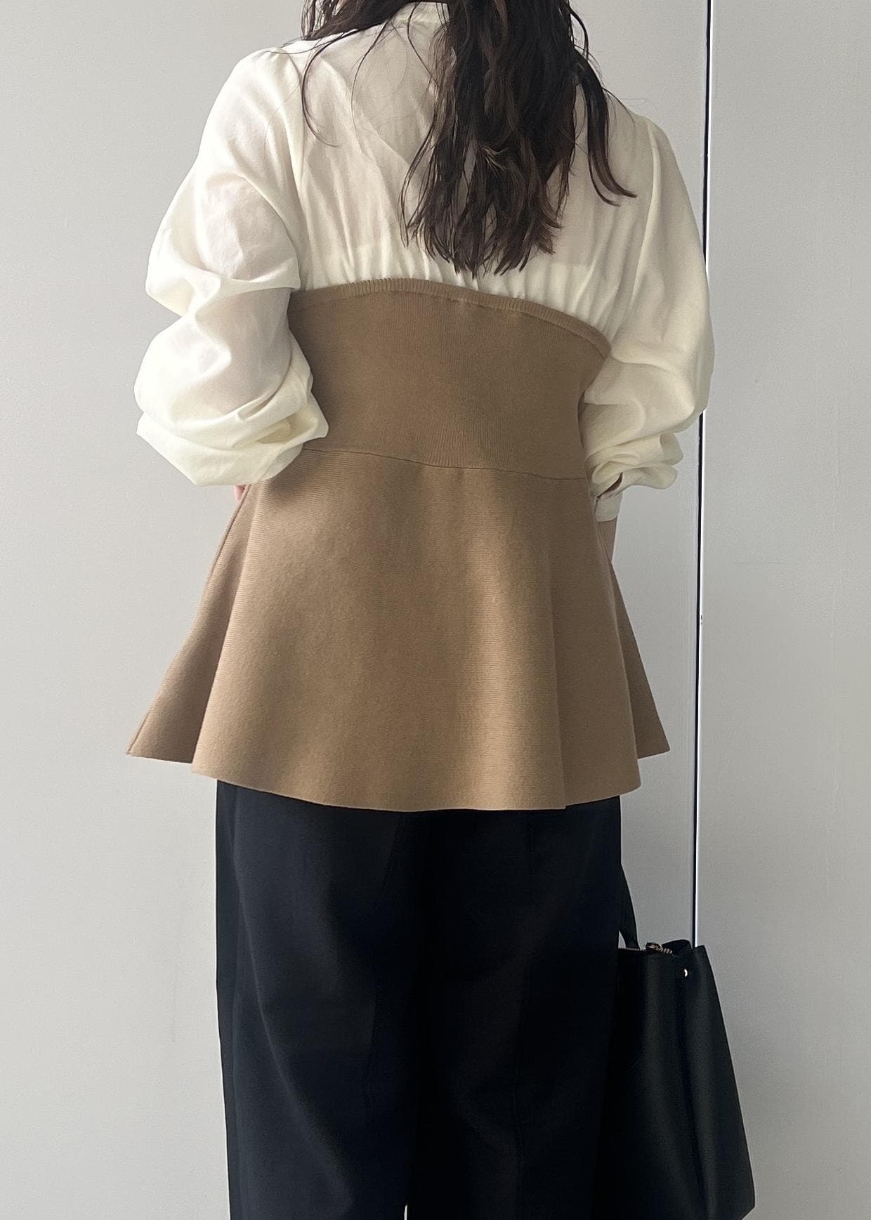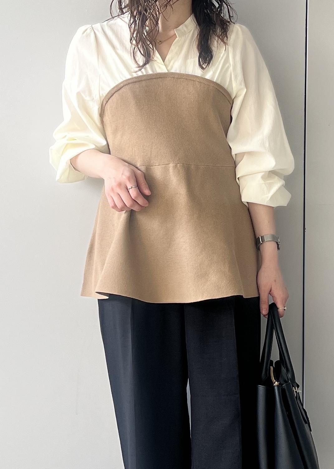 2BUY10%OFFVISペプラムニットドッキングブラウスベージュ / F¥5,271レビュー152cmでお尻が隠れる着丈。キーネックが首元すっきりにみせてくれます。ペプラムのシルエットが1枚で着映えします✨