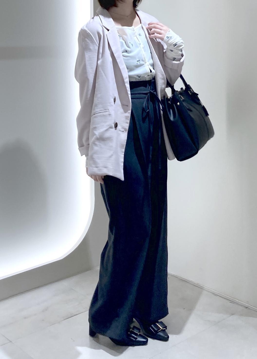 ワイドシルエットなので厚底やヒールのあるものと合わせるとスタイルアップして見えるのでおすすめです!