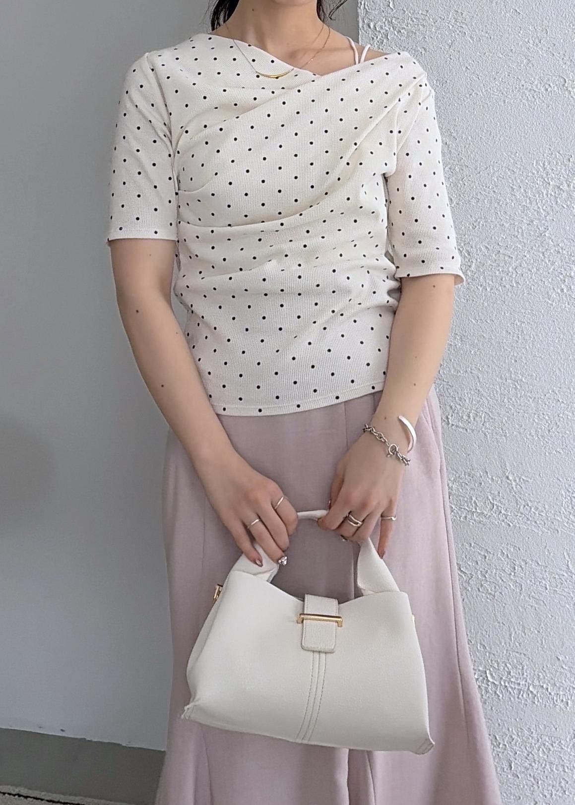 流行りのドレープで一枚で着映えはもちろんですが、ワンショルやオフショルにもなるアイテムです!