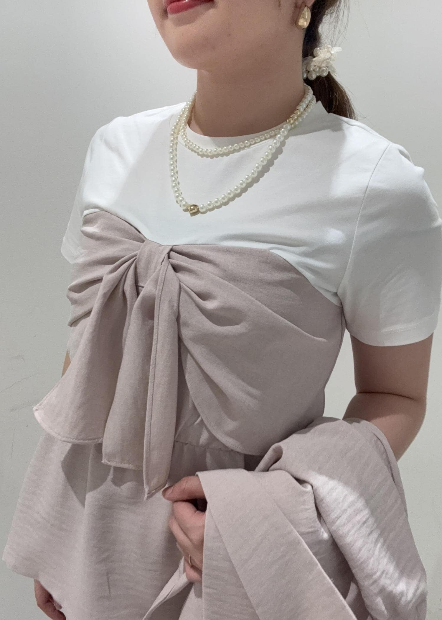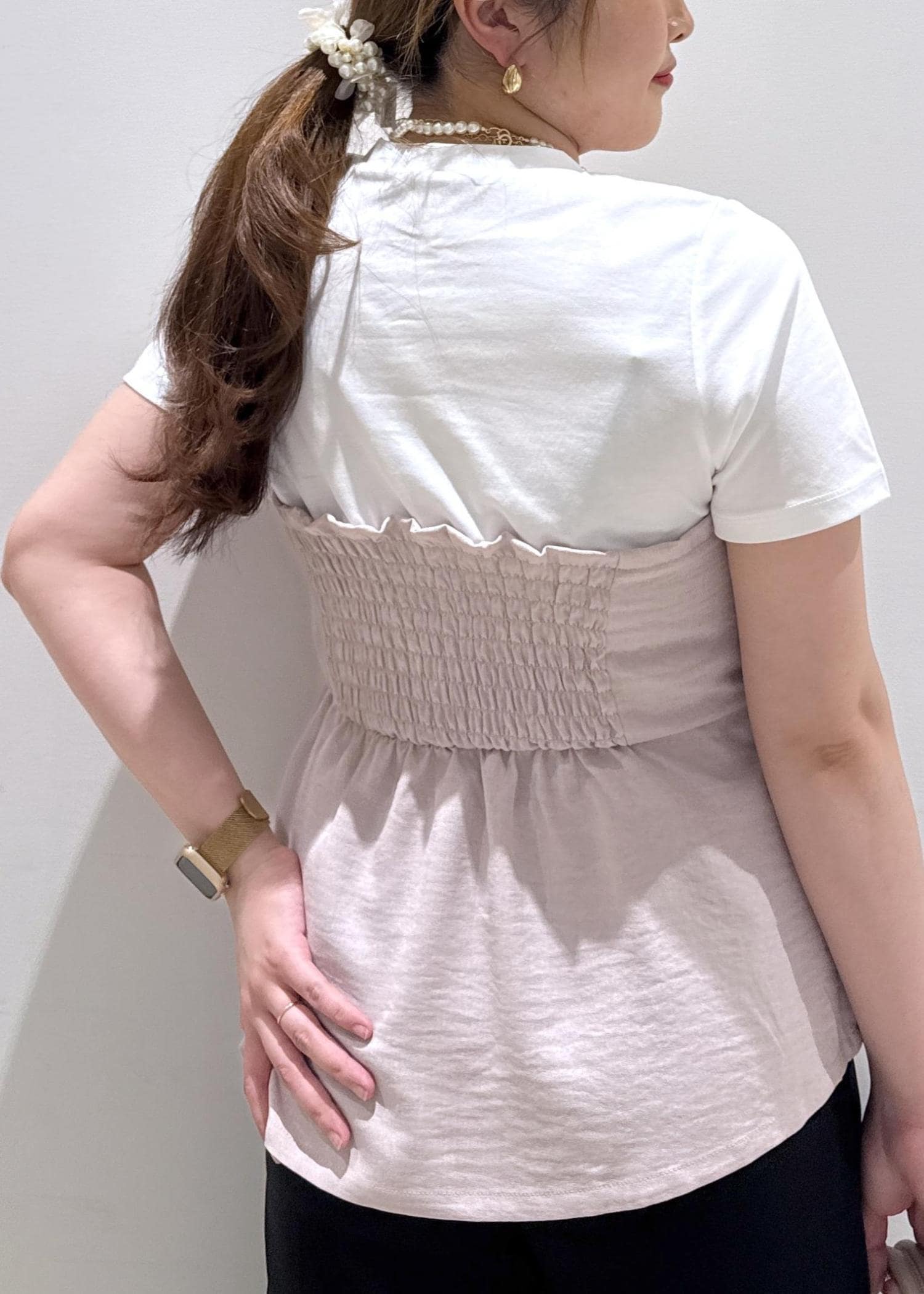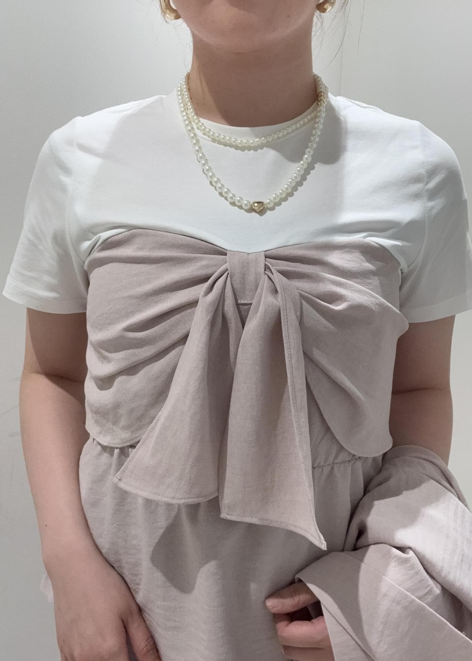 リボンがドッキングがくっついているトップスは、ちょうどお腹周りがも隠れるぐらいの長さなので安心ですよ