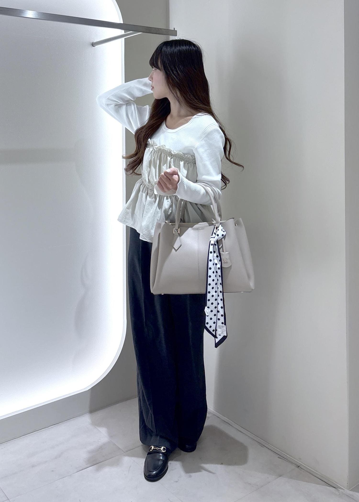 パプラムになっており、腰回りが隠すことができすっきりときていただけます。